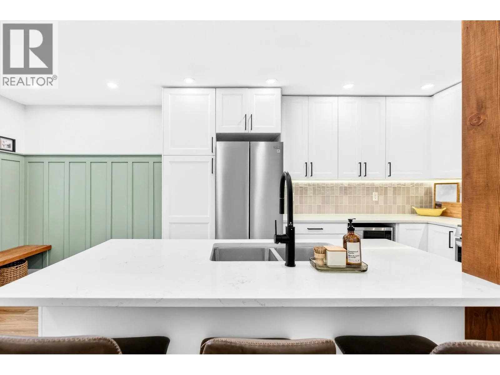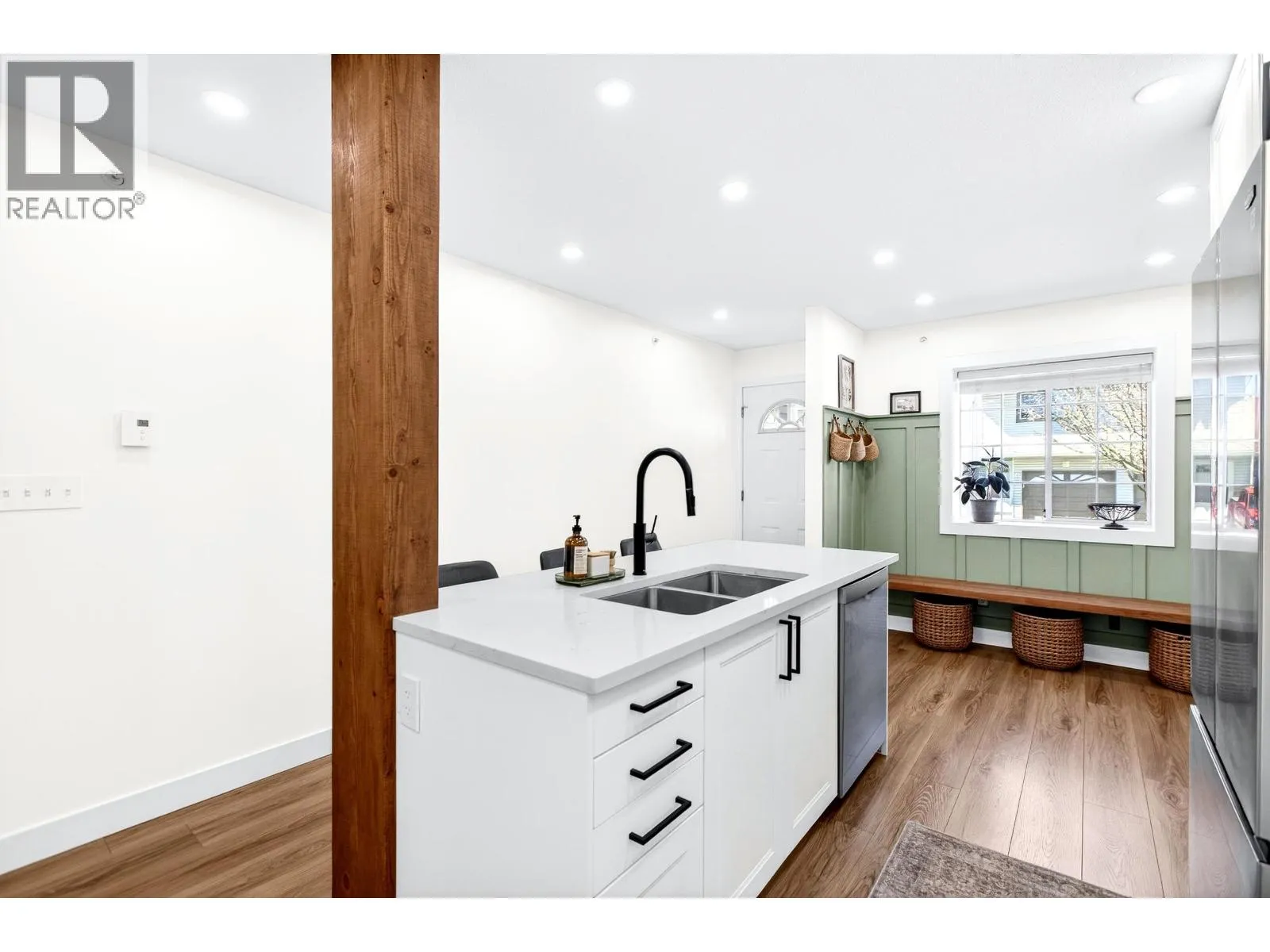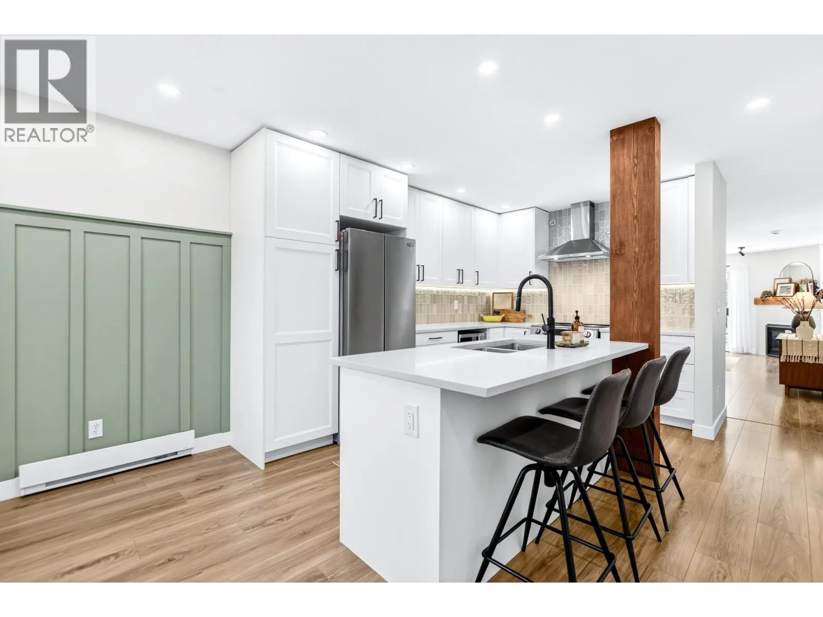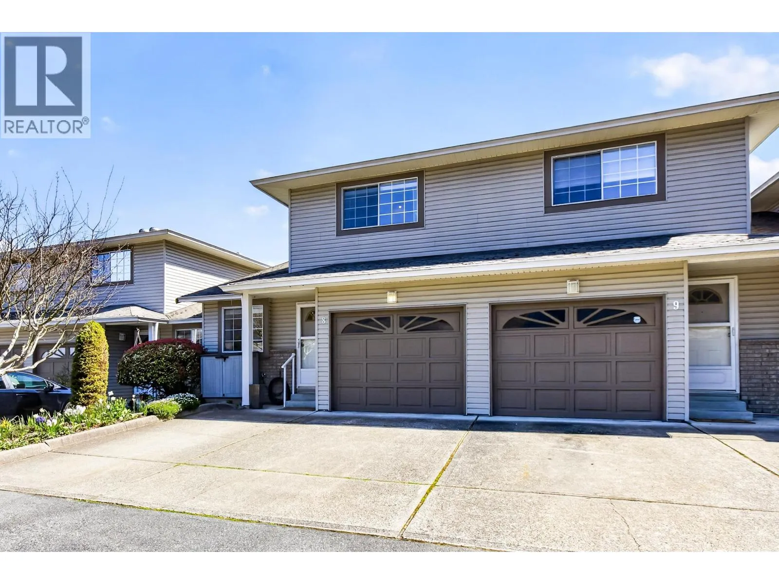Renovated 2 bedroom, 2 bathroom townhouse centrally located at the popular Mcmyn Estates. Large gourmet kitchen offering updated cabinets with undermount lighting, quartz countertops/breakfast bar, tiled backsplash, recessed lights, wainscotting and stainless steel appliances. Adjacent dining/living room with new gas fireplace with tile surround and custom mantle. Sliding doors leading to a private east facing backyard/garden with cement patio perfect for entertaining. Spacious bedrooms, both with ensuite bathrooms, including primary with walk in closet. Stylish barn doors, laminate floors, new fixtures/hardware, baseboards and updated 3 piece bathroom on main. Recently painted, separate laundry room and space for 3 cars with 2 parking pads and a single car garage. Waking distance to K-12 schools, recreation center, parks, restaurants and West Coast Express. This home will not disappoint. (id:27476)