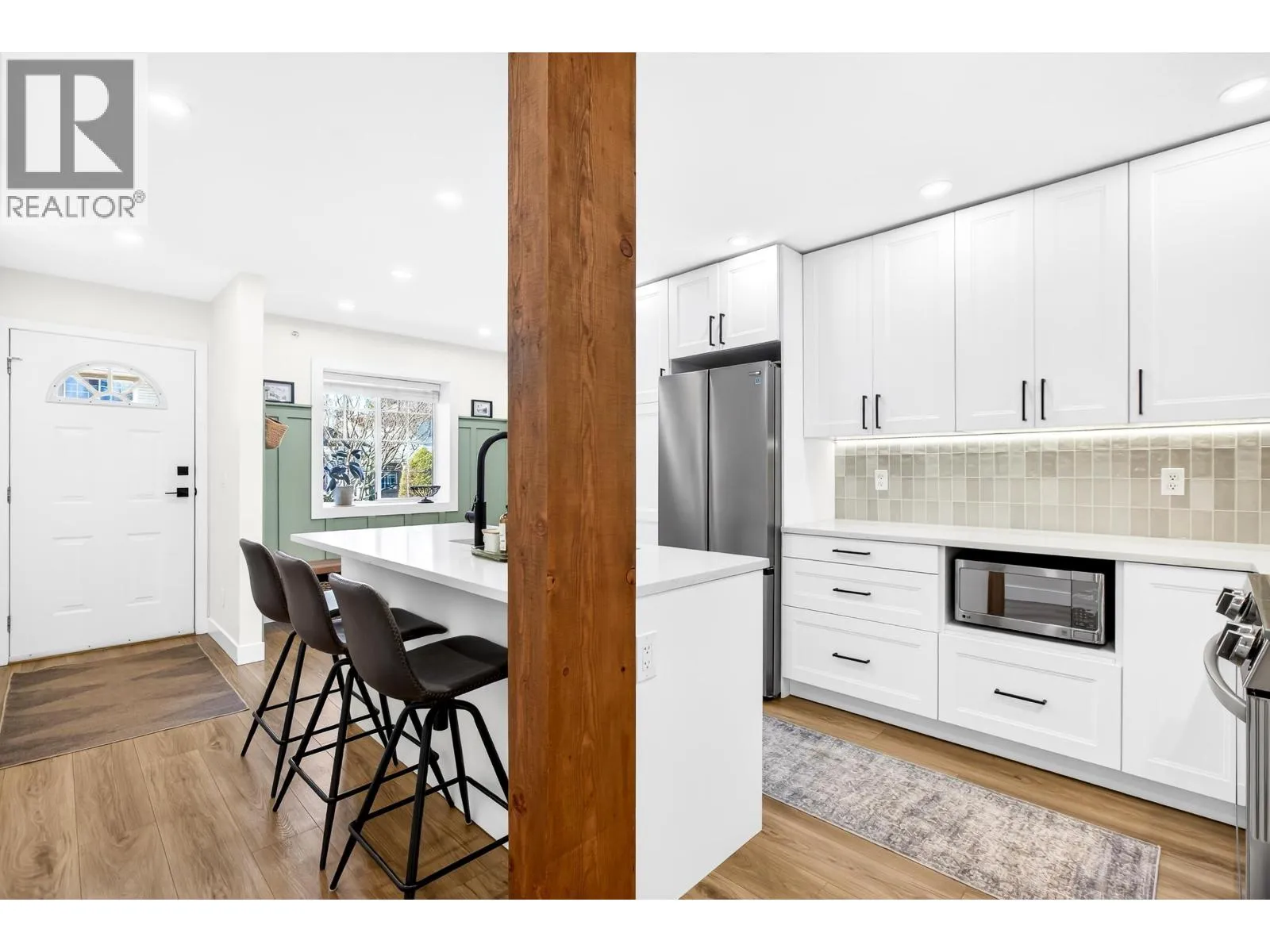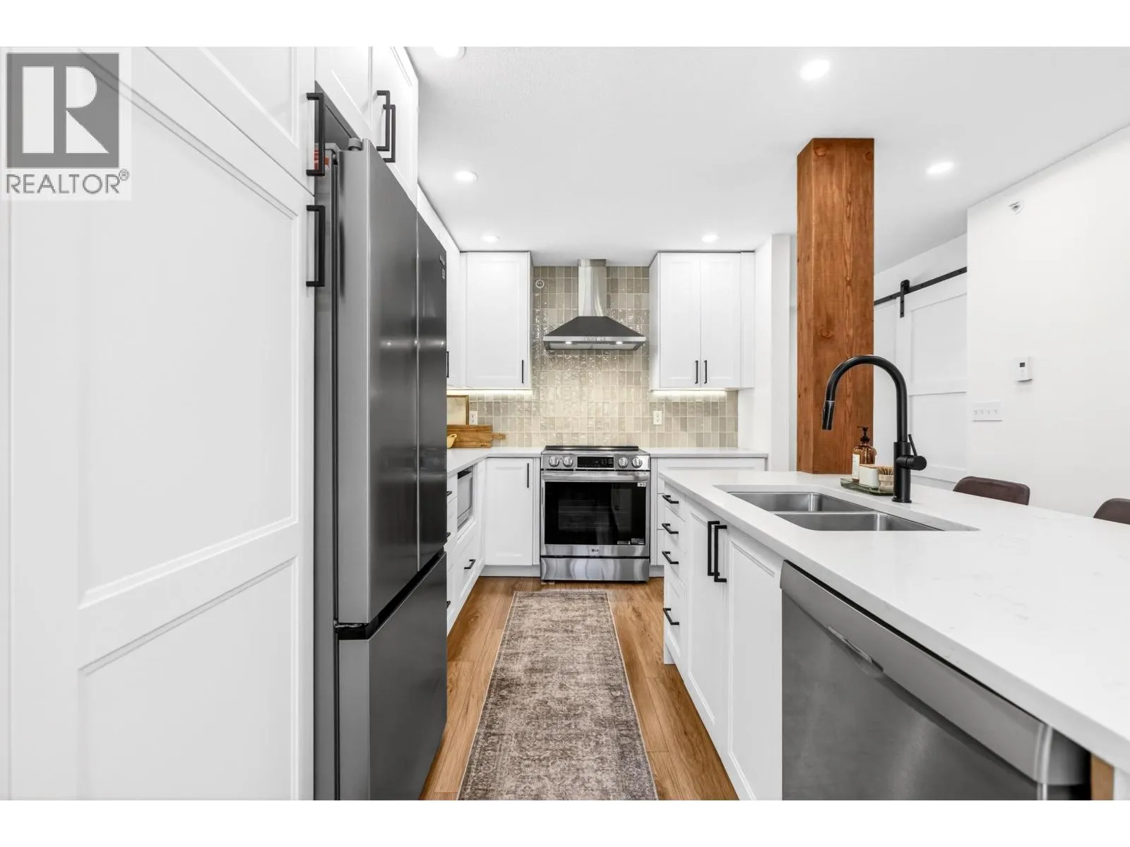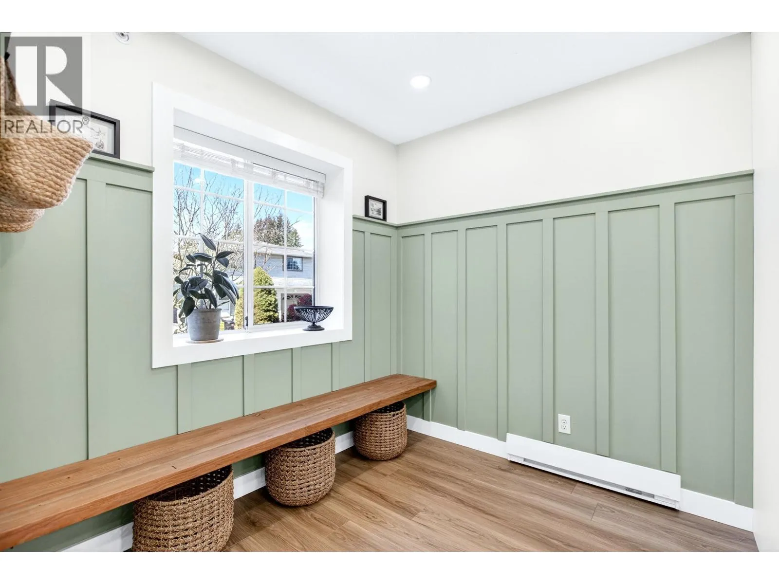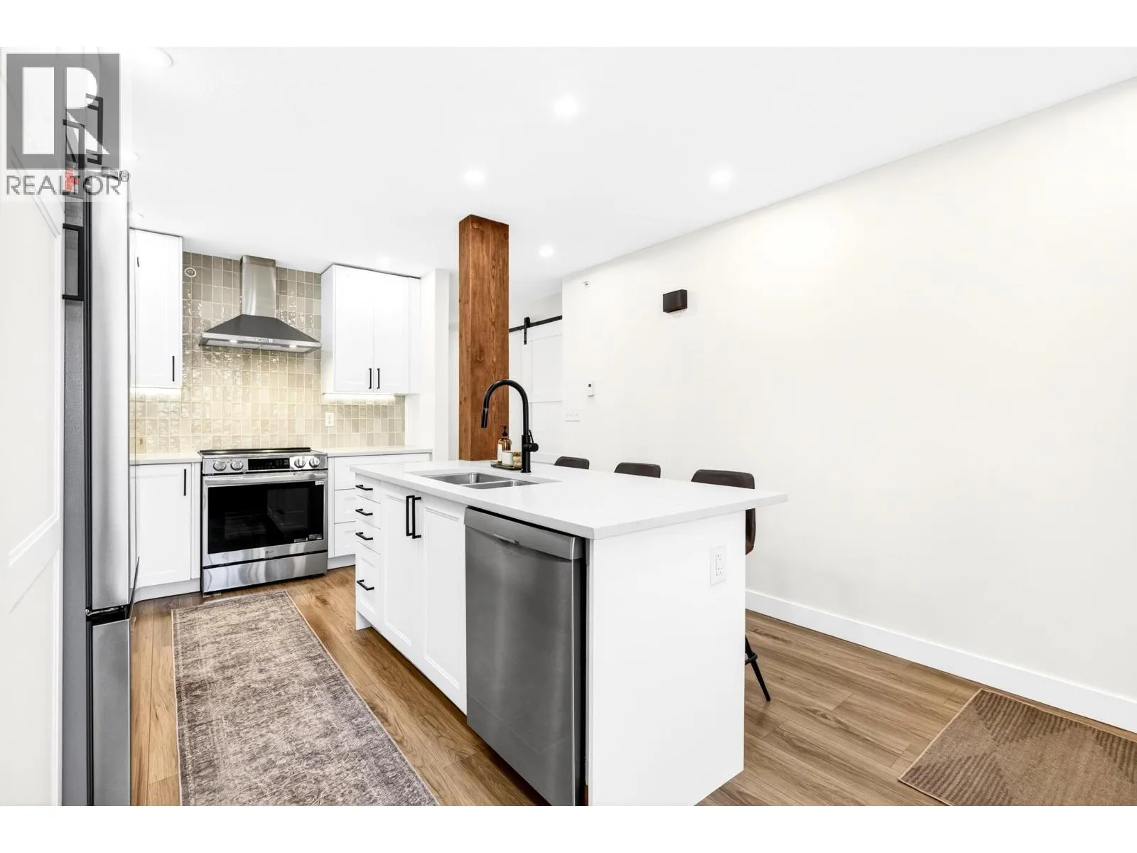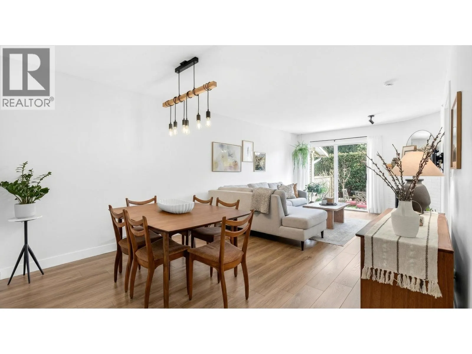 Renovated 2 bedroom, 2 bathroom townhouse centrally located at the popular Mcmyn Estates. Large gourmet kitchen offering updated cabinets with undermount lighting, quartz countertops/breakfast bar, tiled backsplash, recessed lights, wainscotting and stainless steel appliances. Adjacent dining/living room with new gas fireplace with tile surround and custom mantle. Sliding doors leading to a private east facing backyard/garden with cement patio perfect for entertaining. Spacious bedrooms, both with ensuite bathrooms, including primary with walk in closet. Stylish barn doors, laminate floors, new fixtures/hardware, baseboards and updated 3 piece bathroom on main. Recently painted, separate laundry room and space for 3 cars with 2 parking pads and a single car garage. Waking distance to K-12 schools, recreation center, parks, restaurants and West Coast Express. This home will not disappoint. (id:27476)