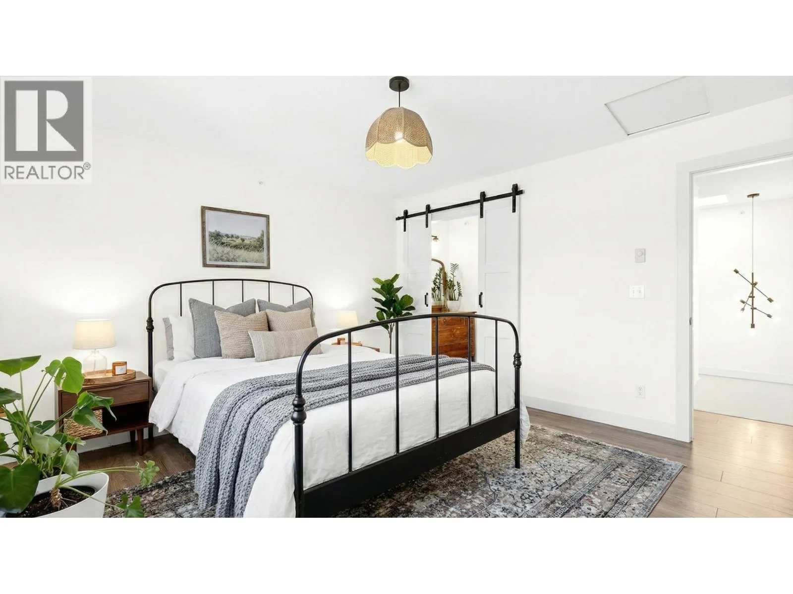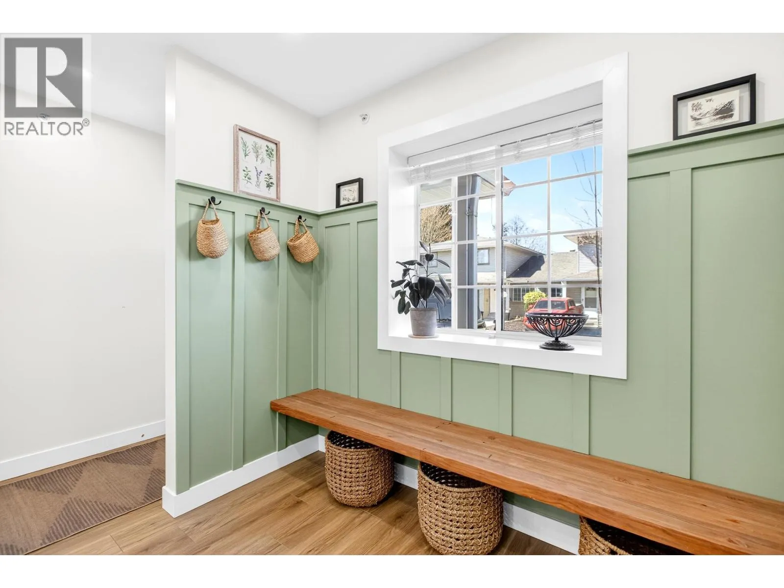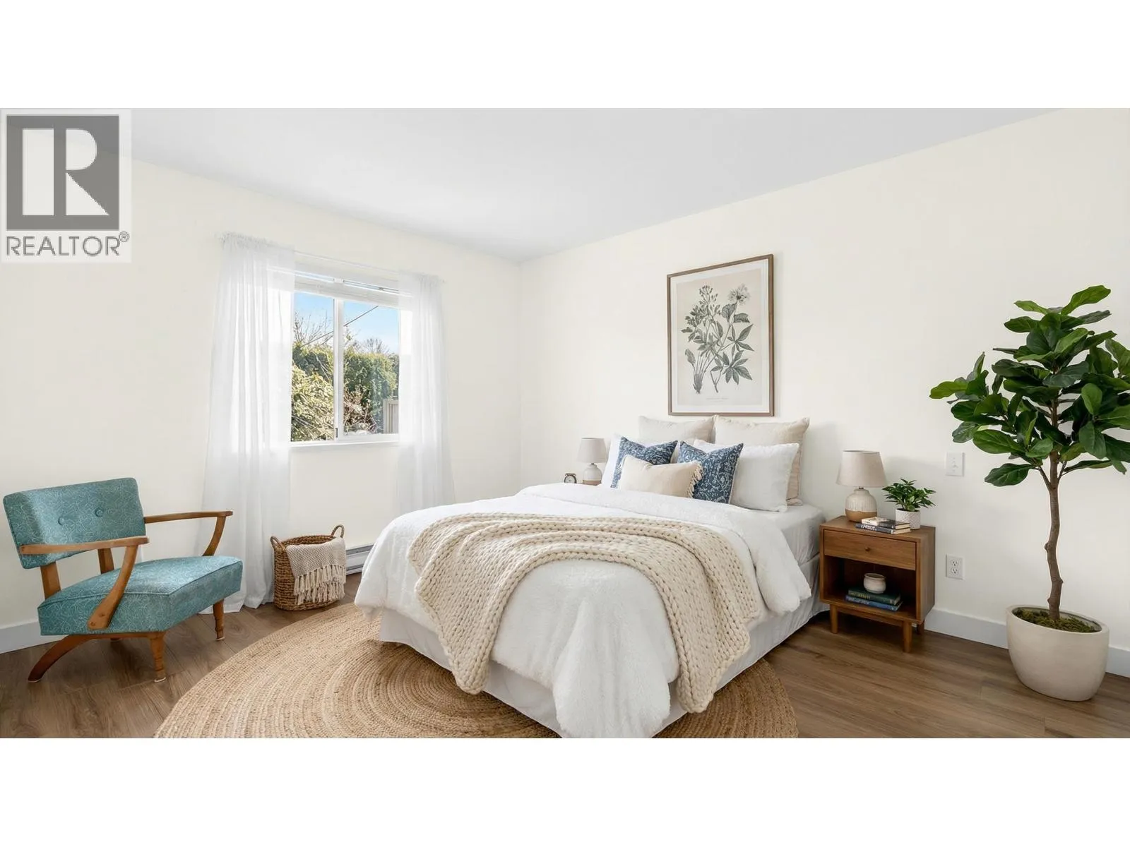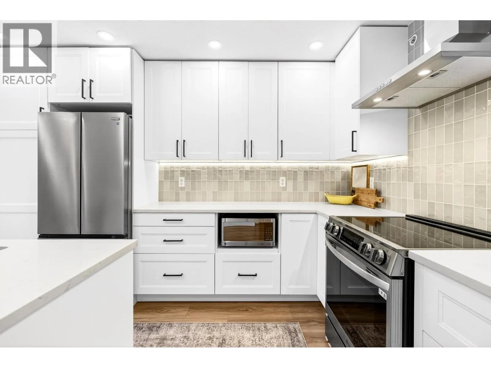 Renovated 2 bedroom, 2 bathroom townhouse centrally located at the popular Mcmyn Estates. Large gourmet kitchen offering updated cabinets with undermount lighting, quartz countertops/breakfast bar, tiled backsplash, recessed lights, wainscotting and stainless steel appliances. Adjacent dining/living room with new gas fireplace with tile surround and custom mantle. Sliding doors leading to a private east facing backyard/garden with cement patio perfect for entertaining. Spacious bedrooms, both with ensuite bathrooms, including primary with walk in closet. Stylish barn doors, laminate floors, new fixtures/hardware, baseboards and updated 3 piece bathroom on main. Recently painted, separate laundry room and space for 3 cars with 2 parking pads and a single car garage. Waking distance to K-12 schools, recreation center, parks, restaurants and West Coast Express. This home will not disappoint. (id:27476)