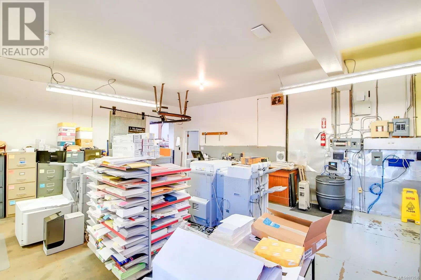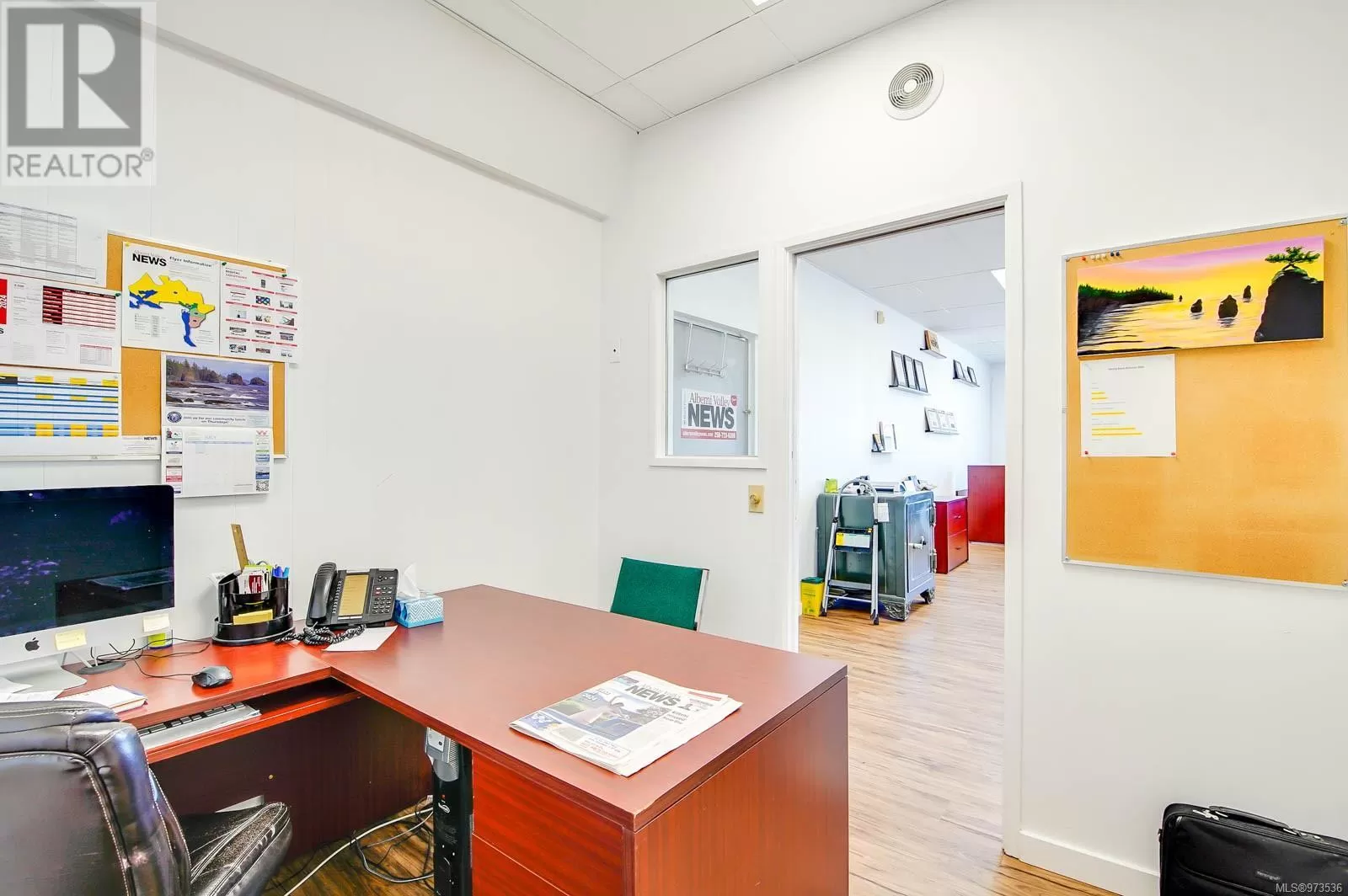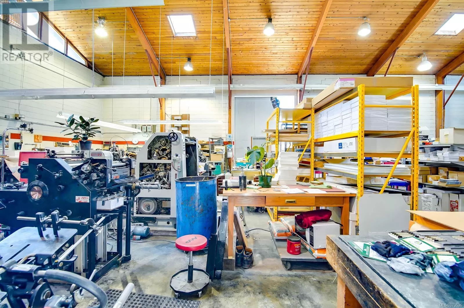 In the heart of Alberni Valley's business district, this nearly 10,000 square foot property houses two esteemed local businesses: the Alberni Valley News and Houle Printing. Inside, expansive vaulted ceilings create an impressive sense of space, complemented by ample storage throughout. The interiors have been thoughtfully redesigned, showcasing newly refurbished offices that blend functionality with contemporary design elements and a modern central air system ensuring comfort year-round. Ideal for continued commercial use or adaptation to various professional ventures, this property offers a unique opportunity to establish or expand within a thriving community hub. (id:27476)