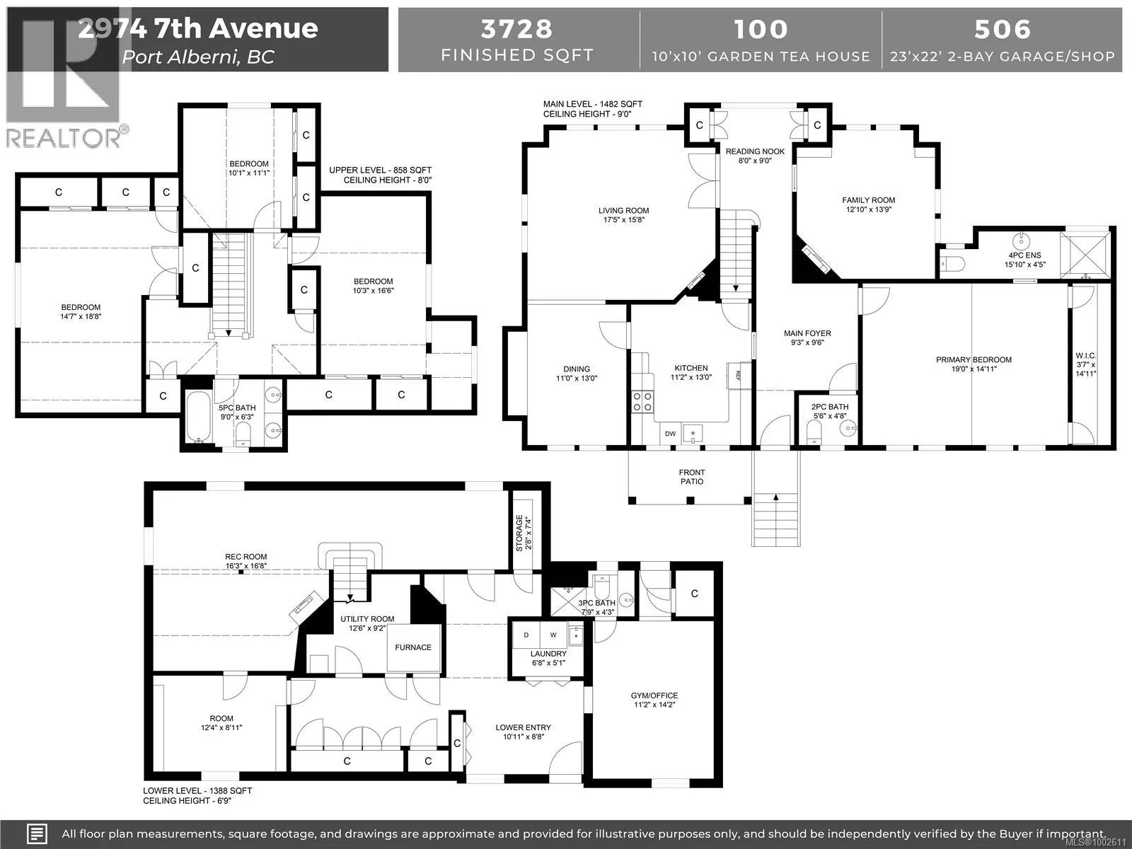 METICULOUSLY MAINTAINED CHARACTER HOME - offering stunning water views and a perfect blend of charm and modern updates. The main floor features a spacious primary bedroom complete with an en suite bathroom, providing a serene retreat. Enjoy gatherings in the formal living room with its inviting wood-burning fireplace, or retreat to the well-appointed study. The updated kitchen is a culinary delight, complemented by a convenient powder room. Venture upstairs to discover three additional bedrooms, along with a full bathroom perfect for family and guests. The lower level boasts a large recreation room, an extra bathroom, and ample storage space, ensuring plenty of room for all your needs. Step outside to the beautifully landscaped gardens in the fully fenced yard, where youâll find 2 detached shop/garages and a charming tea house, perfect for relaxation or entertaining. This home has seen many upgrades, including a durable metal roof, energy-efficient vinyl windows, and a heat pump for year-round comfort. Donât miss the opportunity to make this exceptional property your own! (id:27476)