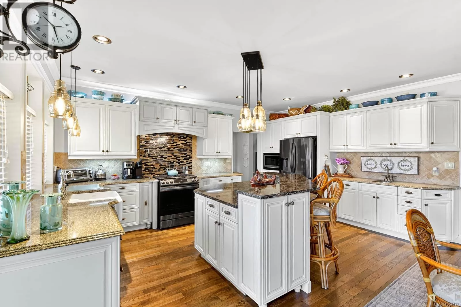 Nestled on a quiet, sought-after street in Port Alberni, this stunning 4-bed, 3-bath home sits on a private 1-acre lot with beautiful valley views. Enjoy peace and space just minutes from town. The main level features a spacious open-concept design, a primary bedroom with ensuite, and a modern kitchen with granite counters and new appliances. Upstairs offers a large bonus area perfect for an office, gym, or playroom. The beautifully landscaped yard is ideal for outdoor living and entertaining. With both an attached double garage and a detached double garage/workshop, there's ample space for vehicles, hobbies, or storage. This property blends luxury, comfort, and functionality in one of the area's most desirable neighborhoods. A rare opportunity for privacy, space, and style close to city conveniences. Donât miss your chance to make this incredible home yours! (id:27476)