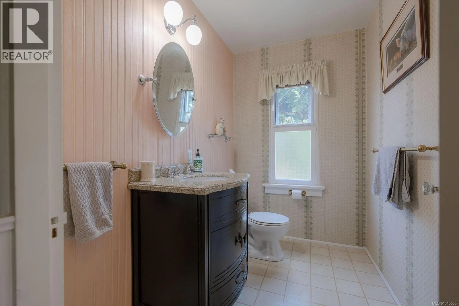Charming and beautifully updated character home located on a quiet cul-de-sac, just steps from Roger Creek Park and the scenic Scott Kenny Trail. This .46-acre, partially fenced lot is a gardenerâs dream, featuring vibrant flowerbeds, productive vegetable gardens, mature fruit trees, a greenhouse, and garden shed. The spacious main floor includes a kitchen with eating area, formal dining room, cozy living and family roomsâeach with its own gas fireplaceâplus a bedroom, 4-piece bath, and laundry. Upstairs offers two bedrooms, a 2-piece bath, and a generous primary suite complete with ensuite and walk-in closet. The unfinished basement provides ample storage or potential for future development. Notable features include original fir floors, leaded glass windows, French doors, and a brand-new heat pump. This home perfectly blends classic charm with modern comforts in a peaceful, nature-filled setting. (id:27476)