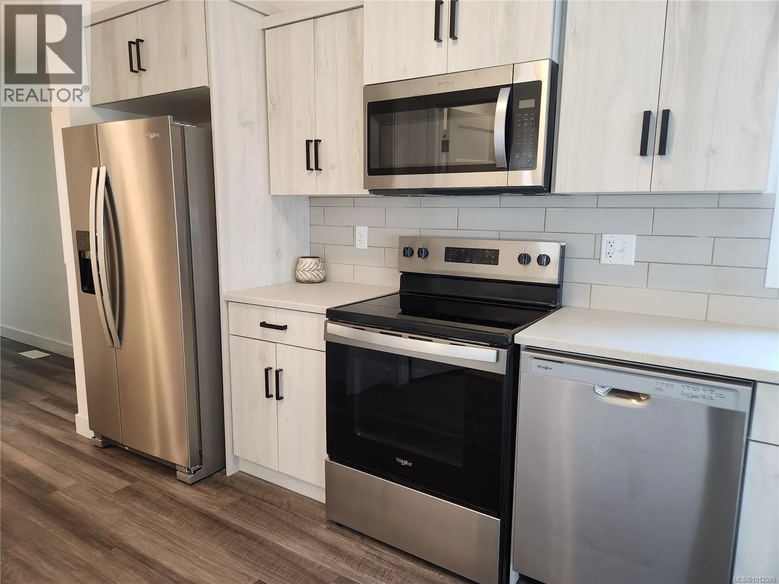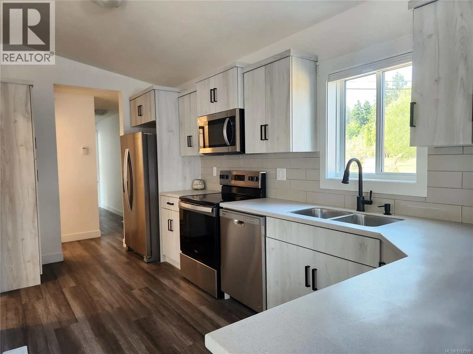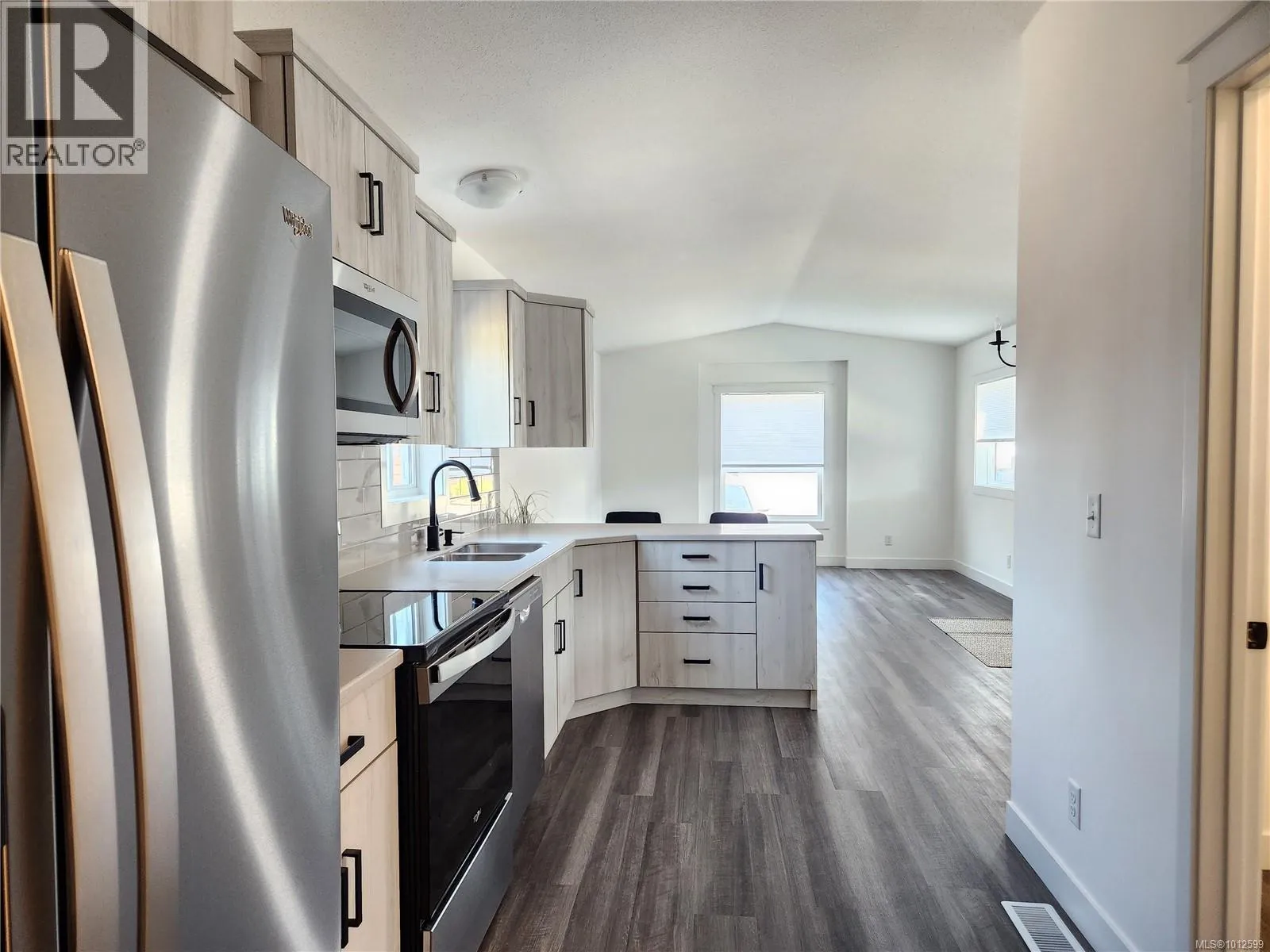 Step into this beautifully finished 2-bedroom, 2-bathroom home featuring stylish vinyl plank flooring, vaulted ceilings, and an open-concept layout perfect for modern living. The light, contemporary kitchen boasts sleek Corian countertops, Whirlpool stainless steel appliances, an above-range microwave, and plenty of cabinet space. The spacious primary bedroom offers a walk-in closet and a private ensuite with a walk-in shower, while the main bathroom includes a convenient tub/shower combo. Outside, enjoy the expansive fenced yard, an over-height carport, and a poured concrete slab ready for your garden shed. Tucked away in a quiet manufactured/mobile home park, yet just minutes from town amenities, this location offers the best of both worldsâcountry charm with city convenience. Donât miss your chance to own this move-in-ready gem! (id:27476)