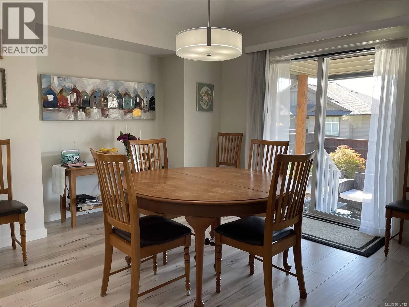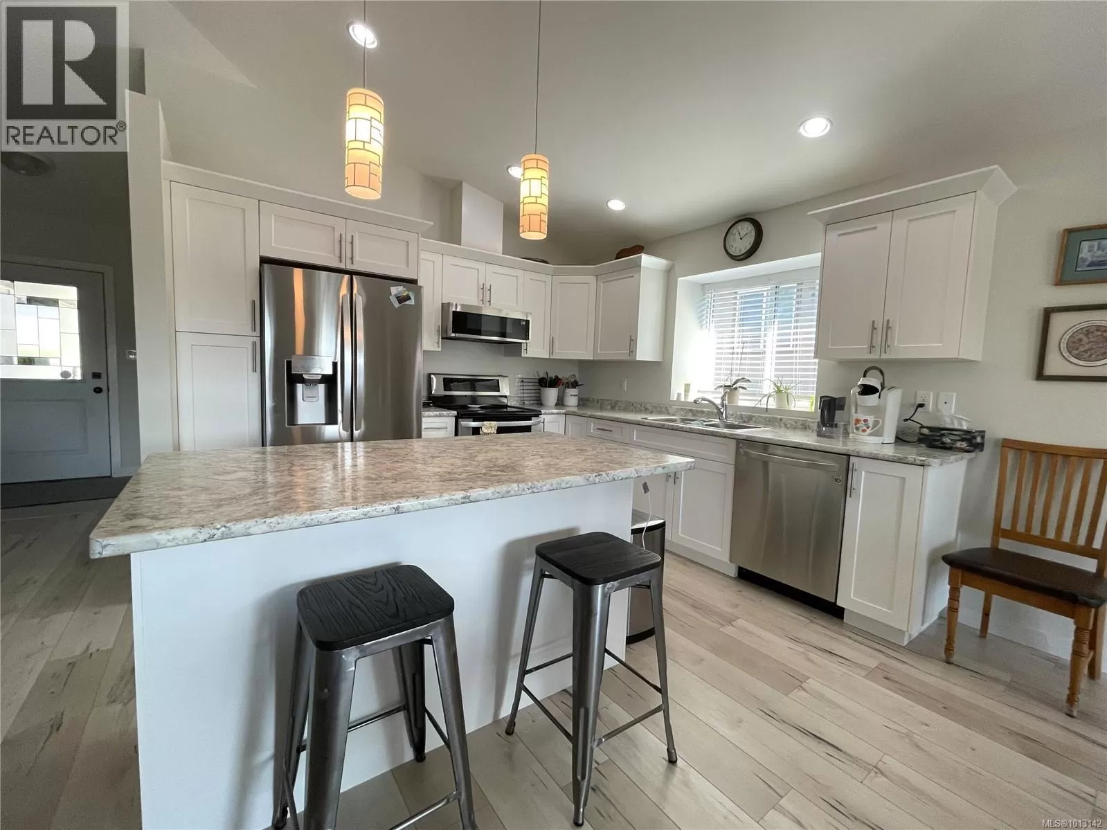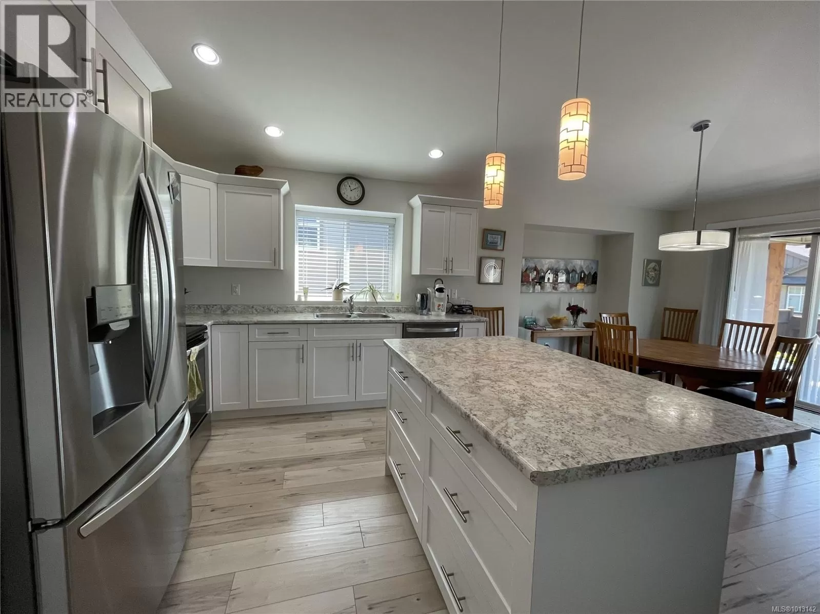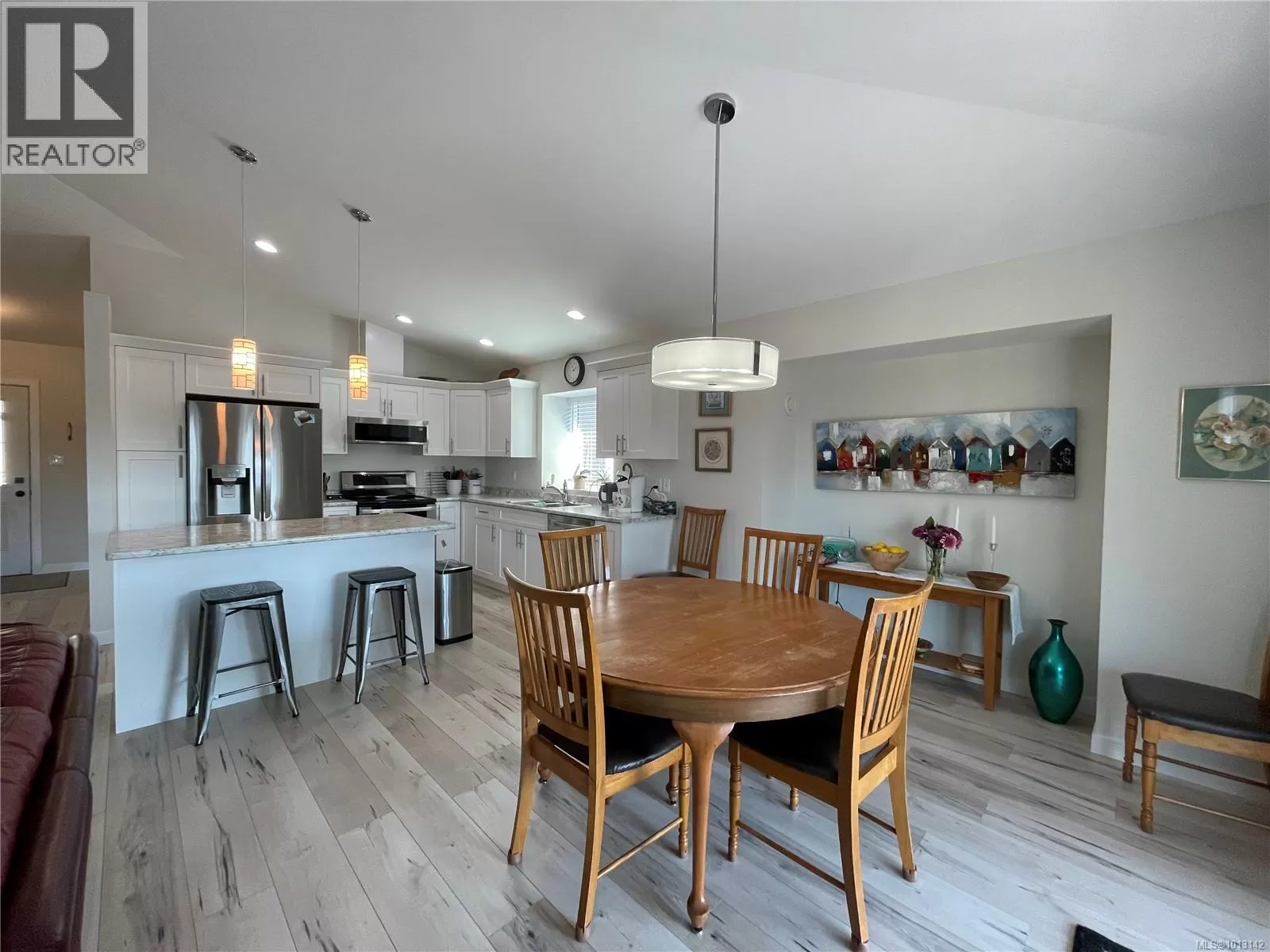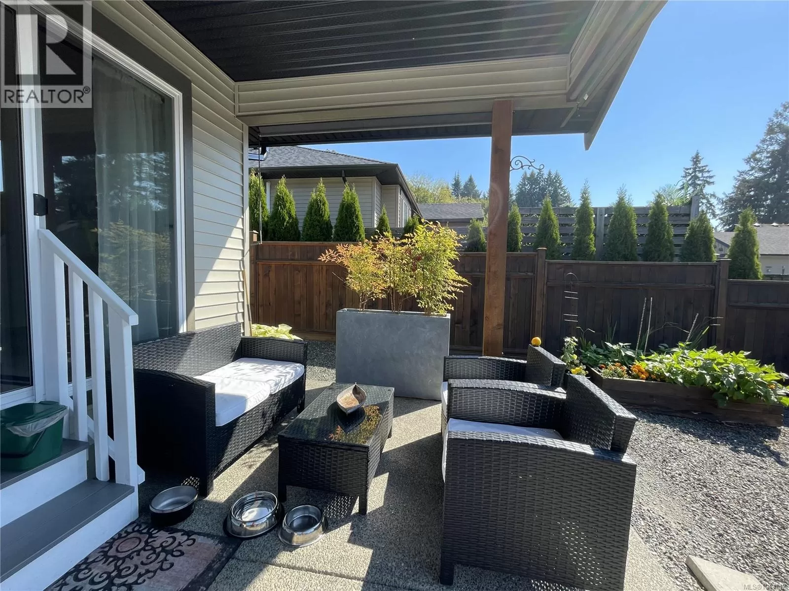Welcome to this immaculate 3-bedroom, 2-bathroom rancher nestled in quiet, well-maintained Tomswood subdivision. The open-concept layout features a bright and airy living room with vaulted ceilings, an abundance of natural light, a cozy electric fireplace, and custom built-in shelvingâcreating a warm and inviting atmosphere. The spacious kitchen offers a central island and flows seamlessly into the dining area, which includes a recessed nook perfect for a hutch or sideboard, along with direct access to a covered patio for year-round outdoor enjoyment. The primary bedroom includes a private 3-piece ensuite, while the additional bedrooms share a full 4-piece main bathroom. Outside, the fenced yard features low-maintenance landscaping, ideal for easy living and entertaining friends and family. Tucked behind Tsuma-as Elementary and a short walk to Kitsuksis Walkway, this lovely home is waiting for you. All measurements approximate; verify if important. (id:27476)