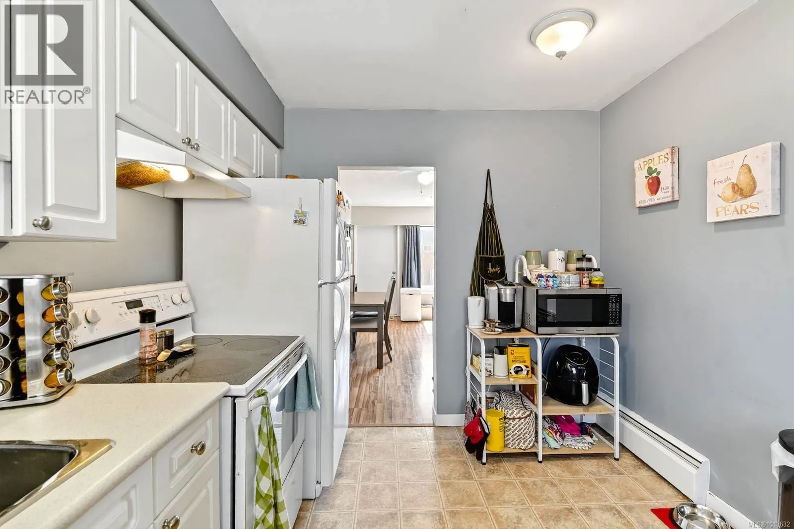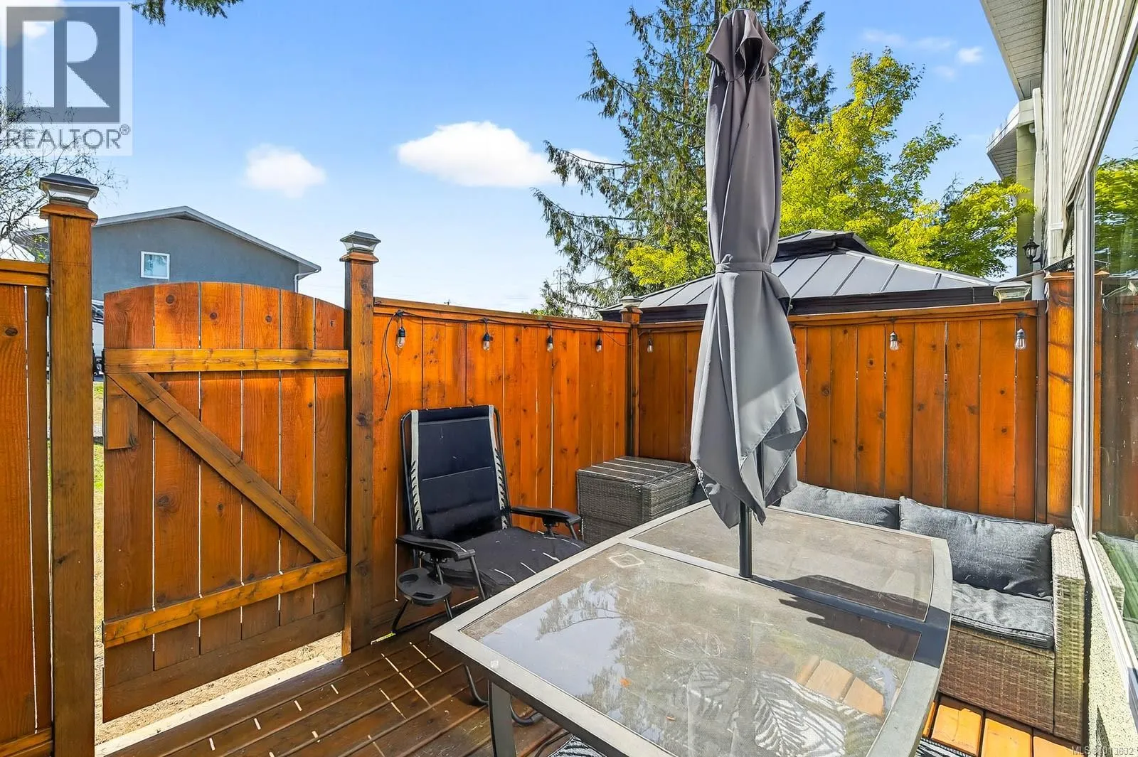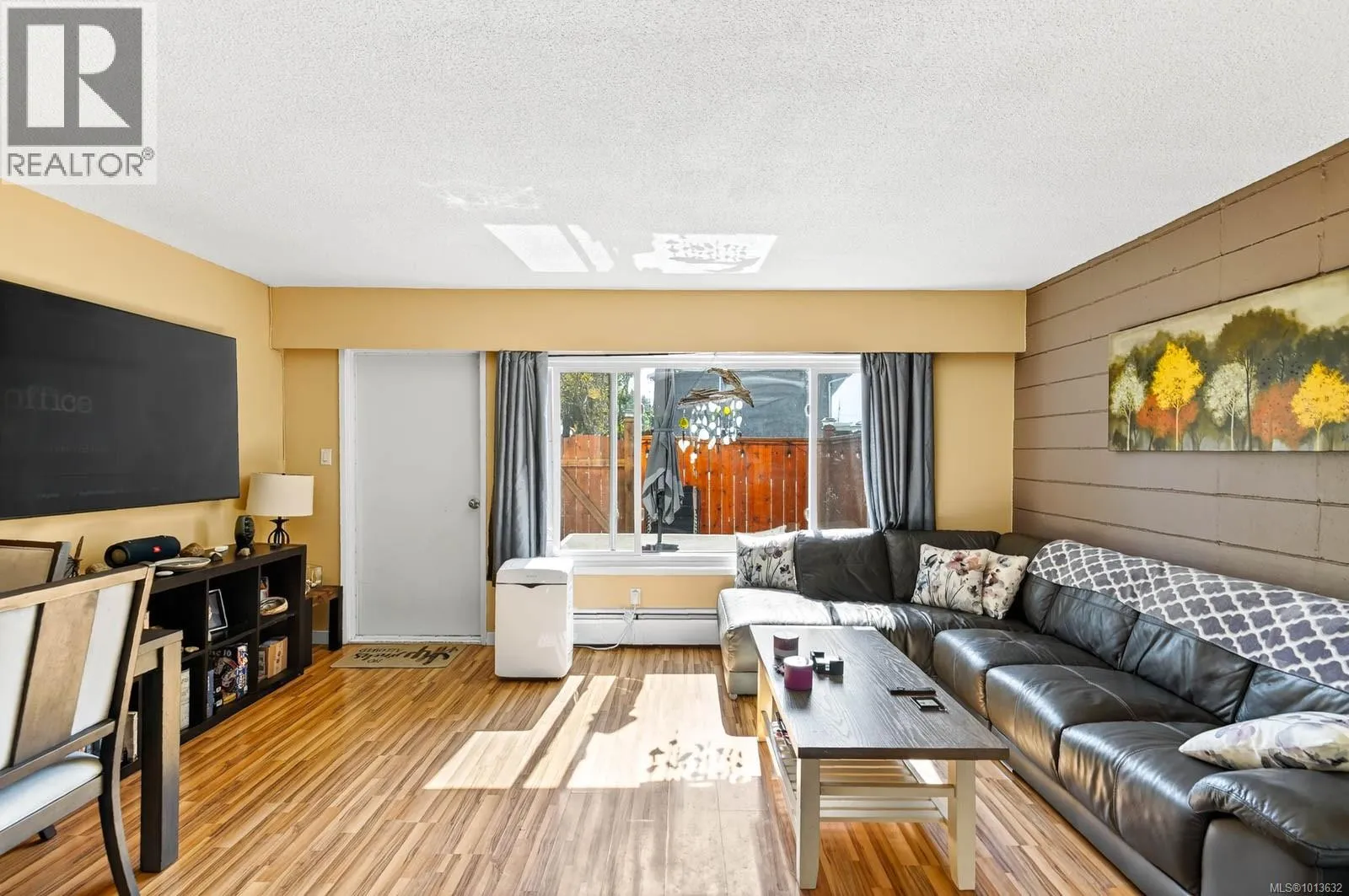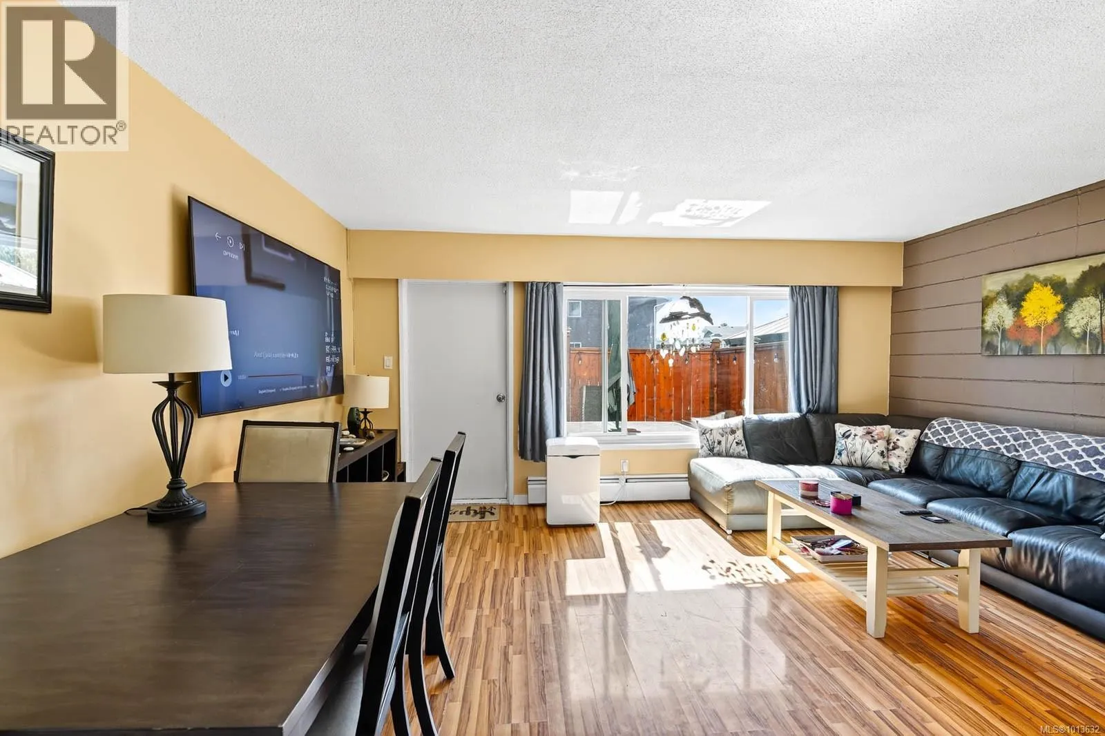 CLEAN TWO LEVEL TOWNHOUSE in a well established, centrally located development. This quiet end unit has a comfortable living room - dining area with direct access to a private enclosed backyard patio, an updated kitchen with dishwasher, a two piece powder room and an in-house laundry area on the main floor. Upstairs there are two large bedrooms, a four piece main bathroom and a storage room. A designated covered parking stall and the newly enclosed back patio complete this package. Upgrades include new vinyl thermal windows and some new interior paint. This well maintained strata development is close to shopping, services, schools, a host of recreation facilities, public transit, North Island College and the hospital. (id:27476)
