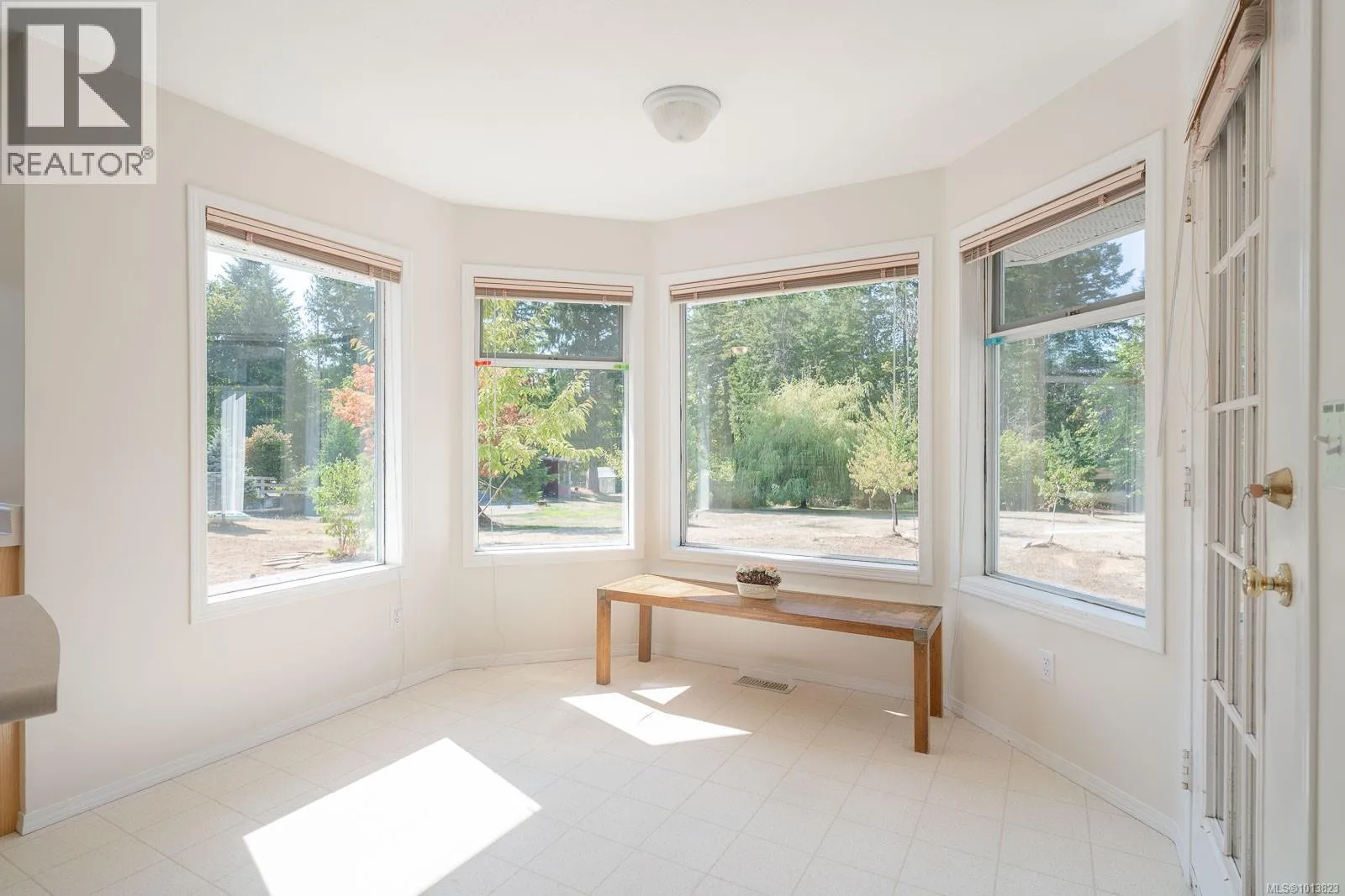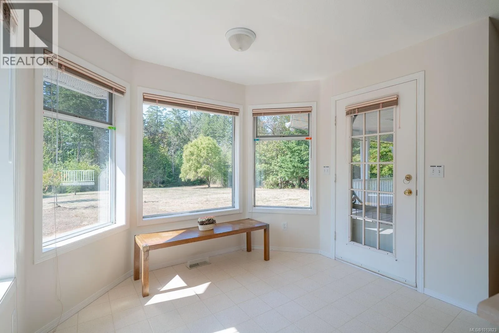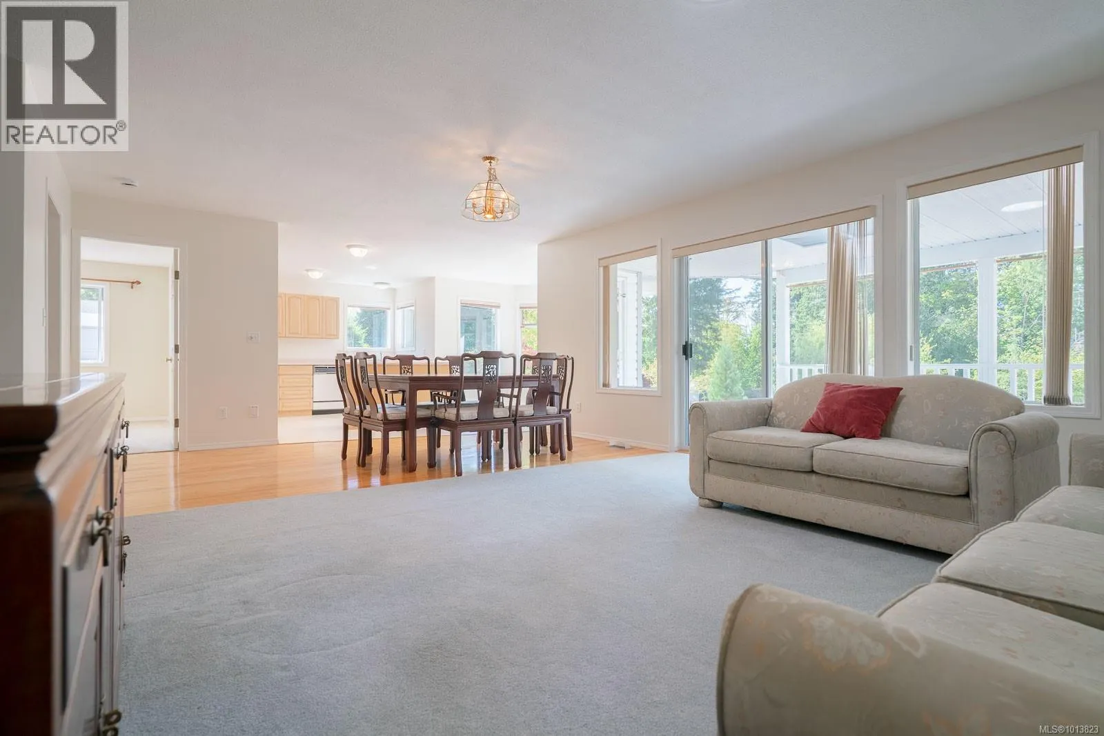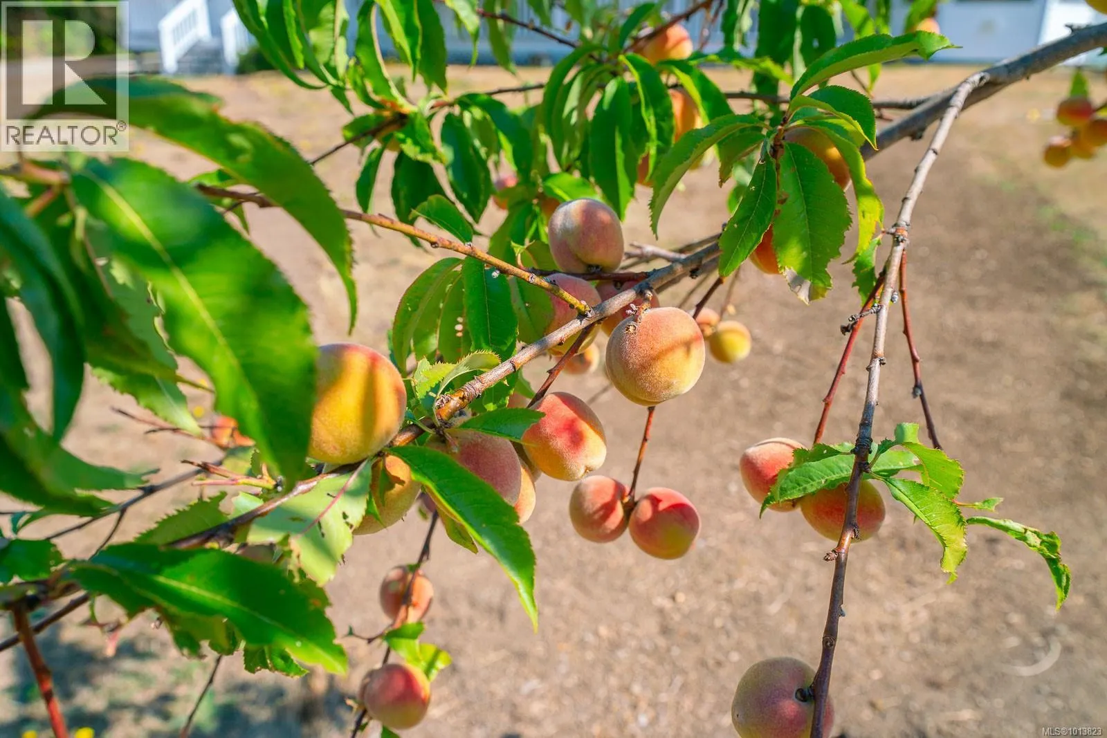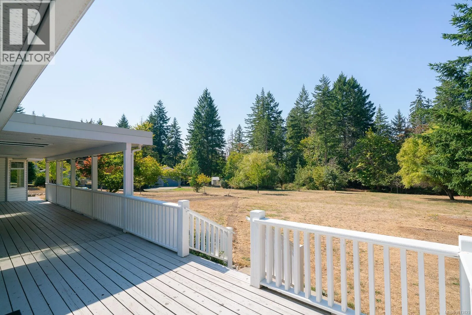 Welcome to this well-maintained 6-bedroom, 2-bathroom rancher set on a tranquil 1.9-acre parklike lot in a quiet neighborhood. Step inside to an open-concept layout filled with natural light, featuring beautiful wood floors, a spacious living room with a cozy electric fireplace, and a bright kitchen with oak cabinets, a central island, and a charming bay window. The adjoining dining area is perfect for family meals or entertaining. Step out onto the expansive, partially covered deck overlooking a peaceful, treed backdrop. The landscaped grounds feature fruit treesâincluding peachâa graceful willow tree, and Japanese maple, with plenty of space for dream gardens or for children to grow and play, all steps from the Log Train Trail. Complete with attached double and single garages and ample parking for your RV, this home offers comfort, space, and the beauty of nature right at your doorstep. All measurements are approximate, verify if important. (id:27476)