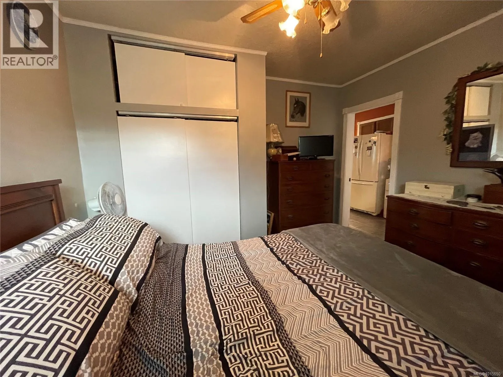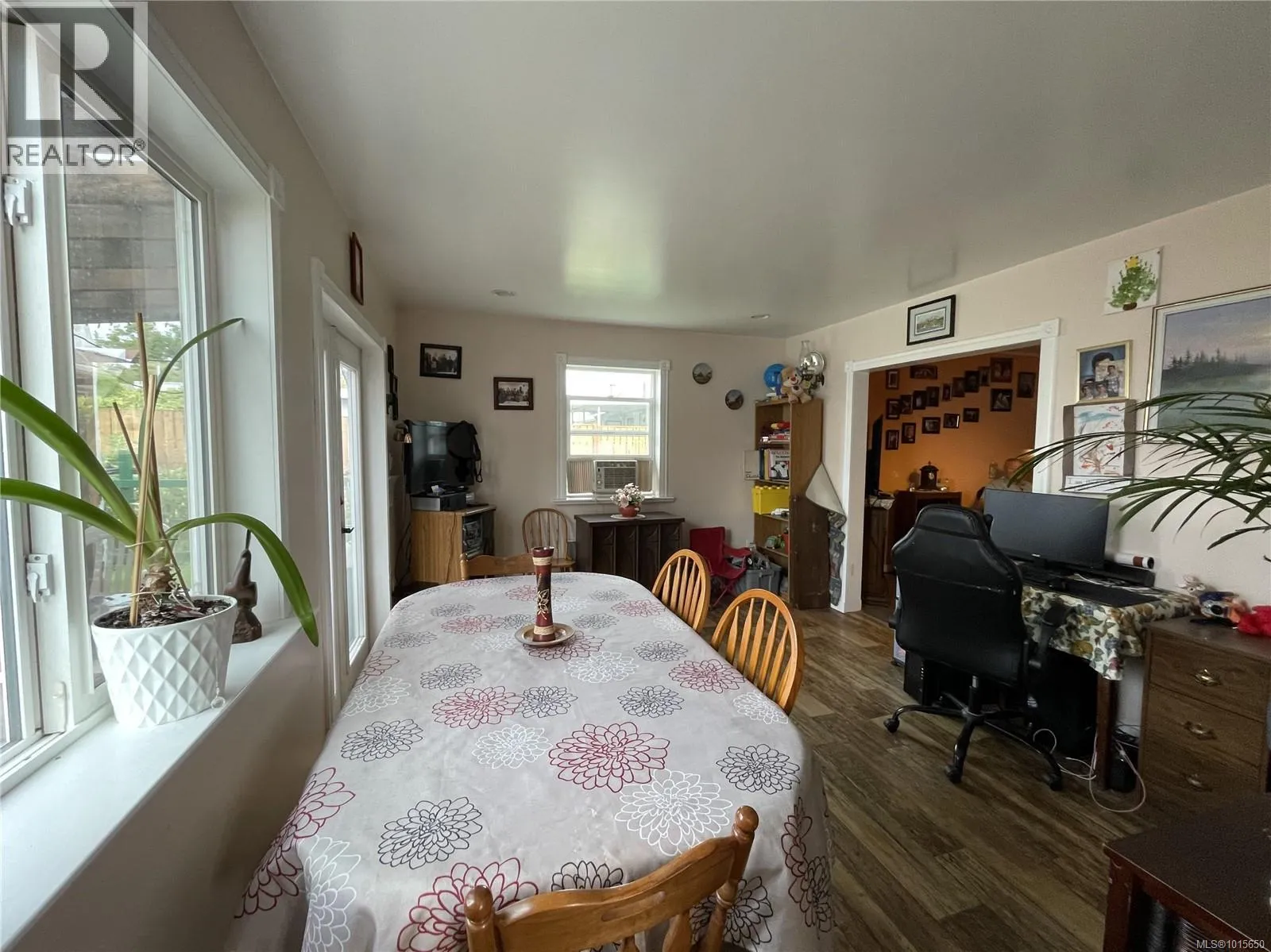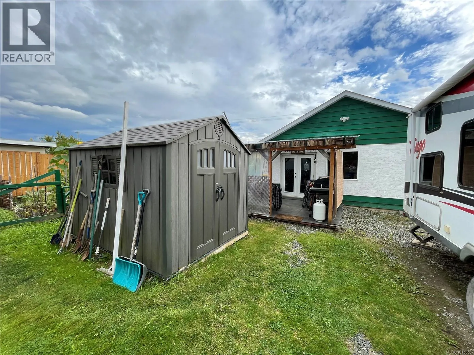Welcome to this charming two-story home in North Port, with one bedroom conveniently located on the main floor, providing ease and privacy throughout the home. Step inside to find a bright living room and a formal dining area, perfect for entertaining. The well-appointed kitchen flows into a spacious family room, offering easy access to a covered patio for outdoor relaxation. While the laundry room features a handy 2-piece bathroom and stacking washer/dryer unit, a 3-pc bathroom rounds out the main floor. Upstairs, the second bedroom with a generous landing opens up onto the large balcony, ideal for soaking in breathtaking sunsets and mountain views. Situated on a large fenced lot with dual access, this property boasts a beautiful garden plot, a detached garage, and ample parking for your RV. Donât miss your chance to call this delight with new vinyl windows and 200 amp service your own! All measurements approximate and must be verified if important. (id:27476)