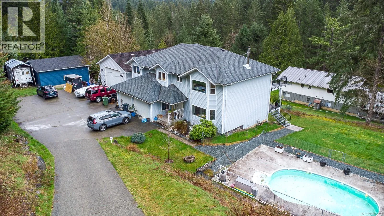 AMAZING VALUE! Spacious Multi-level Family Home with double garage, detached 900 square foot garage/shop and an in-ground pool all on a 0.57 acre lot. The main floor of this outstanding family home features a large living room with adjoining dining area, a spacious, well appointed kitchen with eating area and direct access to a nearly 400 sq ft deck, primary bedroom with walk-in closet and 3 piece ensuite, and two other large bedrooms. The lower (ground) level has a welcoming entrance foyer, a large family room, a den, a self-contained, multi-purpose space (which could be used for extended family members or over night-guests) and direct access to a 2nd large covered deck. The lower level features a media room, recreation area and an exercise room. A detached garage/shop, a private in ground pool (perfect for those Port Alberni summers) and lots of RV , Boat or vehicle parking completes this package. A quiet neighbourhood and fantastic mountain views; this property really has it all. (id:27476)