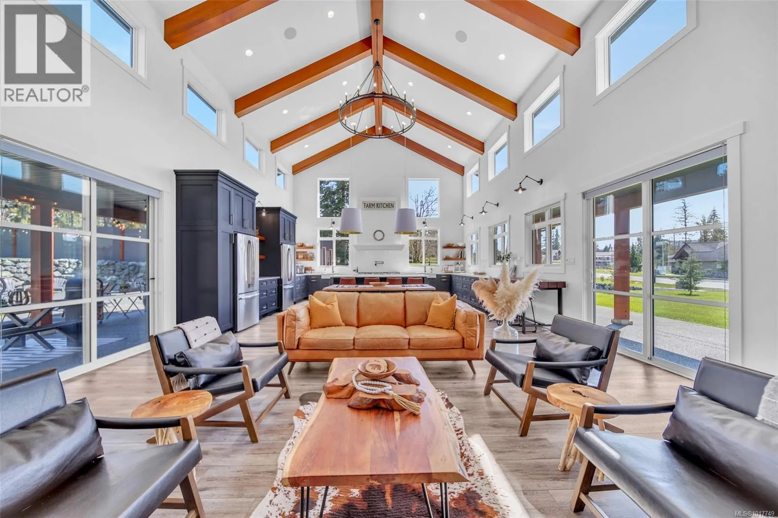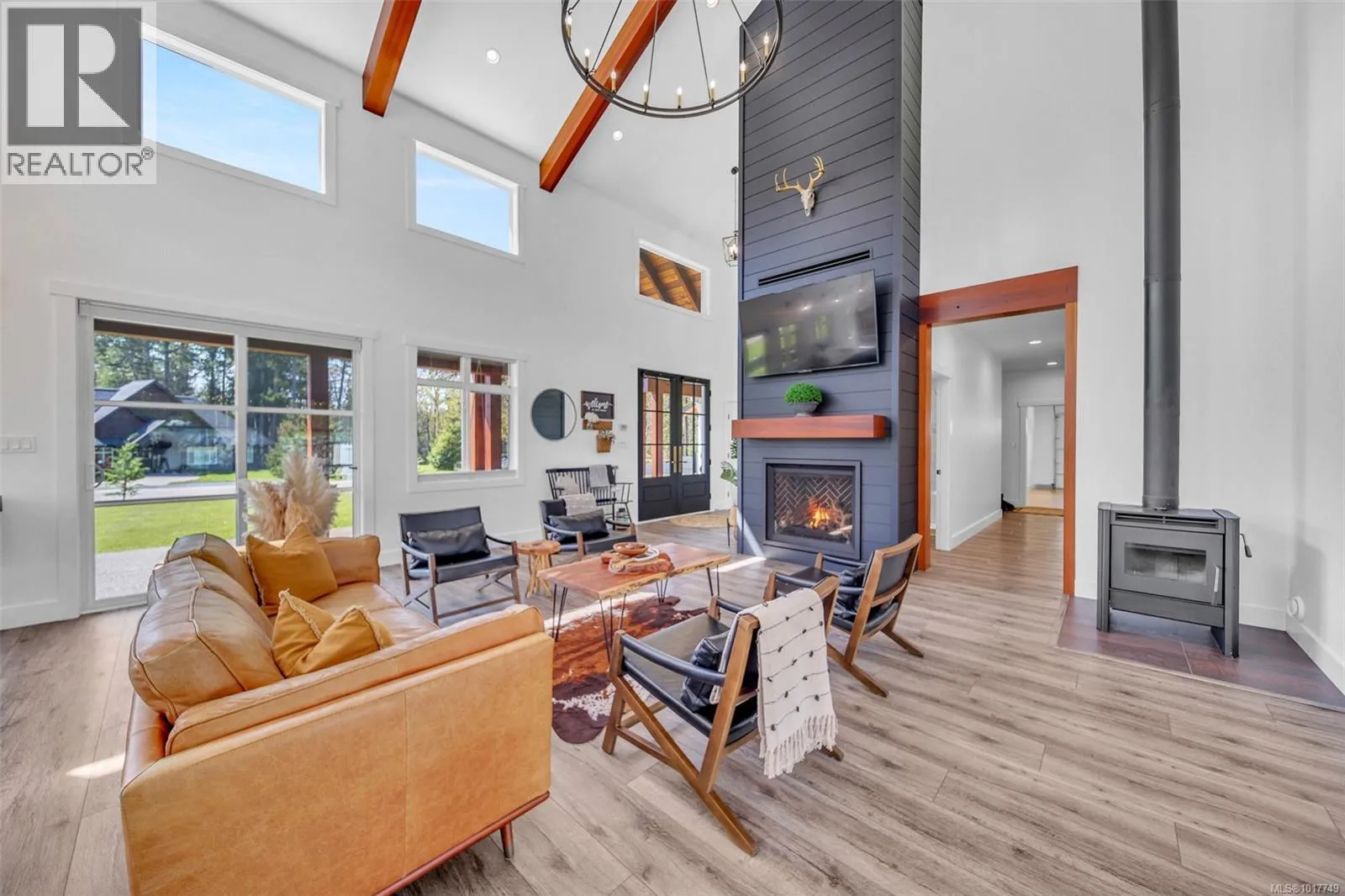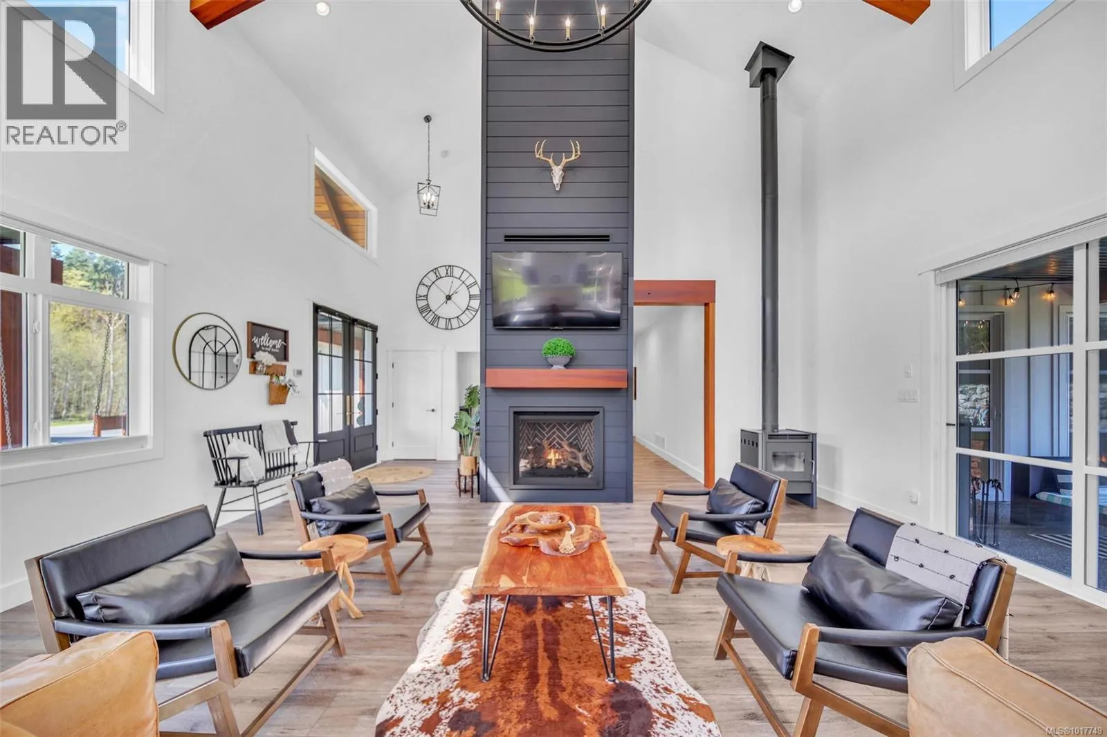 Exquisite 2021-Built Farmhouse â A True Masterpiece! Nestled on a 1 acre lot in the sought after Karen Place neighborhood, this barn-dominium style farmhouse is a rare gem that redefines luxury living. This breathtaking property blends modern sophistication with rustic charm in a way that feels both timeless & innovative. Youâll be captivated by the thoughtful design & awe inspiring main living area with an open concept kitchen offering double appliances & endless cabinet space. Everything you need is on the main level (4 bedrooms & 3 bathrooms!) plus there's a second storey with a bedroom, full bathroom & large living area (suite potential!). The home features 3 zones of heating & cooling with separate temperature controls. Choose your heat source: heat pump, propane, or wood & enjoy the efficiency of circulated hot water through a fully insulated loop, delivering instant hot water to all faucets! The oversized double garage & oversized single garage both come equipped with car chargers roughed in. The luxurious primary suite offers a double sided fireplace, soaker tub, walk-in shower & walk-in closet, plus direct access to the home's private courtyard. The second primary suite also offers a walk-in closet & full en-suite bathroom. Showcasing the highest quality Western Red Cedar, free of heart, promising durability & timeless beauty. An automatic lawn irrigation system keeps the front & lower backyard lush, while the parking area offers ample parking & an RV spot with power, water & sewer hookups. For a future shop on the upper back level - power, water & sewer are stubbed out at the house. Many systems can be controlled remotely via your phone, with additional features like whole-home heating & cooling, party lights in the back yard and on the deck & more. Whether youâre seeking a peaceful retreat or a space to entertain, this Alberni Valley masterpiece offers it all. Donât miss your chance to own one of the most beautiful and unique properties in the area! (id:27476)