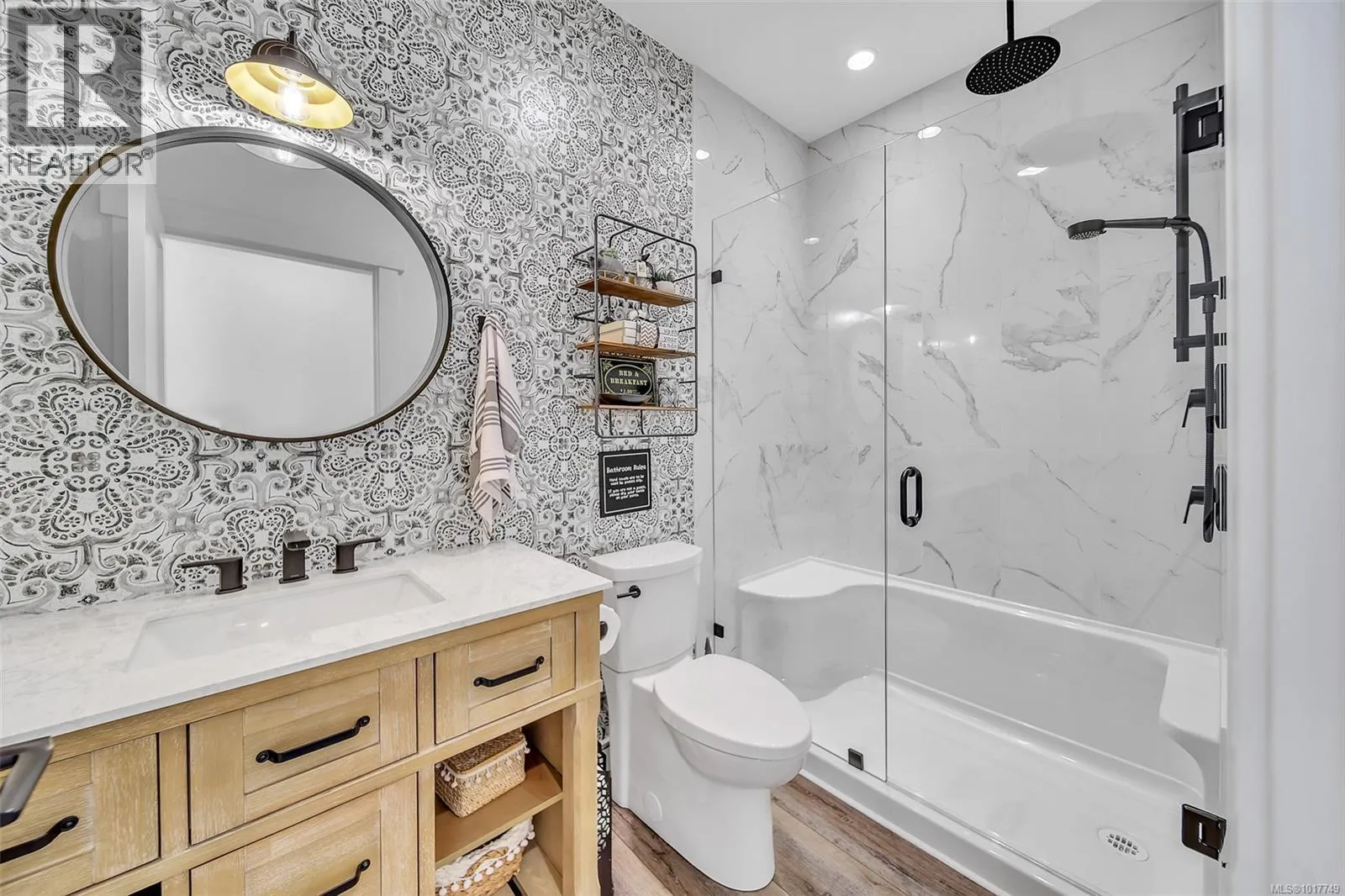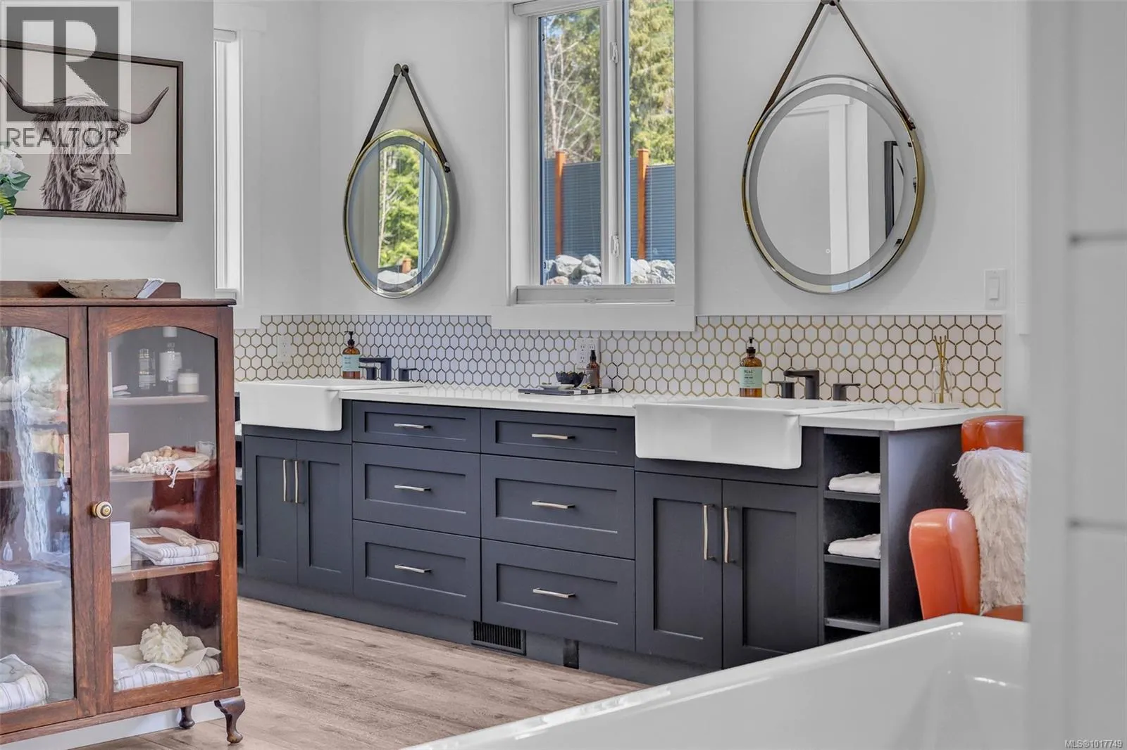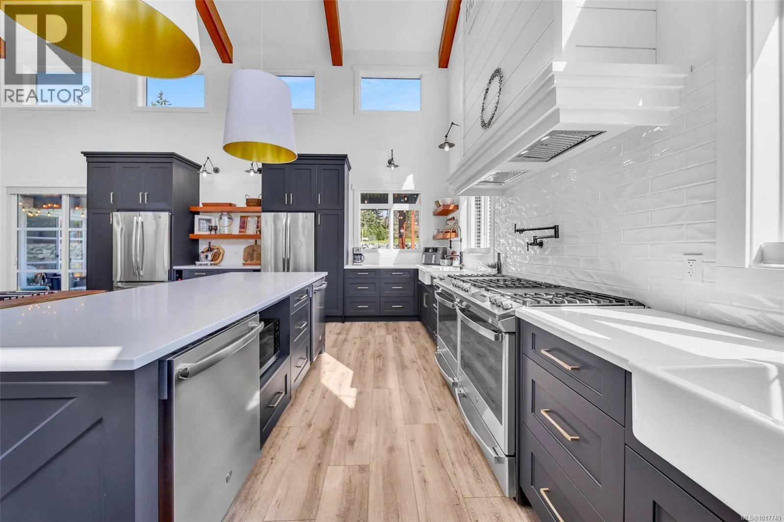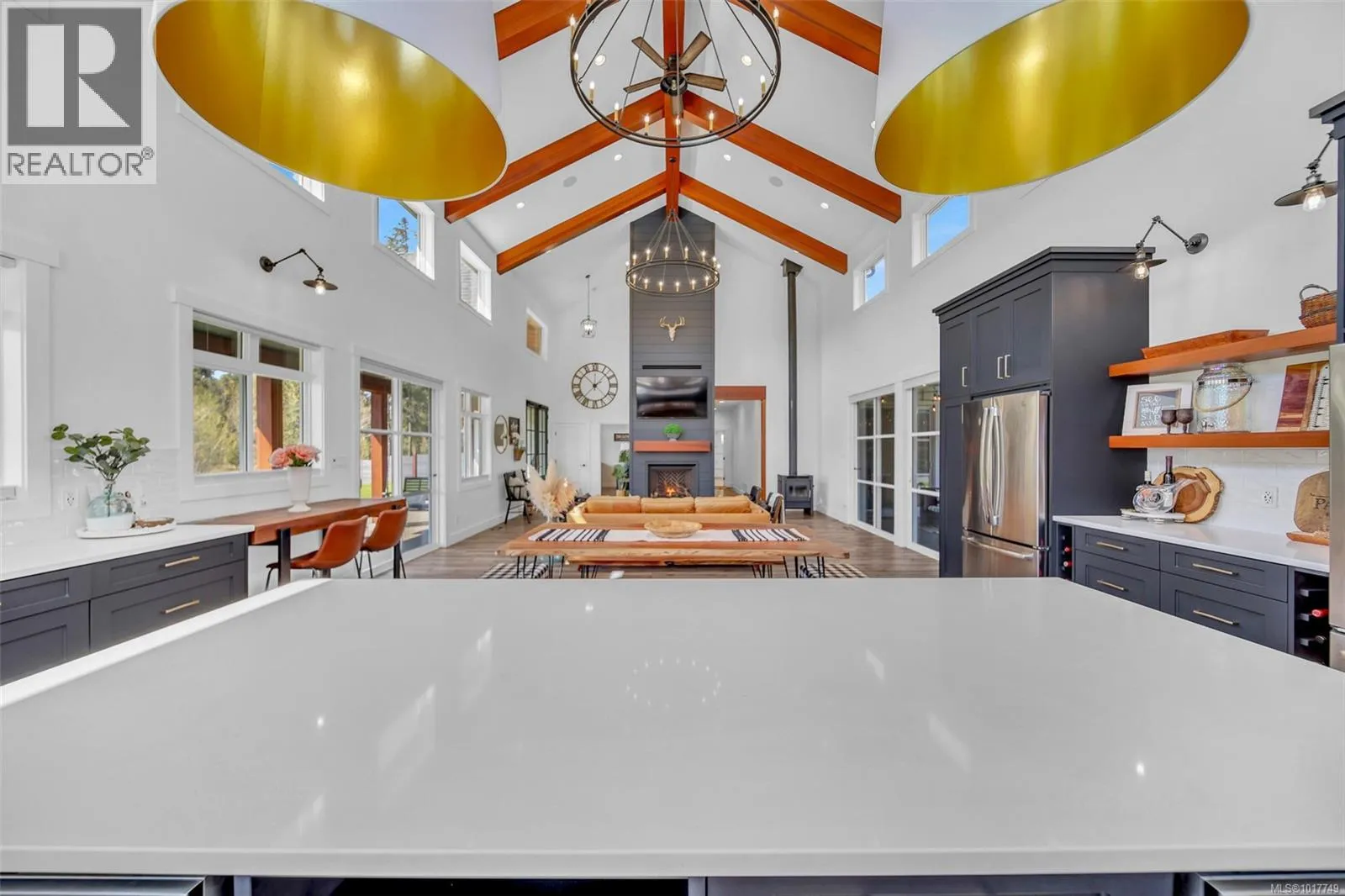 Exquisite 2021-Built Farmhouse â A True Masterpiece! Nestled on a 1 acre lot in the sought after Karen Place neighborhood, this barn-dominium style farmhouse is a rare gem that redefines luxury living. This breathtaking property blends modern sophistication with rustic charm in a way that feels both timeless & innovative. Youâll be captivated by the thoughtful design & awe inspiring main living area with an open concept kitchen offering double appliances & endless cabinet space. Everything you need is on the main level (4 bedrooms & 3 bathrooms!) plus there's a second storey with a bedroom, full bathroom & large living area (suite potential!). The home features 3 zones of heating & cooling with separate temperature controls. Choose your heat source: heat pump, propane, or wood & enjoy the efficiency of circulated hot water through a fully insulated loop, delivering instant hot water to all faucets! The oversized double garage & oversized single garage both come equipped with car chargers roughed in. The luxurious primary suite offers a double sided fireplace, soaker tub, walk-in shower & walk-in closet, plus direct access to the home's private courtyard. The second primary suite also offers a walk-in closet & full en-suite bathroom. Showcasing the highest quality Western Red Cedar, free of heart, promising durability & timeless beauty. An automatic lawn irrigation system keeps the front & lower backyard lush, while the parking area offers ample parking & an RV spot with power, water & sewer hookups. For a future shop on the upper back level - power, water & sewer are stubbed out at the house. Many systems can be controlled remotely via your phone, with additional features like whole-home heating & cooling, party lights in the back yard and on the deck & more. Whether youâre seeking a peaceful retreat or a space to entertain, this Alberni Valley masterpiece offers it all. Donât miss your chance to own one of the most beautiful and unique properties in the area! (id:27476)