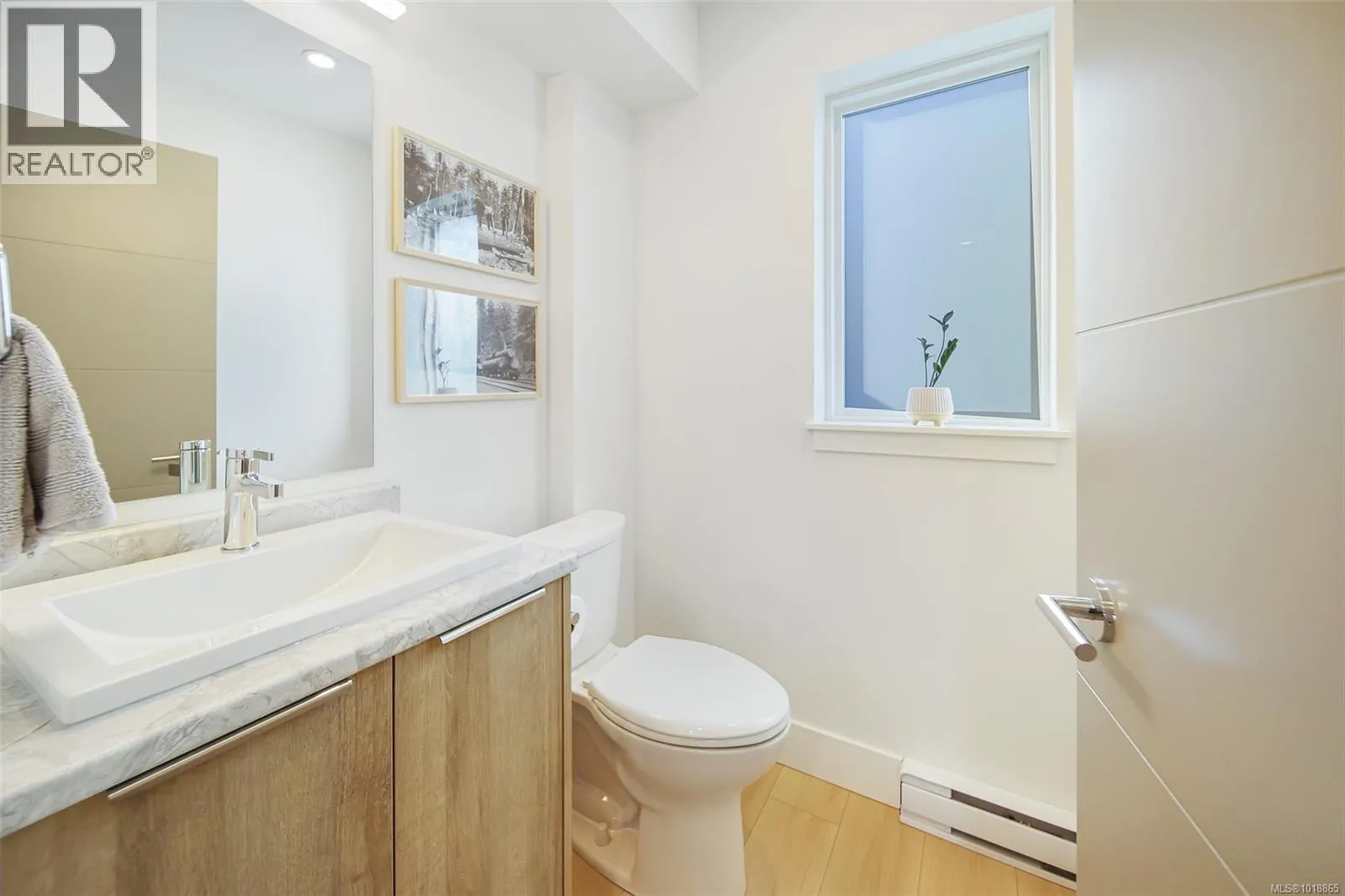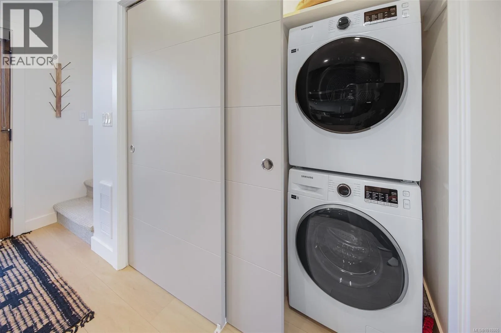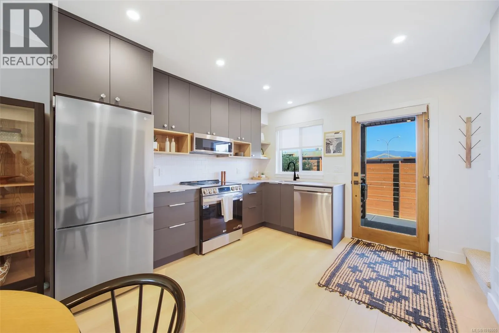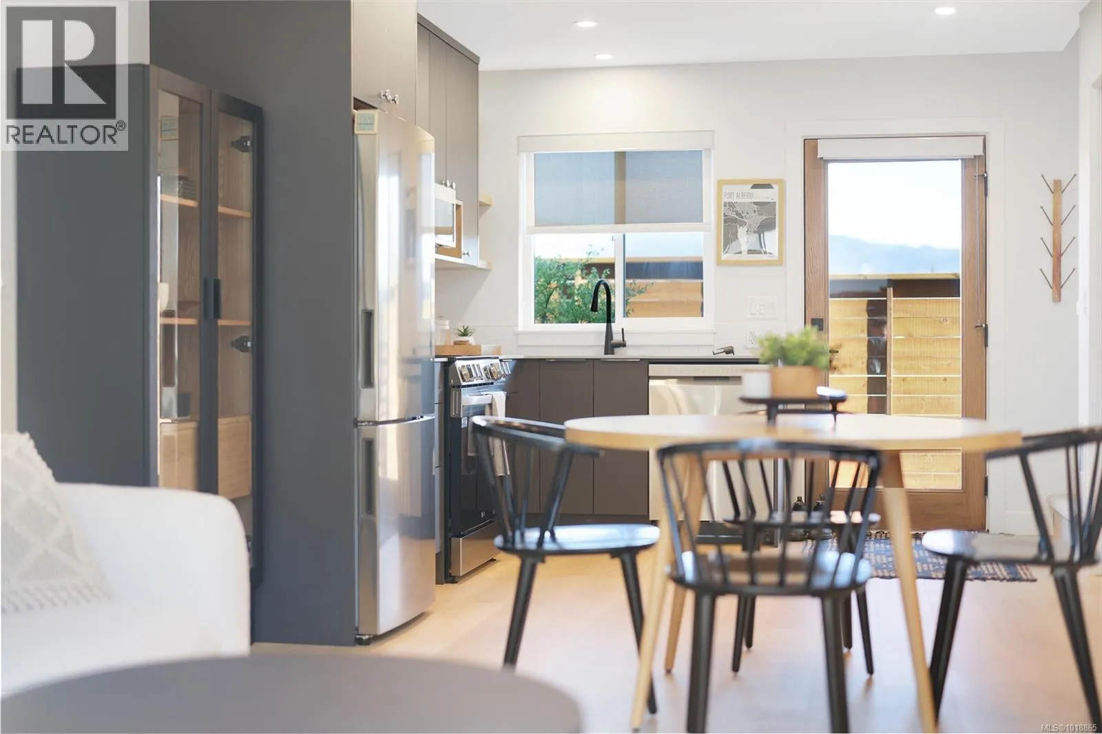 This newly-built modern townhome offers incredible value, taste & comfort in the Woodwardâs Village Complex! The layout is thoughtfully designed to maximize both function and upscale style. This home features 2 well appointed bedrooms & modern 4-piece bath upstairs. The kitchen is an absolute standout with sleek charcoal matte cabinets, open shelving, high-end appliances & cozy dining space. An open concept living room features wide plank white oak-style flooring & patio doors leading out to a private backyard space-ideal for relaxing outdoors. A half bath & laundry space completes the main floor. Located just steps from the serene Weaver Park & Port Alberniâs vibrant uptown core, youâll be close to restaurants, breweries, Canal Beach, trails, the Harbour Quay & more. A fantastic opportunity for first-time buyers, professionals, investors or those in search of simple living!This complex allows pets & rentals. New Home Warranty & seller has already paid GST! Quick possession possible. (id:27476)