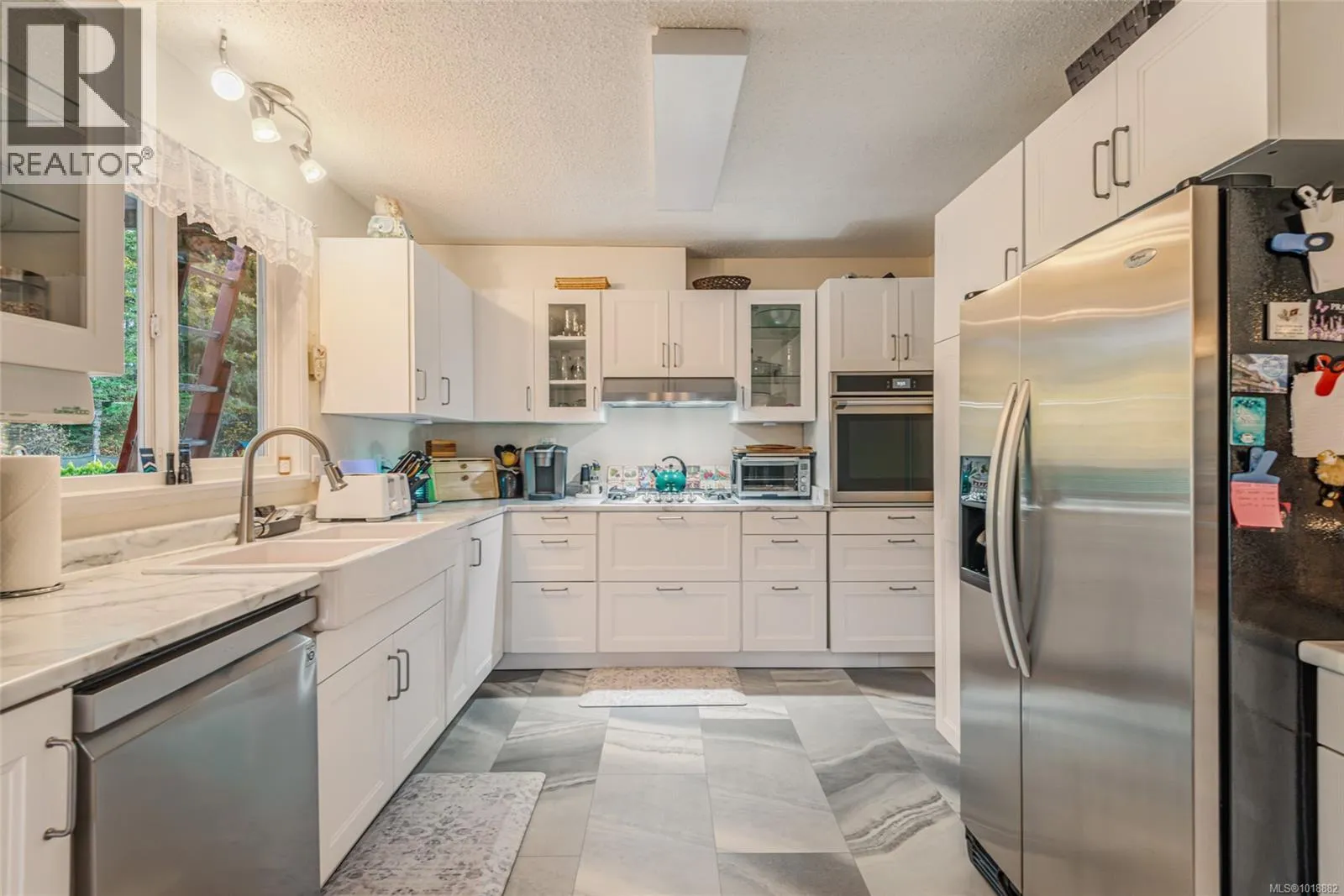 Situated in the rural neighbourhood of Beaver Creek, this warm and welcoming home offers a rare blend of privacy, space, and connection to nature. Set on 0.60 acres, with a gentle creek flowing through the property and mature landscaping framing the home, the setting is both tranquil and inspiring. Inside, the heart of the home is a bright and spacious living room anchored by a large southwest-facing window that captures the light throughout the day. It flows seamlessly into the beautifully updated kitchen: featuring shaker cabinetry, stainless appliances, gas range, wall oven, and abundant storage. The adjoining dining area offers a beautiful bay window and walk-out access to a covered deck. Whether you're gathering for casual meals or special occasions, this open-concept space is designed for togetherness. On the main level, the primary bedroom features a walk-through closet with direct access to the updated main bathroom. A second bedroom and a den offer flexible spaces for family or guests. Downstairs, a large recreation room invites relaxation or play, alongside another bedroom, a full bath with a soaker tub, and a dedicated laundry area. Outdoors, the fully fenced backyard is ready for your lifestyle. Whether that's summer evenings around the fire pit, room for your RV or boat, or simply unwinding in the serenity of your private greenspace. A double attached garage, double carport, and a generous driveway offer ample parking options. Located just a short drive to the amenities of Port Alberni, this property offers all the benefits of rural living with access to modern conveniences and outdoor recreation nearby. Reach out any time to arrange a private viewing. (id:27476)