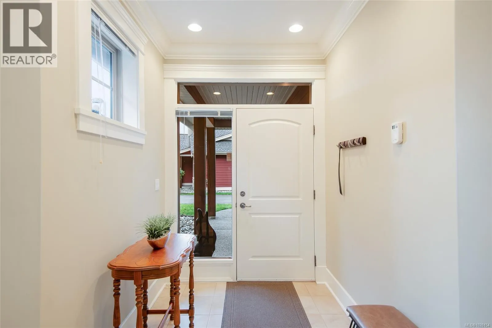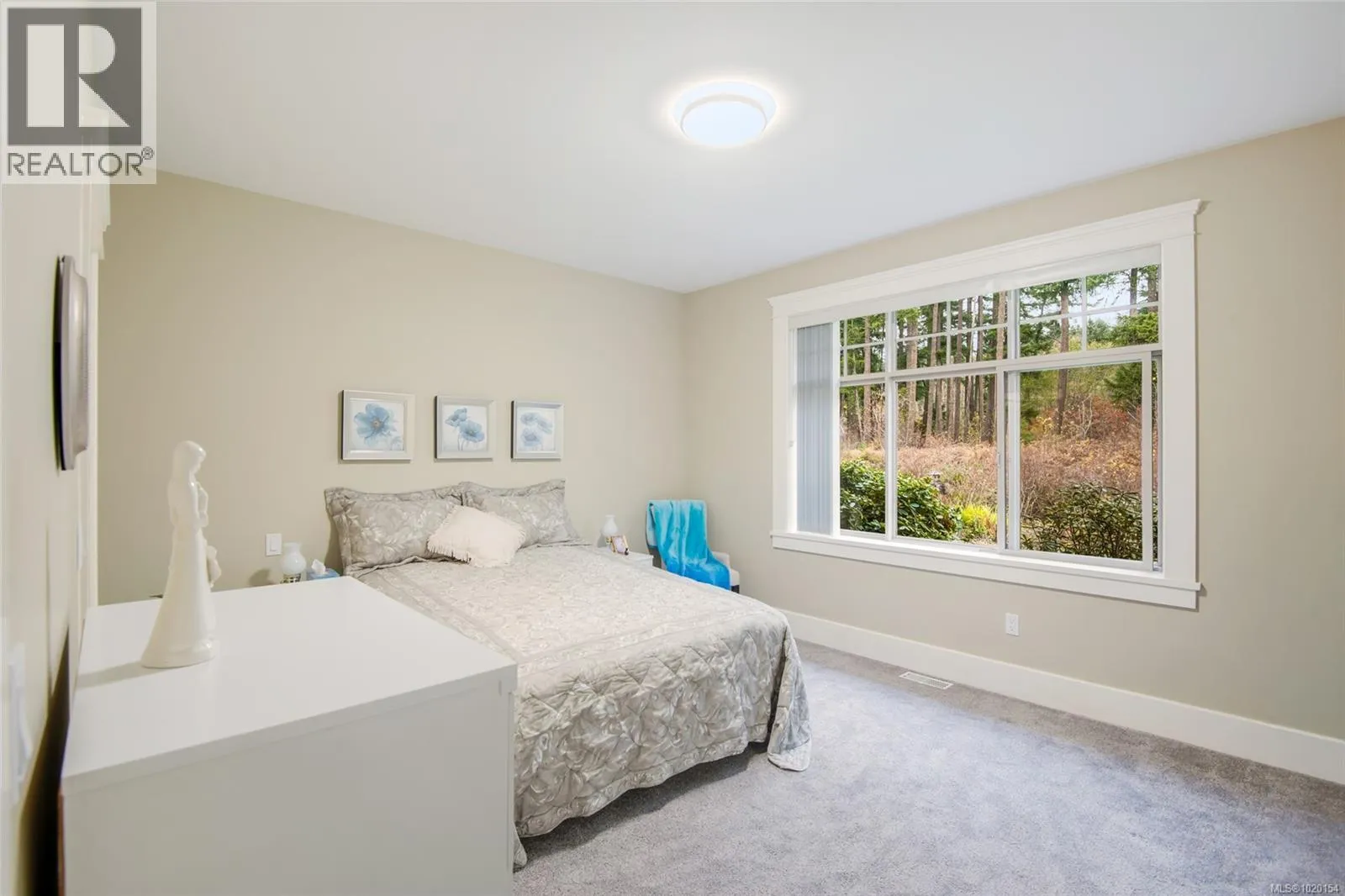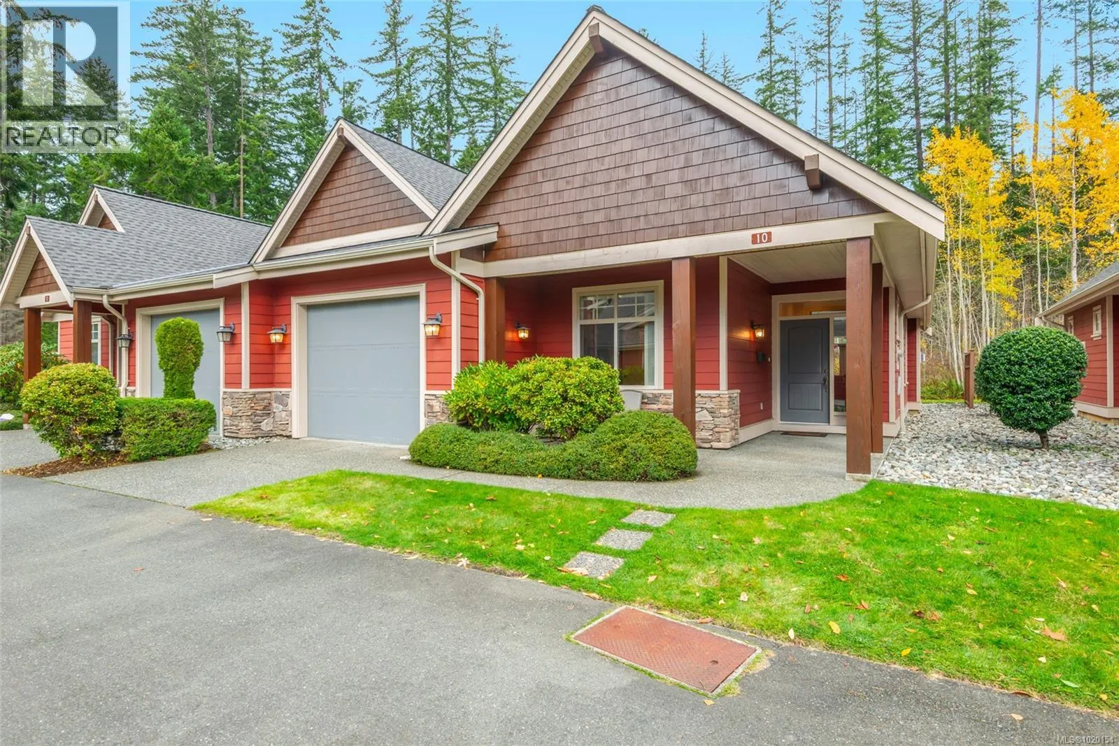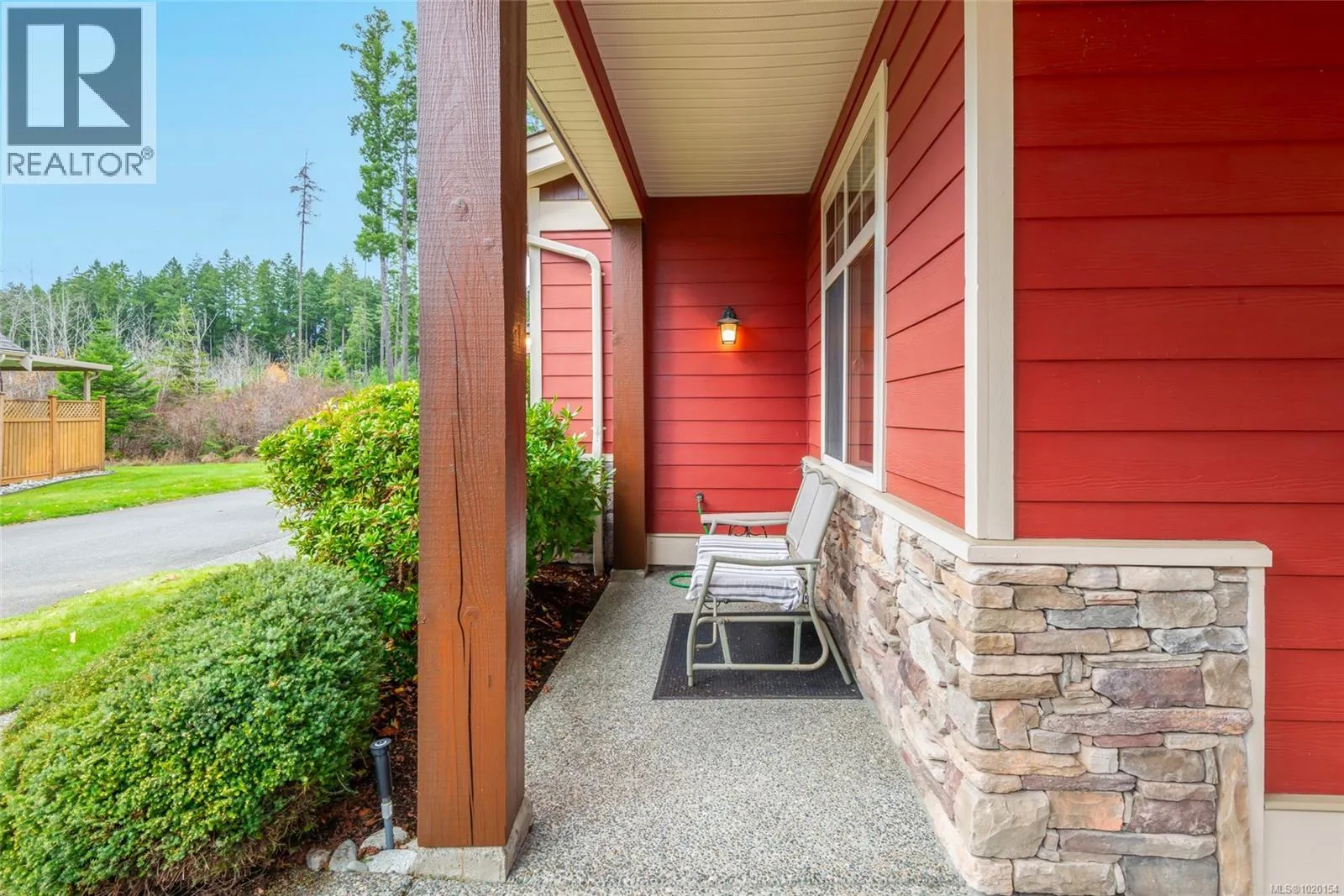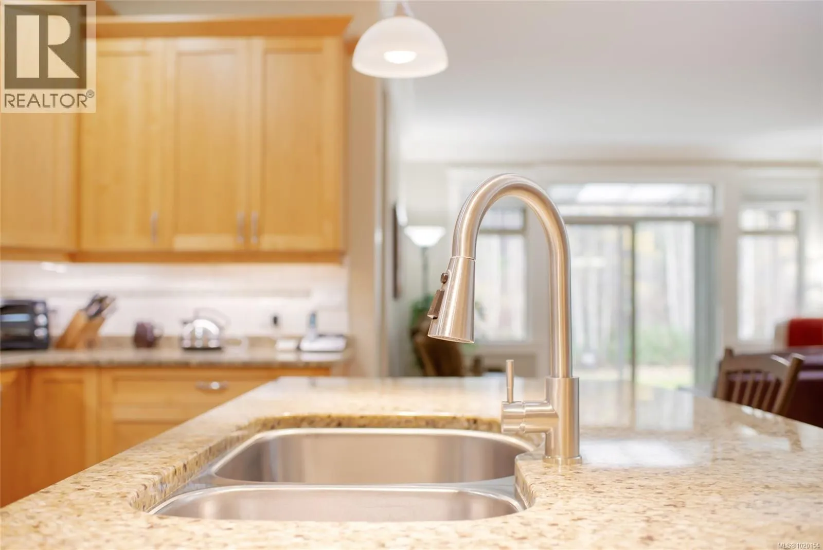 Tucked into a quiet cul-de-sac in College View Estates, this patio home offers calm, connection, and convenience in equal measure. Itâs the kind of place where neighbours wave hello and nature feels like part of the backyard - yet you're only minutes from the cityâs best amenities. Step inside and youâll feel it right away: the airy ease of 9-foot ceilings, and an open-concept layout that invites both relaxation and easy hosting. Expansive windows frame a forested backdrop, offering a daily view of birds and wildlife. Crown moulding and a natural gas fireplace add a touch of refinement, while the kitchen shines with custom shaker-style cabinets, granite countertops, and a generous island thatâs made for morning coffee or evening conversation. The main level is thoughtfully designed - the primary suite includes a walk-through closet and a 4-piece ensuite. A second bedroom and 3-piece bath offer space for guests or a home office. Thereâs also a full laundry room and a flexible dining area that feels ready for everything from quick bites to full dinner parties. Step outside to a covered patio and a tree-lined backyard - peaceful, private, and low-maintenance. The attached garage features a new automatic opener, and the home includes practical updates like a newer roof (2024), and a new hot water tank. This well-cared-for home is part of a friendly, well-maintained complex close to North Island College, Echo Pool, the MultiPlex, Bob Dailey Stadium, schools, shops, restaurants, and walking trails. Itâs been a place of comfort and connection - and now, itâs ready for whatâs next. Reach out to arrange a private viewing whenever youâre ready. (id:27476)