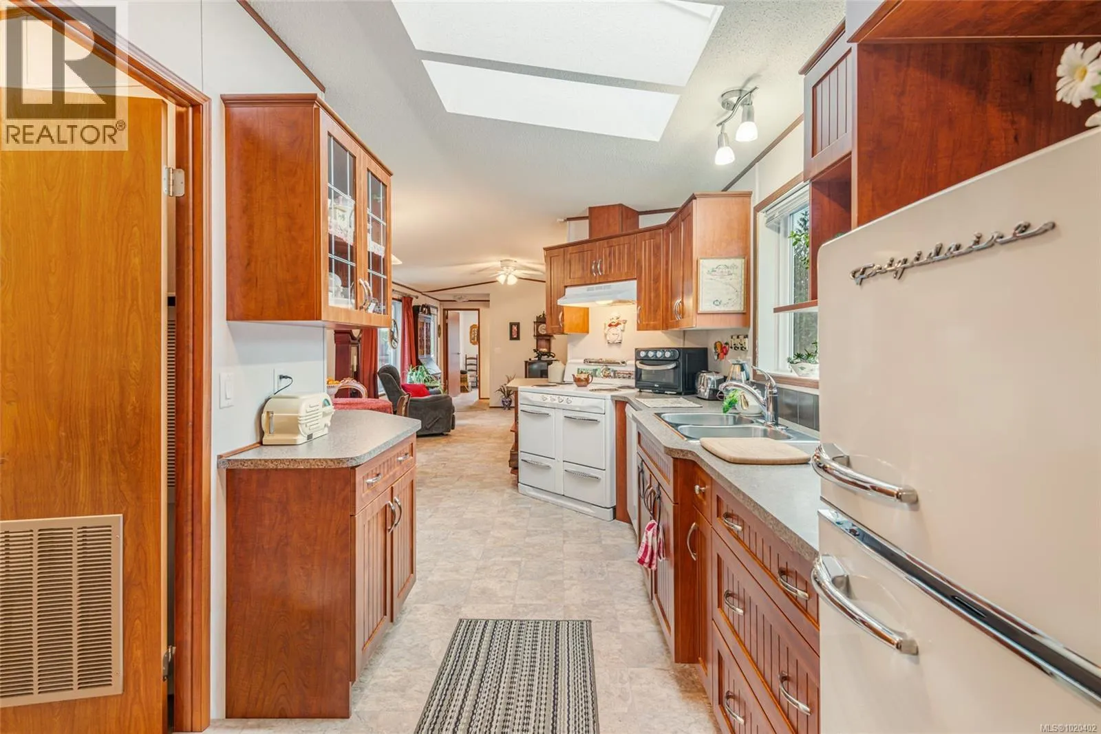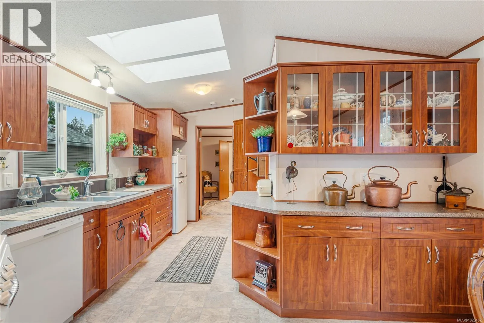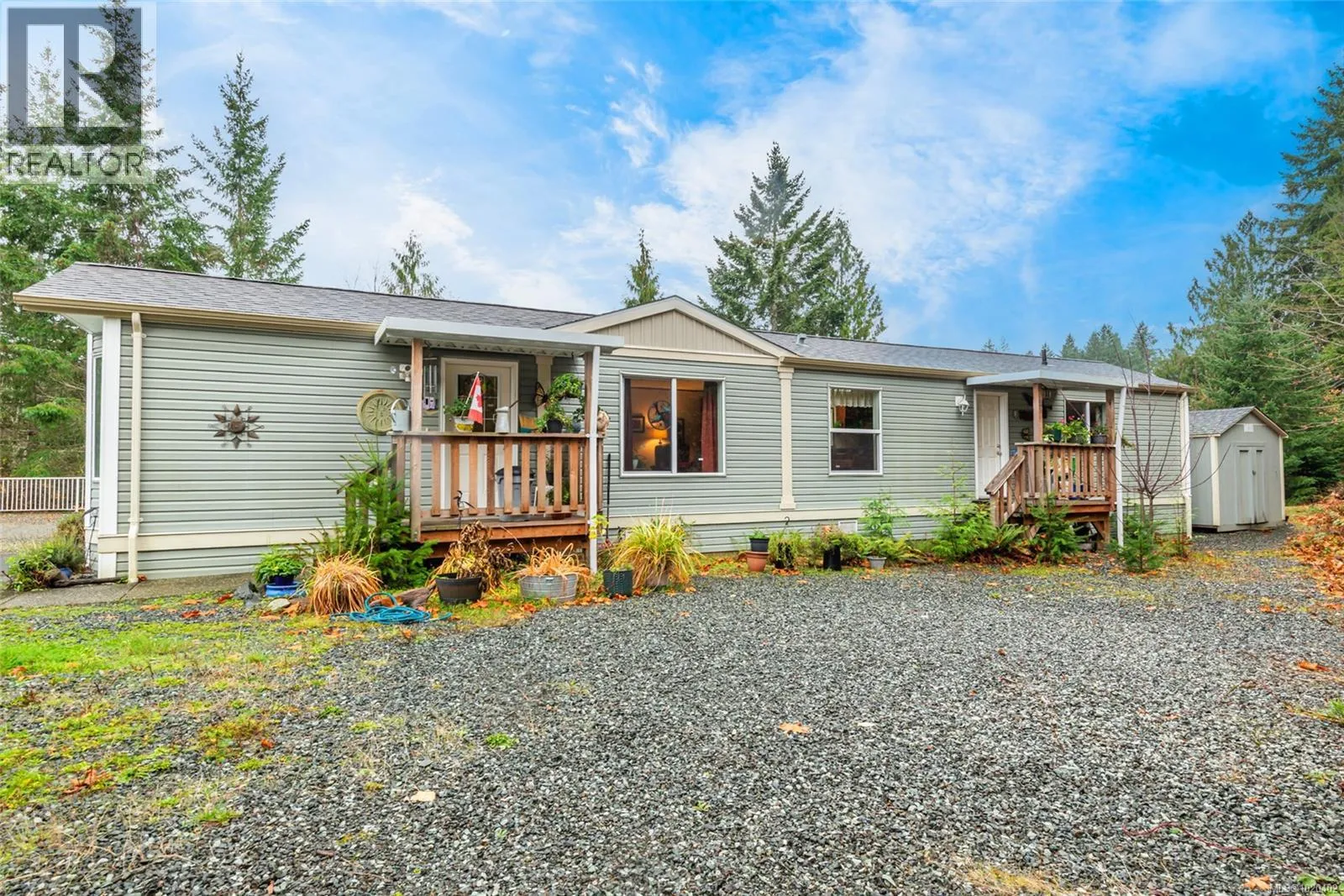 Welcome to a quiet slice of Sproat Lake living, where nature surrounds you and life slows to a more meaningful pace. Whether you're looking for a full-time residence or a weekend getaway, this 2014 open-concept manufactured home offers comfort, privacy, and charm near the shores of Sproat Lake. Step into the heart of the home: a bright and calming living room with vaulted ceilings and a view that invites you to exhale. The layout flows into a thoughtfully designed kitchen with warm shaker-style cabinetry, glass-front doors, pull-out drawers, and a walk-in pantry. New skylights add a soft wash of natural light, making everyday moments feel a little more special. The dining area, just off the kitchen, is perfect for casual meals or slow mornings with coffee. The homeâs smart layout places the primary bedroom and ensuite at one end, and the second bedroom and full bath at the other. The primary suite features a walk-in closet and a spacious 3-piece ensuite with a double shower. A full laundry room adds everyday ease. Outside, the private backyard backs onto lush forest, offering a sense of calm and connection to nature. A garden shed adds practical storage, while the front and back porches offer space to relax and enjoy the setting. Just a short walk away, residents enjoy exclusive gated access to a private Sproat Lake beach - complete with picnic tables, a swim dock, waterslide, and boat slip. Summers here are about soaking up the sun, and every season invites you to explore, paddle, or simply unwind. Surrounded by welcoming neighbours and equipped with 200amp service, this home is as practical as it is peaceful. If you're ready to embrace the Sproat Lake lifestyle, this special property is ready when you are. Reach out to arrange a private viewing whenever youâre ready. (id:27476)