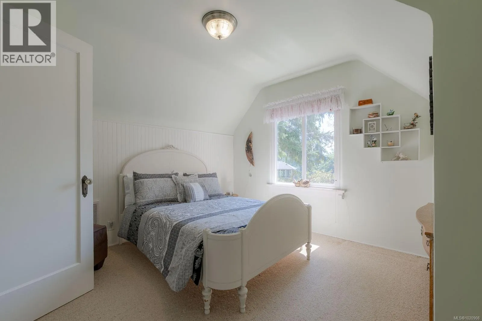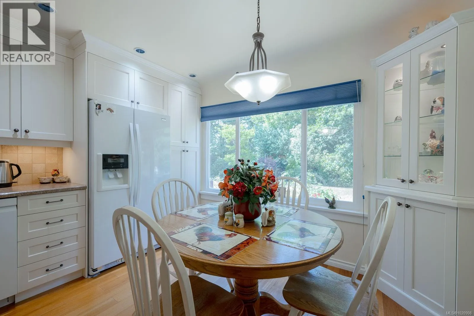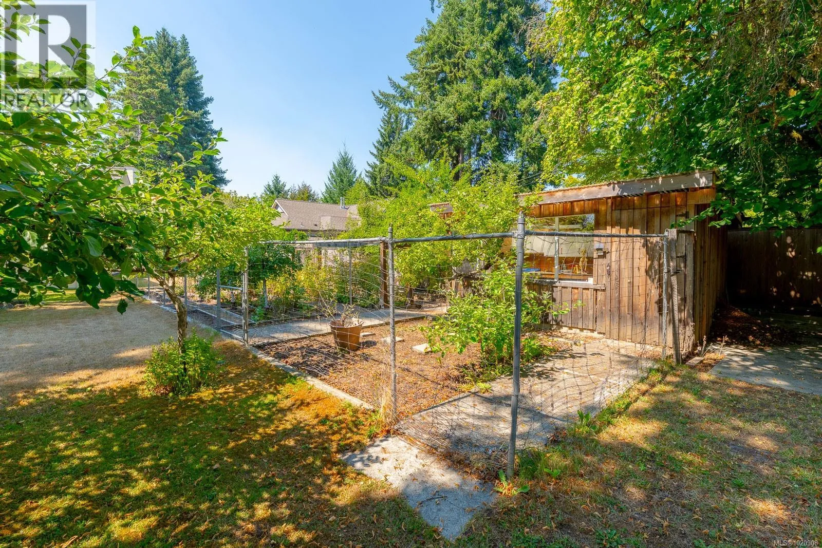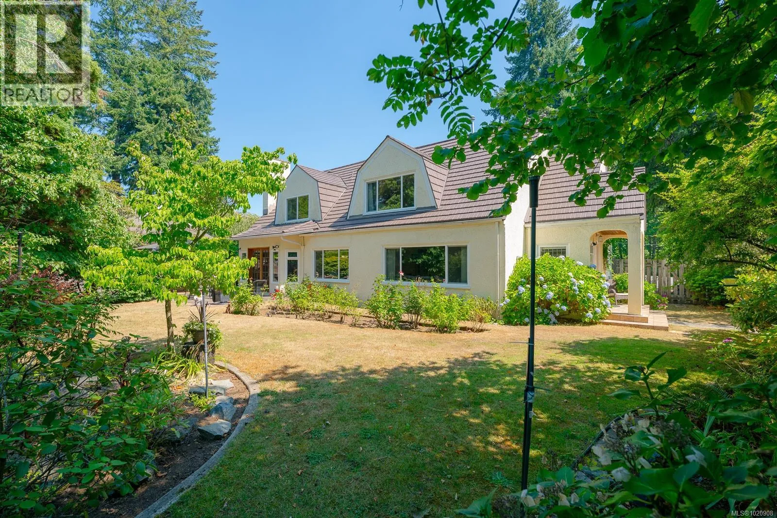 Charming and beautifully updated character home located on a quiet cul-de-sac, just steps from Roger Creek Park and the scenic Scott Kenny Trail. This .46-acre, partially fenced lot is a gardenerâs dream, featuring vibrant flowerbeds, productive vegetable gardens, mature fruit trees, a greenhouse, and garden shed. The spacious main floor includes a kitchen with eating area, formal dining room, cozy living and family roomsâeach with its own gas fireplaceâplus a bedroom, 4-piece bath, and laundry. Upstairs offers two bedrooms, a 2-piece bath, and a generous primary suite complete with ensuite and walk-in closet. The unfinished basement provides ample storage or potential for future development. Notable features include original fir floors, leaded glass windows, French doors, and a brand-new heat pump. This home perfectly blends classic charm with modern comforts in a peaceful, nature-filled setting. (id:27476)