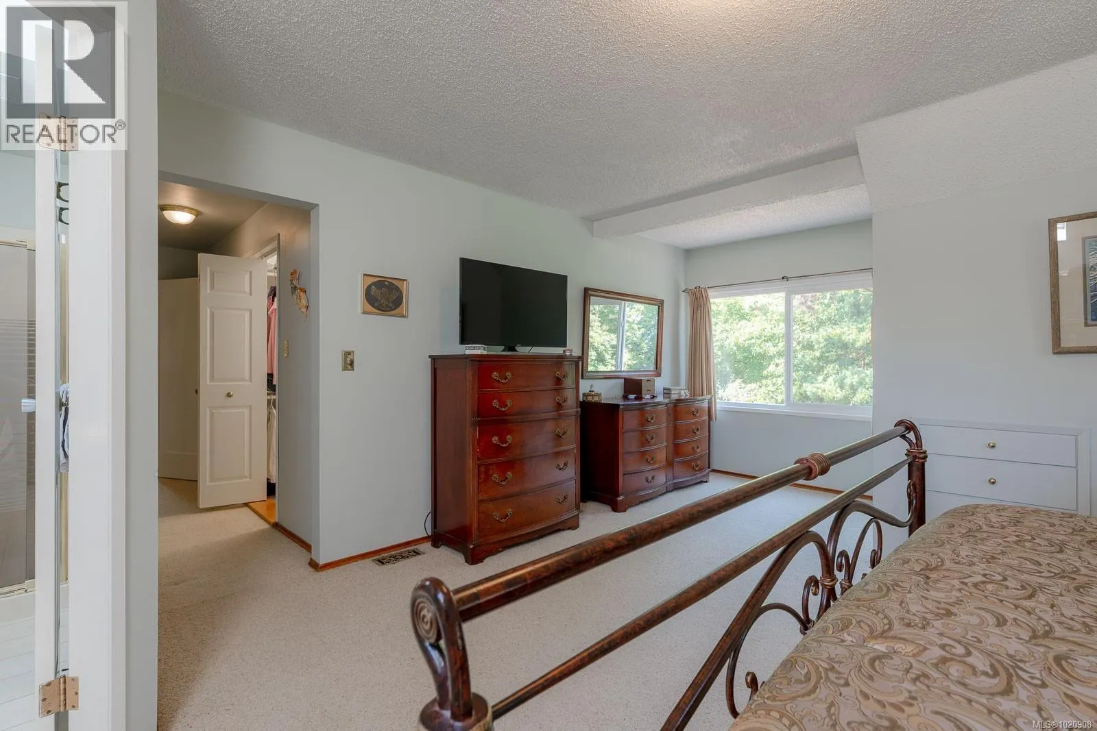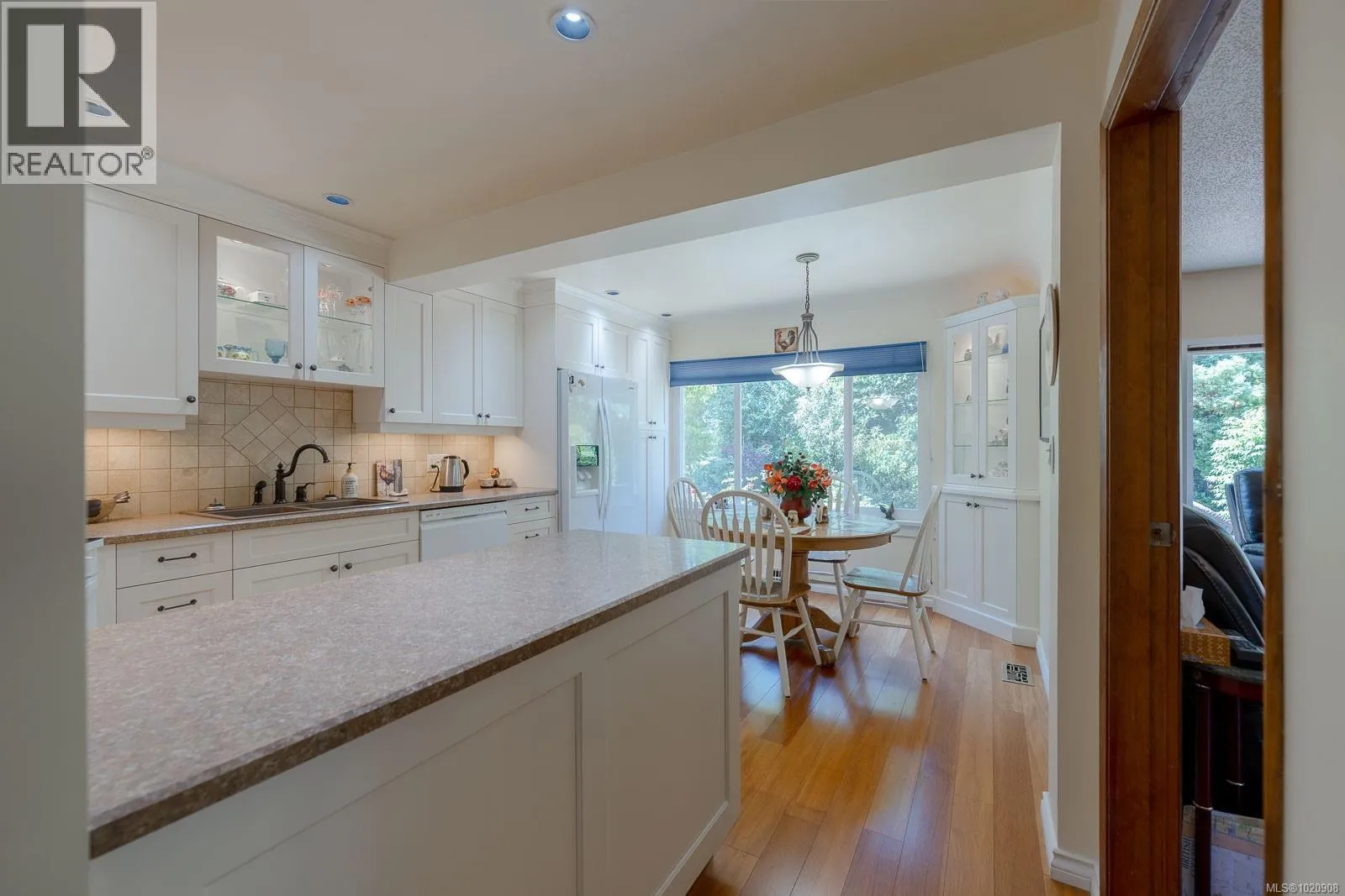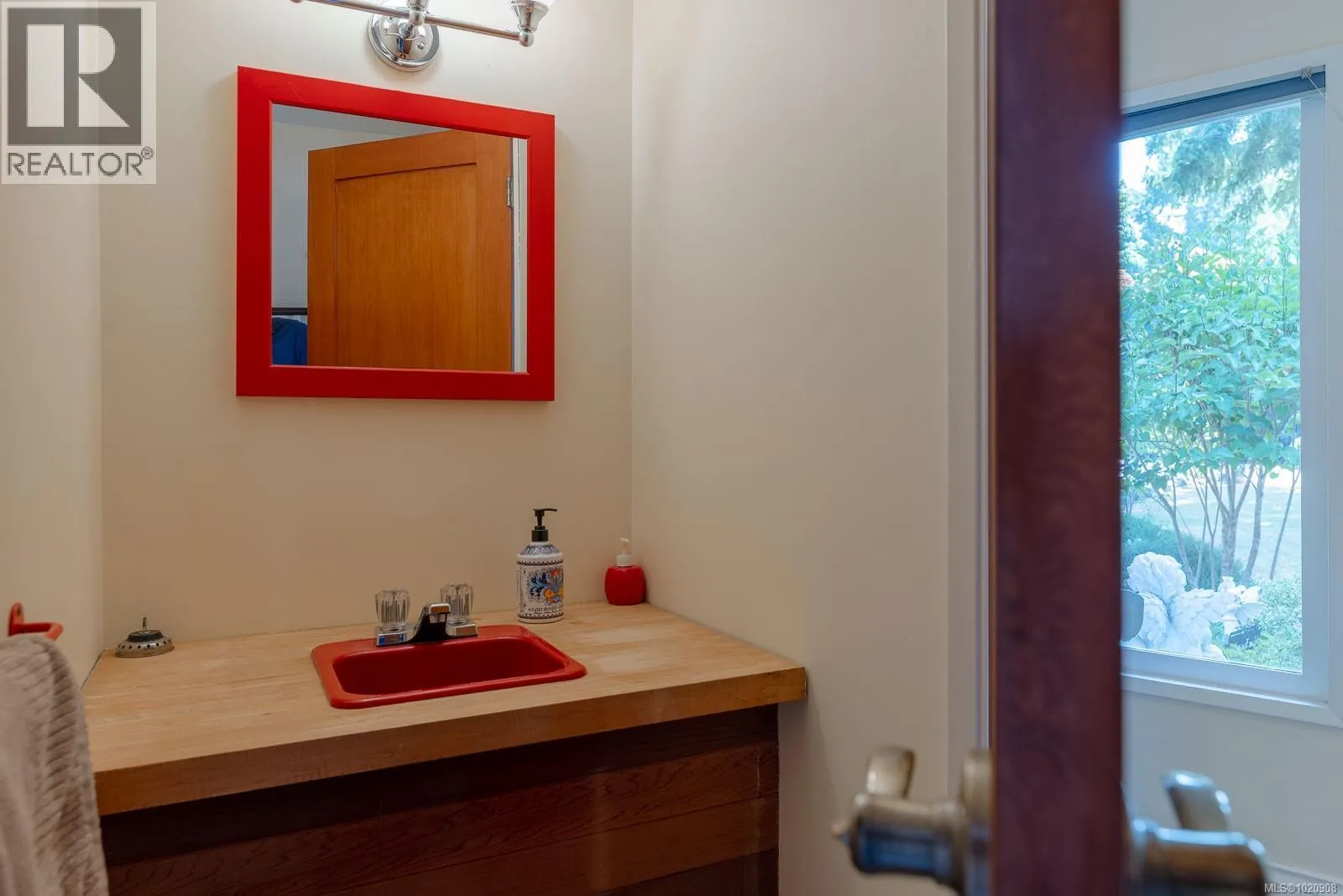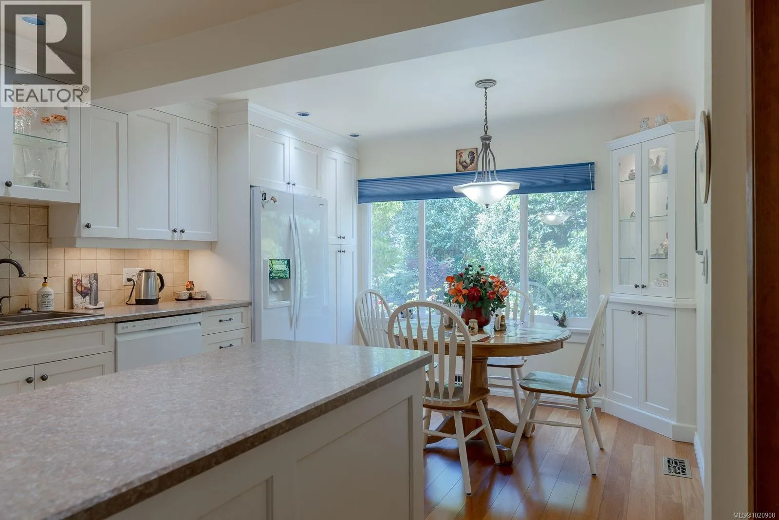 Charming and beautifully updated character home located on a quiet cul-de-sac, just steps from Roger Creek Park and the scenic Scott Kenny Trail. This .46-acre, partially fenced lot is a gardenerâs dream, featuring vibrant flowerbeds, productive vegetable gardens, mature fruit trees, a greenhouse, and garden shed. The spacious main floor includes a kitchen with eating area, formal dining room, cozy living and family roomsâeach with its own gas fireplaceâplus a bedroom, 4-piece bath, and laundry. Upstairs offers two bedrooms, a 2-piece bath, and a generous primary suite complete with ensuite and walk-in closet. The unfinished basement provides ample storage or potential for future development. Notable features include original fir floors, leaded glass windows, French doors, and a brand-new heat pump. This home perfectly blends classic charm with modern comforts in a peaceful, nature-filled setting. (id:27476)