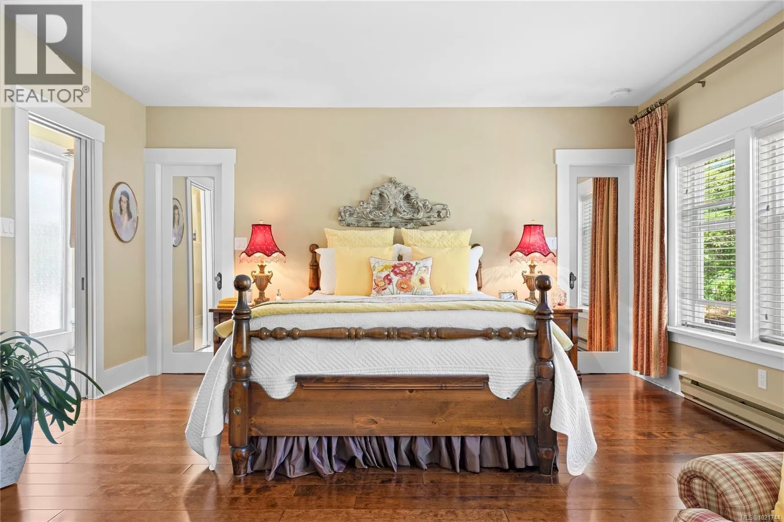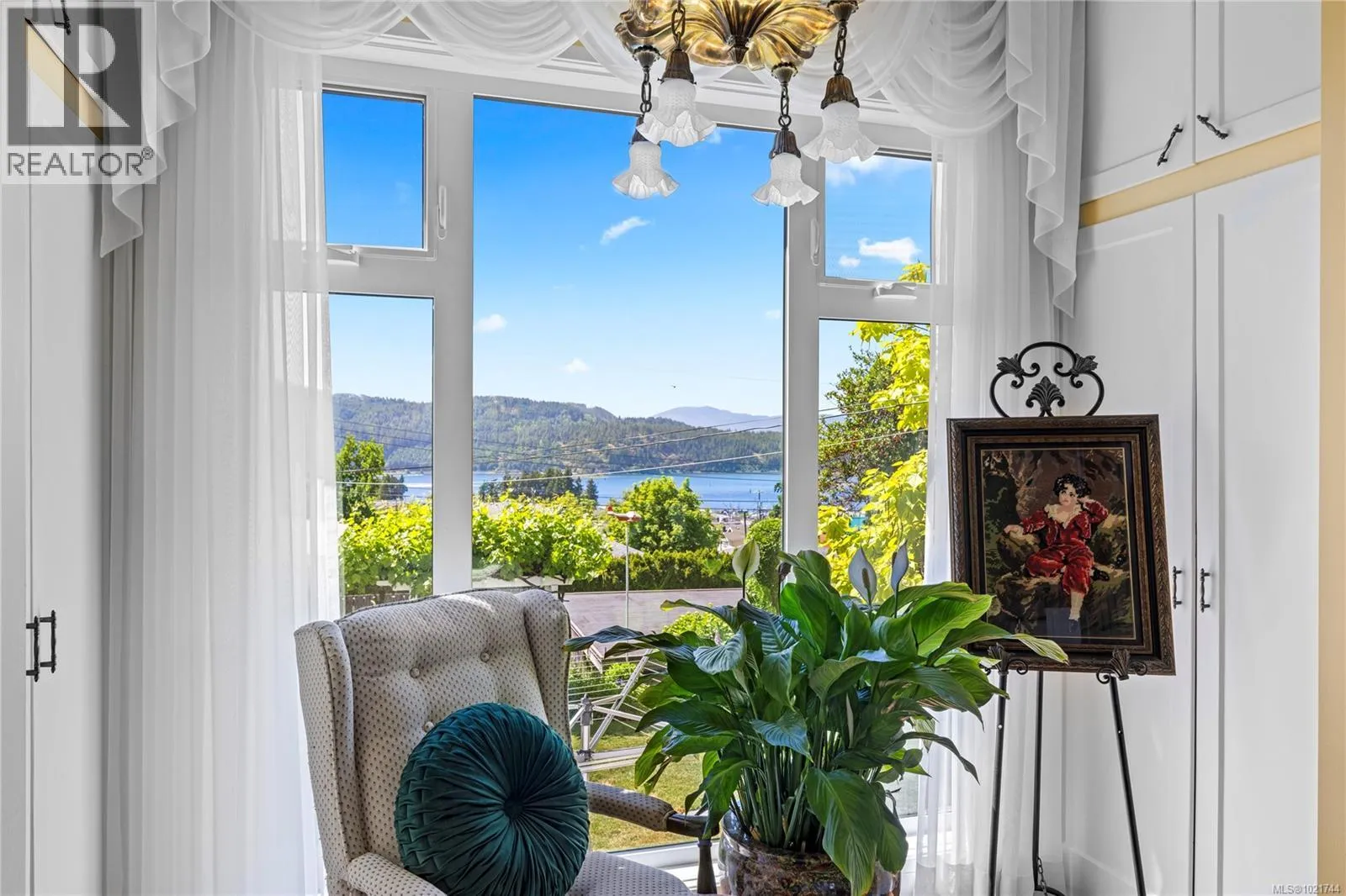 METICULOUSLY MAINTAINED CHARACTER HOME - offering stunning water views and a perfect blend of charm and modern updates. The main floor features a spacious primary bedroom complete with an en suite bathroom, providing a serene retreat. Enjoy gatherings in the formal living room with its inviting wood-burning fireplace, or retreat to the well-appointed study. The updated kitchen is a culinary delight, complemented by a convenient powder room. Venture upstairs to discover three additional bedrooms, along with a full bathroom perfect for family and guests. The lower level boasts a large recreation room, an extra bathroom, and ample storage space, ensuring plenty of room for all your needs. Step outside to the beautifully landscaped gardens in the fully fenced yard, where youâll find 2 detached shop/garages and a charming tea house, perfect for relaxation or entertaining. This home has seen many upgrades, including a durable metal roof, energy-efficient vinyl windows, and a heat pump for year-round comfort. Donât miss the opportunity to make this exceptional property your own! (id:27476)