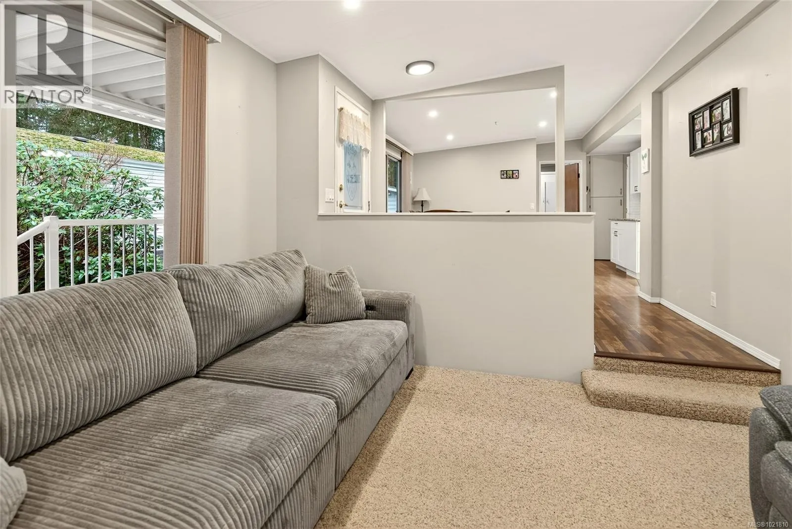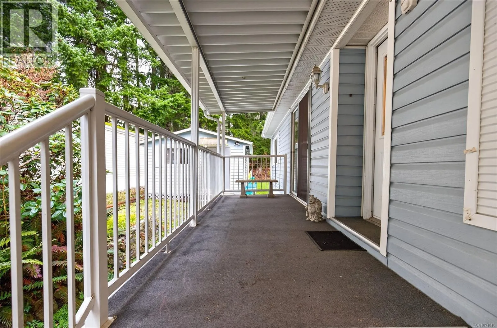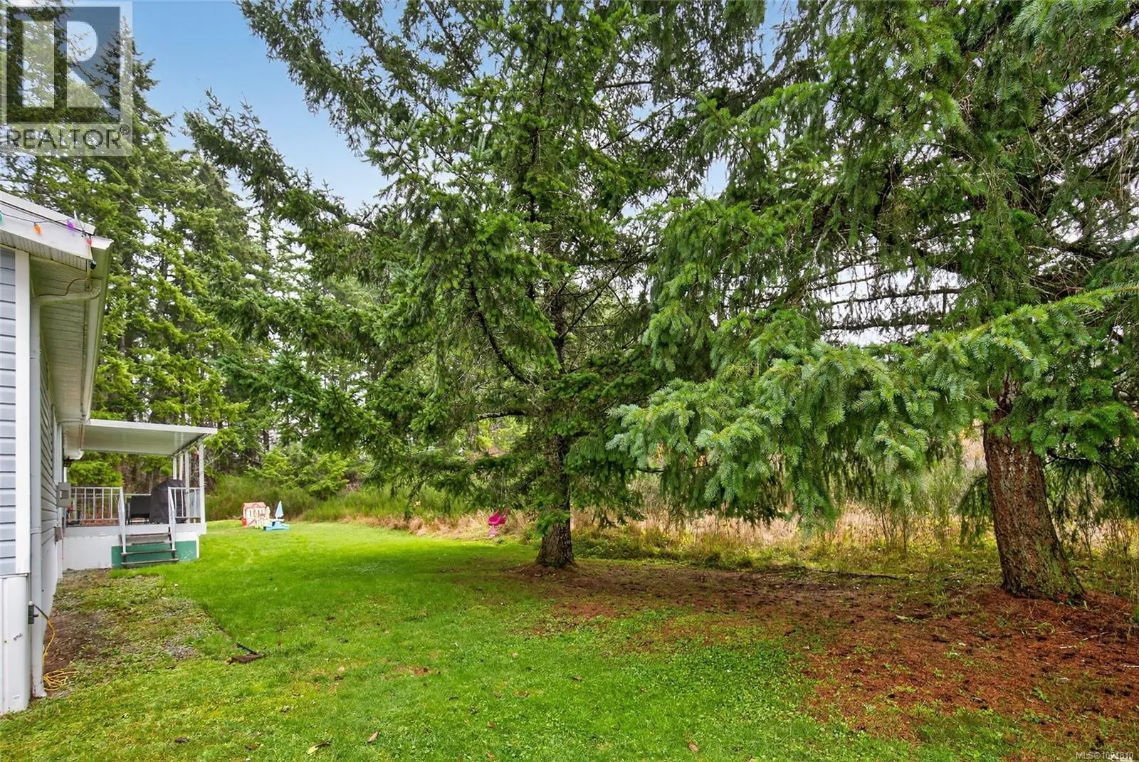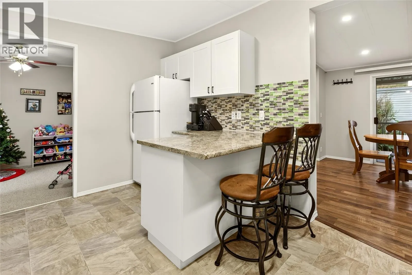 Great location! This double-wide manufactured home sits at the end of a quiet no-thru road in one of the Alberni Valleyâs most sought-after family friendly parks. Inside, the home offers a bright and inviting layout featuring a modern kitchen with a breakfast bar, a spacious living room with vaulted ceilings, a dedicated dining area with sliding glass doors to one of the two covered decks, a primary bedroom with a 5-piece ensuite, accompanied by two additional bedrooms, an updated modern bathroom, and a laundry room with access to the large covered back deck. A 14' x 18' detached workshop adds excellent space for projects, storage, or hobbies. Year-round comfort is provided by the updated heat pump(2024). This is a well-kept home in an excellent location, an opportunity you wonât want to miss. (id:27476)