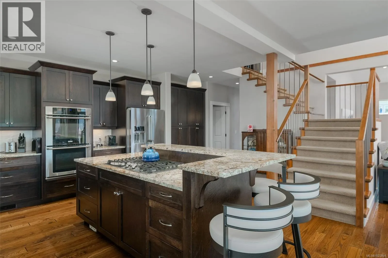 Views! This custom built 2011 home has a wrap around porch that let you take in the water/ mountain views. Inside you will find and open concept kitchen, dining and living area with a cozy fireplace and a full bath and bedroom on the main floor. Walking up the oversized staircase takes you to the Primary bedroom with even better views! complete with large full ensuite and walkin closet. There is also another storage room that could be an additional bedroom. Downstairs has a rec room with wet bar, bathroom, bedroom and sauna. enjoy your easy care back yard in the hottub with views, back patio area and large detached garage. Almost all appliances have been replaced in the last year. This home has hot water on demand and a heat pump for those hot summer days. Rent to own is an option! (id:27476)