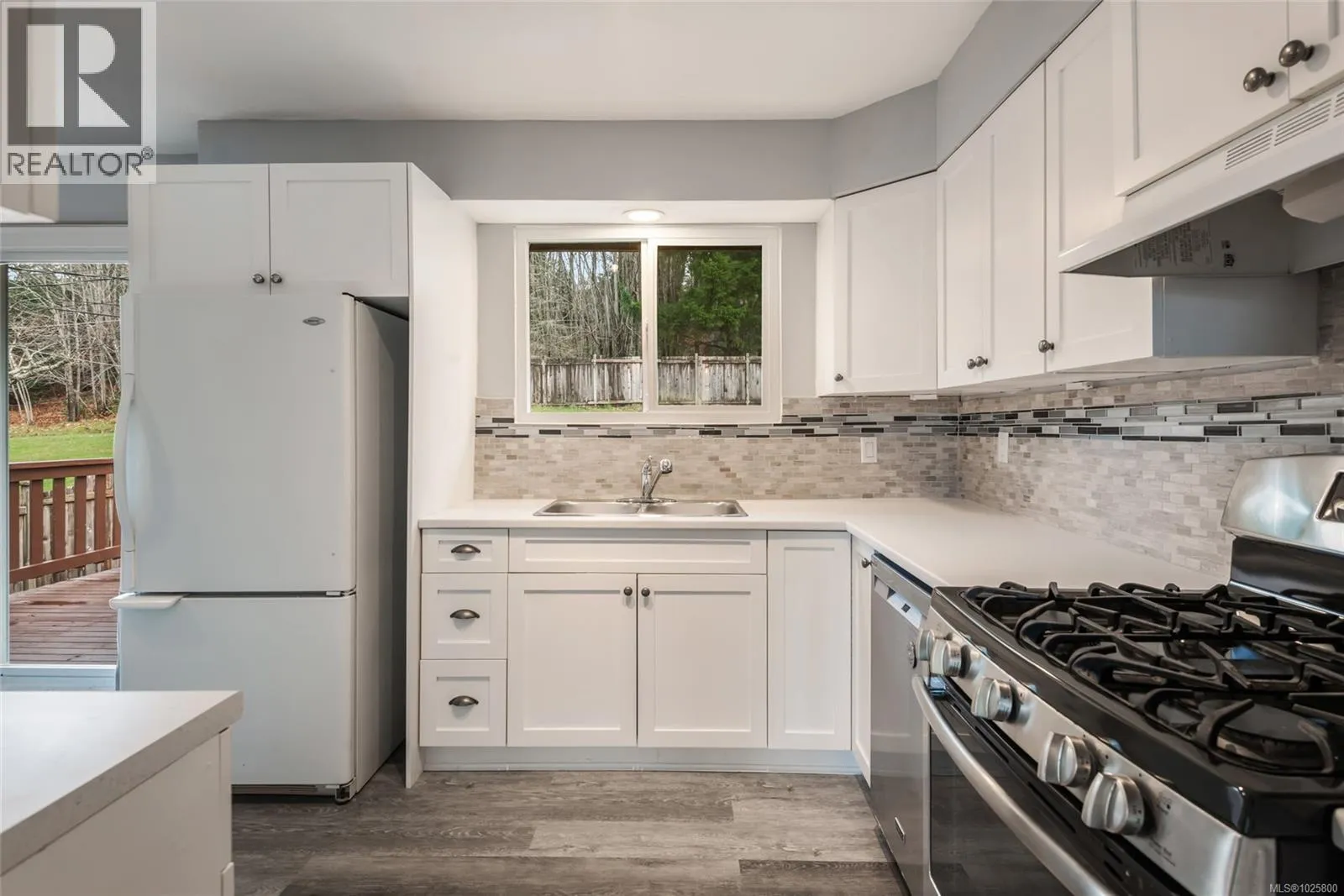 Set in a sought-after, quiet pocket of South Alberni, this home captures beautiful mountain views and the kind of neighbourhood setting where life feels both peaceful and connected. Step inside and youâre welcomed into an open living room anchored by a natural gas fireplace and a large west-facing window that fills the space with afternoon light. The layout flows naturally into the adjoining eating area and updated kitchen, creating a central gathering place designed for everyday living and easy entertaining. The modern kitchen has been thoughtfully updated with new shaker-style cabinetry, contemporary backsplash, and updated countertops. A natural gas stove adds both performance and efficiency. From the eating area, step out to a newly painted deck overlooking the fully fenced backyard = ideal for outdoor dining, gardening, or simply enjoying the quiet surroundings. The main level continues with a well-appointed primary bedroom featuring an updated 2-piece ensuite, two additional bedrooms, and a full bathroom with new tile floors and an updated vanity. Laundry is conveniently located on this level for daily ease. New vinyl thermal windows, fresh paint, and new flooring throughout add to the homeâs refreshed feel. Downstairs offers a 1-bedroom in-law suite with its own separate laundry. The spacious living room includes another natural gas fireplace, while the generous kitchen provides ample storage and pleasant backyard views. A full bathroom and comfortable bedroom complete this flexible living space. Outside, the fully fenced yard includes laneway access, a carport with attached enclosed workshop space, and plenty of parking. Located close to amenities, schools, recreation, shopping, restaurants, and trails - including the Alberni Inlet Trail and Maquinna Trails - this is a home with space and flexibility that supports both convenience and lifestyle. Reach out any time to arrange your private viewing. (id:27476)
