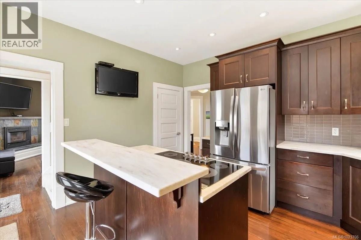 Welcome to this stunning 1908 character home, where timeless heritage charm meets thoughtful modern updates. Situated on a quiet South Port street with beautiful views, this lovingly maintained property offers the perfect blend of old-world elegance and contemporary comfort. The main floor showcases rich hardwood flooring, a formal living room with a cozy gas fireplace, and a beautifully updated kitchen featuring Corian countertops and modern appliances. A separate formal dining room provides the ideal setting for entertaining, while the fully renovated main bathroom impresses with a spacious glass walk-in shower and a heated tile floor. Upstairs, youâll find brand new carpet, three generously sized bedrooms plus a charming den tucked inside the homeâs distinctive turret â a truly unique space. The upper-level bathroom maintains its historic appeal with an original iron tub, preserving the character that makes this home so special and plumbing in place for a shower if desired. The lower level adds incredible versatility, offering a family room, large exercise space, laundry area, and ample storage. With separate access and suite potential, thereâs exciting opportunity for extended family living or added income. Step outside to enjoy the beautifully landscaped yard, a private deck with sleek glass railings, and a hot tub included for year-round relaxation. A major highlight is the powered and drywalled 24x24 detached shop with convenient back alley access â perfect for hobbyists, storage, or workspace needs. Additional upgrades include updated electrical, plumbing and windows, main floor insulation, 200 amp service, gas furnace, newer hot water tank, a heat pump for year-round efficiency, and a brand-new roof to be installed and paid for by the sellers. If youâve been searching for historic character with the peace of mind of modern updates, this exceptional home delivers. Book your private showing today â this South Port gem wonât last long! (id:27476)