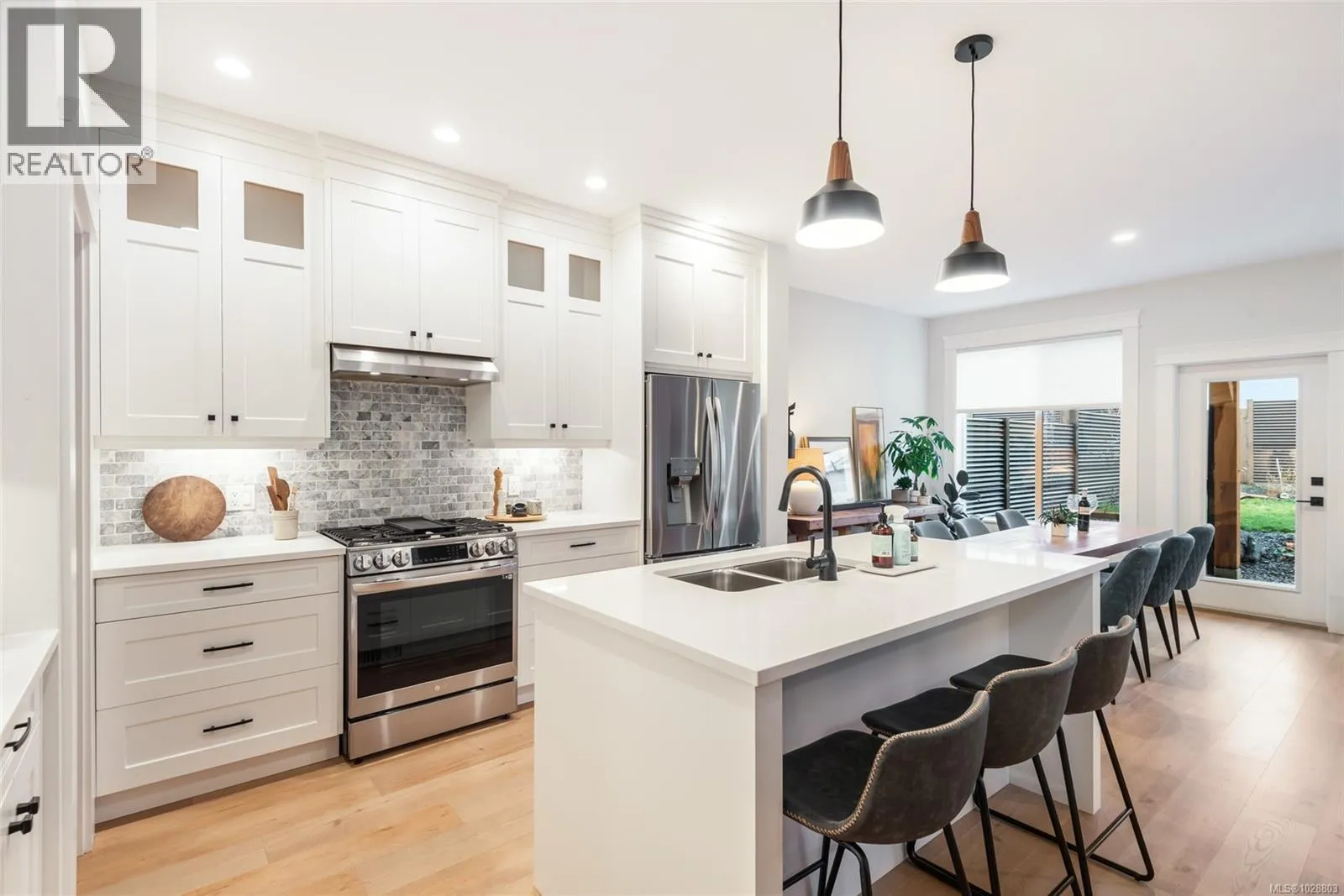 Not every home makes everyday life feel this easy. Set in a quiet, neighbourly location, this contemporary townhome offers the kind of balance that is hard to find - modern finishings, practical space, and walkable access to the places you use most. As the largest of four units in a small, self-managed strata, this 2022-built home feels both well-considered and easy to live in. On the main level, the open-concept kitchen, dining, and living area creates a bright, connected space for busy mornings, relaxed evenings, and everything in between. The kitchen is designed for real life, with quartz countertops, under-cabinet lighting, custom pullouts, tiled backsplash, a walk-in pantry, island seating, and a gas range. Just off the living room, glass doors open to a covered concrete patio and a fully fenced, low-maintenance backyard with black metal privacy fencing, fruit trees including fig, cherry, peach, and pomegranate, an herb garden, and a dedicated firepit area. Itâs the kind of outdoor space that works just as well for quiet coffee as it does for dinner with friends. Upstairs, the spacious primary suite offers a calm place to recharge, complete with a large walk-in closet and a 5-piece ensuite with tiled shower, soaker tub, dual vanity, and quartz counters. Two additional bedrooms, a full bathroom, and a conveniently located laundry room keep daily routines simple. A flexible sitting area adds even more versatility, whether you need a home office, reading nook, or play space. Thoughtful features throughout include a heat pump, a remarkably quiet interior, an attached single-car garage, and stair-access crawl space for extra storage. Good homes look nice. Great homes make life run better. All of this is set within walking distance of shopping, restaurants, uptown amenities, schools, recreation, and nature trails. A modern, well-cared-for home in a highly convenient location. Reach out anytime to arrange your private viewing. (id:27476)