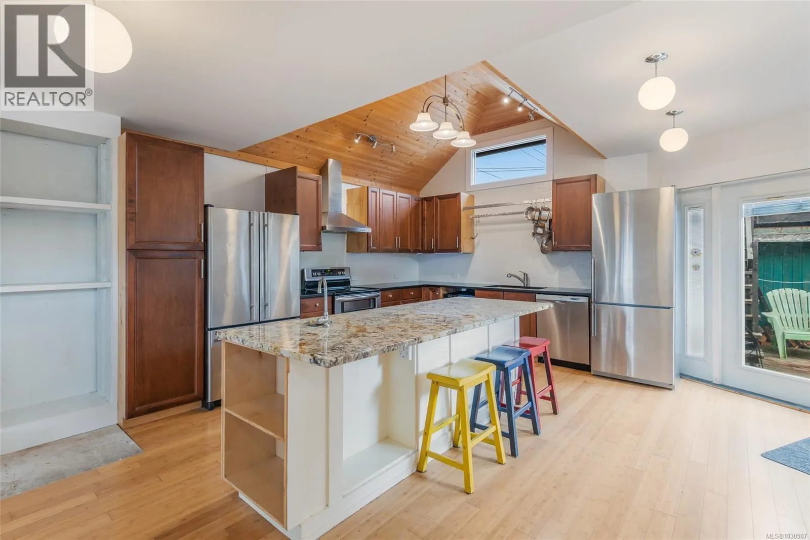 In the heart of Port Alberni, this rare mixed commercial/residential opportunity offers C1 Neighbourhood Commercial zoning in a highly accessible location with prominent frontage and street exposure on Burde Street. With three separate commercial spaces offering a combined 1,200 sqft of floor area, the possibilities are remarkably broad for an artist studio, community care facility, medical service, office, personal service, professional service, restaurant excluding drive-through, or retail use. Set in a unique mixed residential setting with no other businesses immediately surrounding it, this property provides visibility without feeling overbuilt. Street parking is available, and recent upgrades to the water and storm drain infrastructure on Burde Street, along with pedestrian-friendly surface improvements, further enhance the long-term appeal of the location. As a major added benefit, the attached residence creates exceptional live-work flexibility. Spanning more than 2,900 sqft across three levels, the home includes 3 bedrooms, 2 dens, and 3 bathrooms. The updated open-concept kitchen features a gas stove and granite-topped island, while plenty of skylights bring impressive natural light throughout. The large primary suite includes an updated ensuite with a custom walk-in shower and skylight, and a newer metal roof adds practical peace of mind. Outside, the largest commercial space has access to its own fenced yard area, opening the door to a wide range of possible business or storage uses. For buyers seeking a property that combines income potential, operational flexibility, and substantial living space, this is a standout opportunity in a growing part of the city. Explore the possibilities and imagine how your business and lifestyle could come together here. Reach out any time to arrange your private viewing. (id:27476)