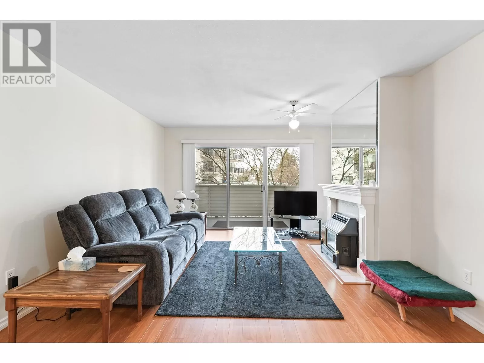 Spacious & Comfortable 2 Bed 2 Full Bath unit. Freshly painted throughout this wheelchair-accessible unit boasts over 1,000 square ft of living space in a quiet 15-unit building. Features a large living room with gas fireplace, separate dining area, oversized covered patio, in-suite laundry, and huge 11x5 in suite storage room. Primary bedroom fits a king bed, has a walk-in closet and ensuite. Prime location-walking distance to West Coast Express, SkyTrain, transit, schools, shopping, and Lions Park. Secure underground parking and common room for gatherings. Long-time residents with a strata that takes pride in maintaining the property. Investment opportunity - OPEN HOUSE NOV 2ND 1-3PM (id:27476)