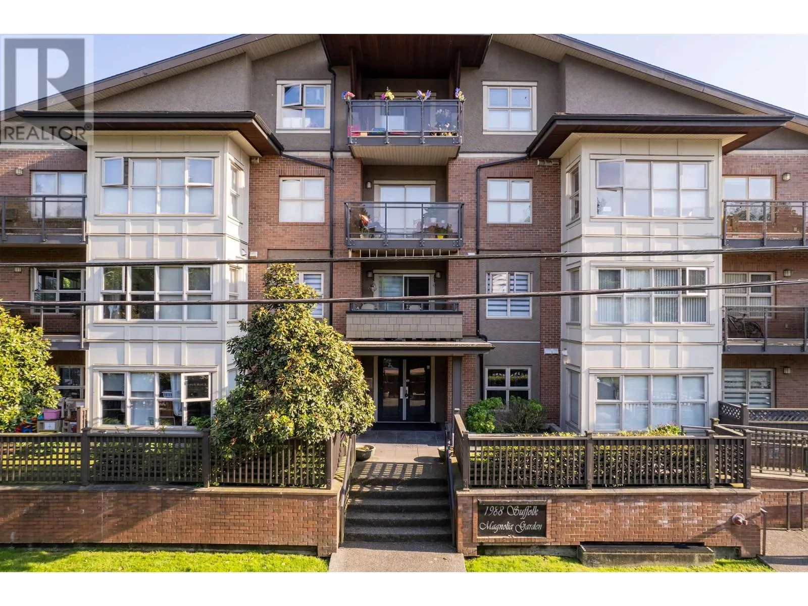 Welcome to Magnolia Gardens! Bright and spacious 2-bedroom + den corner unit with updated Zebra blinds, stainless steel appliances, upgraded washer/dryer, and a cozy fireplace. Enjoy a 320 sq. ft. wrap-around covered deck-great for relaxing or entertaining. Features 9' ceilings, laminate floors, and a stylish Maple kitchen with lots of natural light. Located in desirable Glenwood, close to schools, shopping, Coquitlam Centre, trails, transit, and the West Coast Express. Includes 1 parking and storage locker. Priced to Sell - Motivated Seller! (id:27476)
