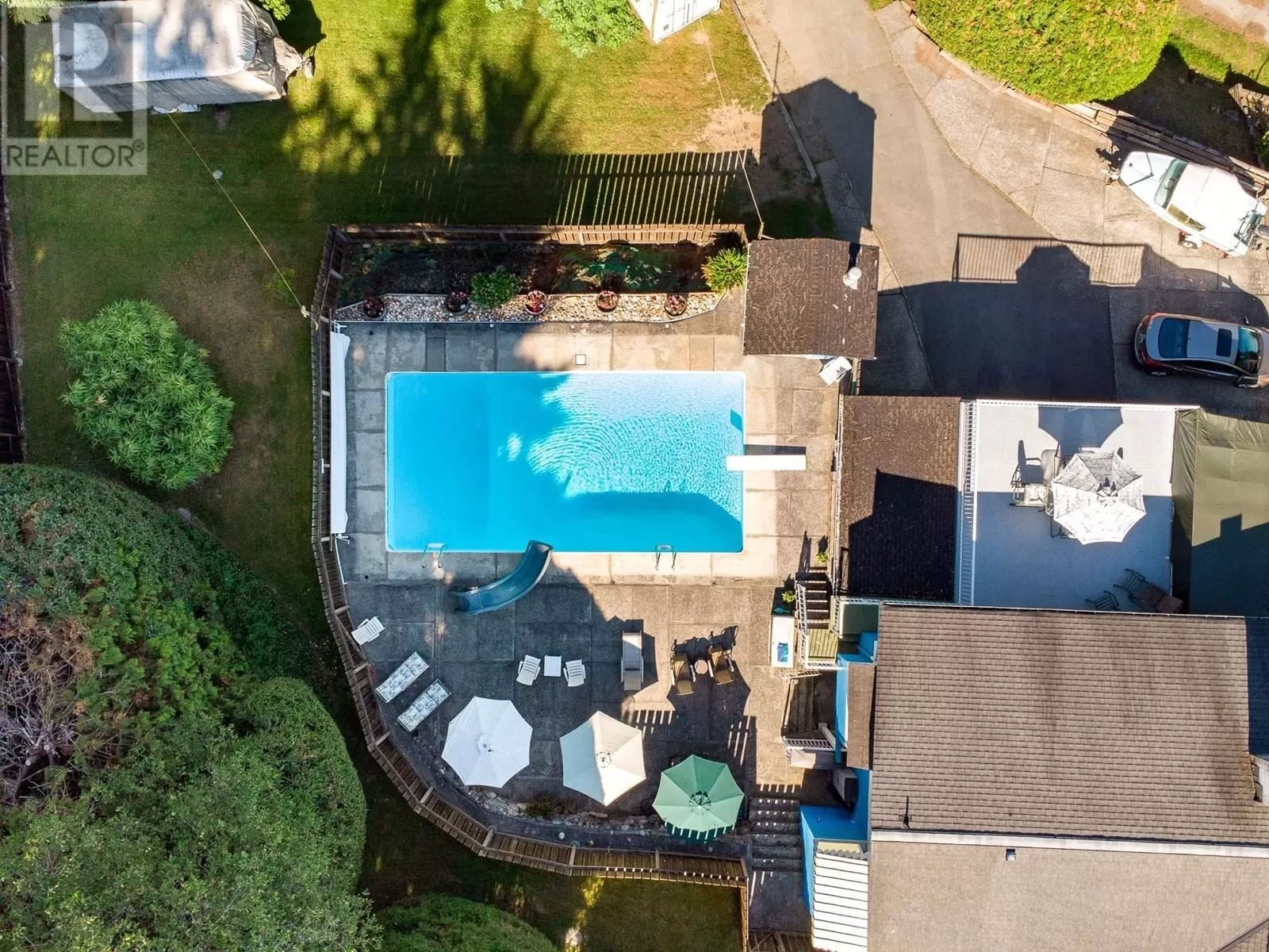 HOME WITH POOL on a HUGE LOT! Discover this rare opportunity to own an incredible home situated on one of the largest lots available in Port Coquitlam, nearly HALF AN ACRE with lane access and stunning views of Mt. Baker, Washington! Proudly offered for the first time ever by the original owners, this home has been meticulously maintained and is full of potential. Step outside and enjoy a heated POOL, a massive sun deck recently resurfaced for your outdoor gatherings, and an expansive yard with endless possibilities. The home also features two fireplaces (gas upstairs and wood-burning downstairs), a spacious layout. The lower level offers easy suite potential with two separate entrances, making it ideal for extended family or as a mortgage helper. INVESTORS AND DEVELOPERS please check with the City for development potential! Call today. (id:27476)