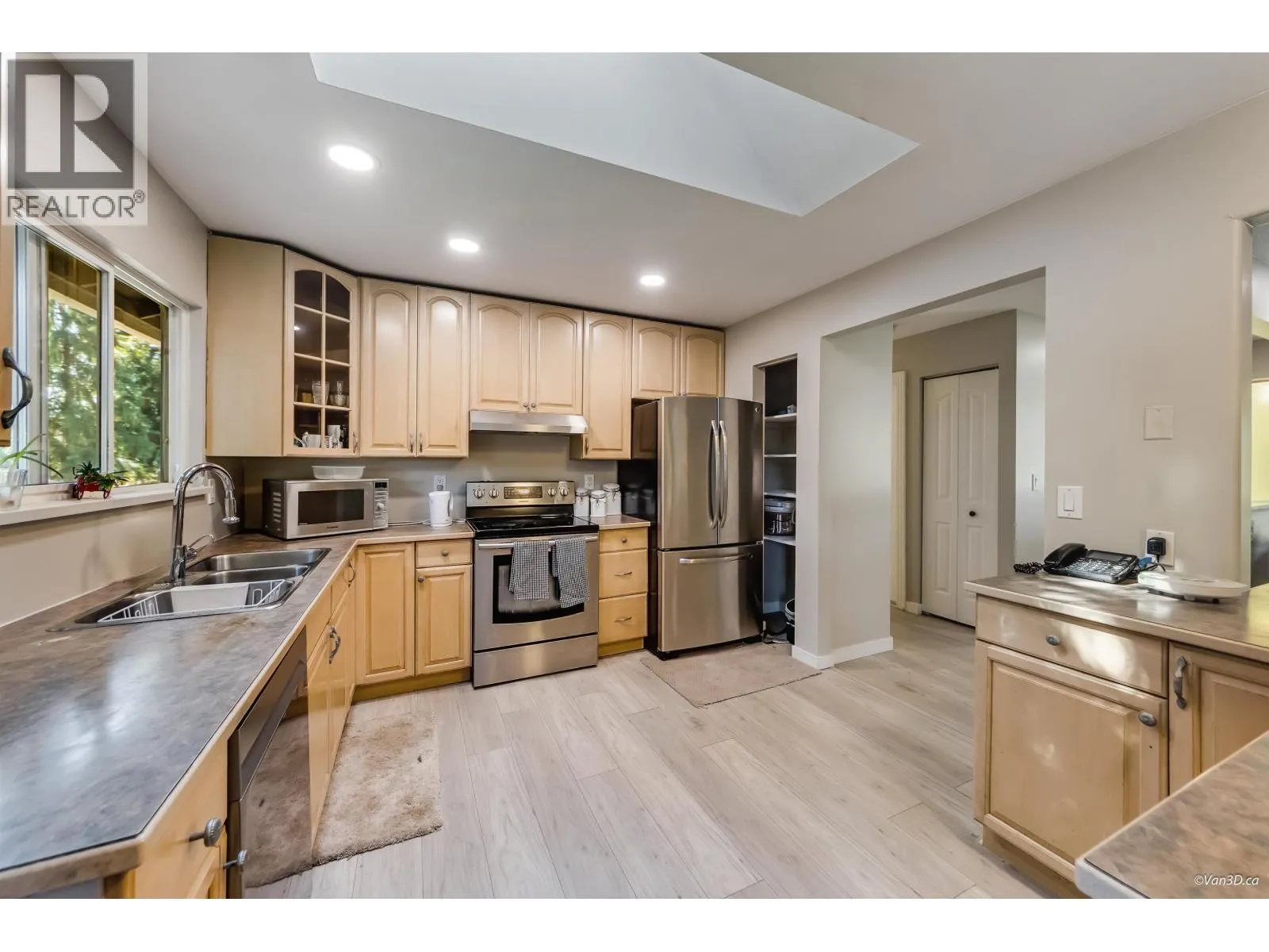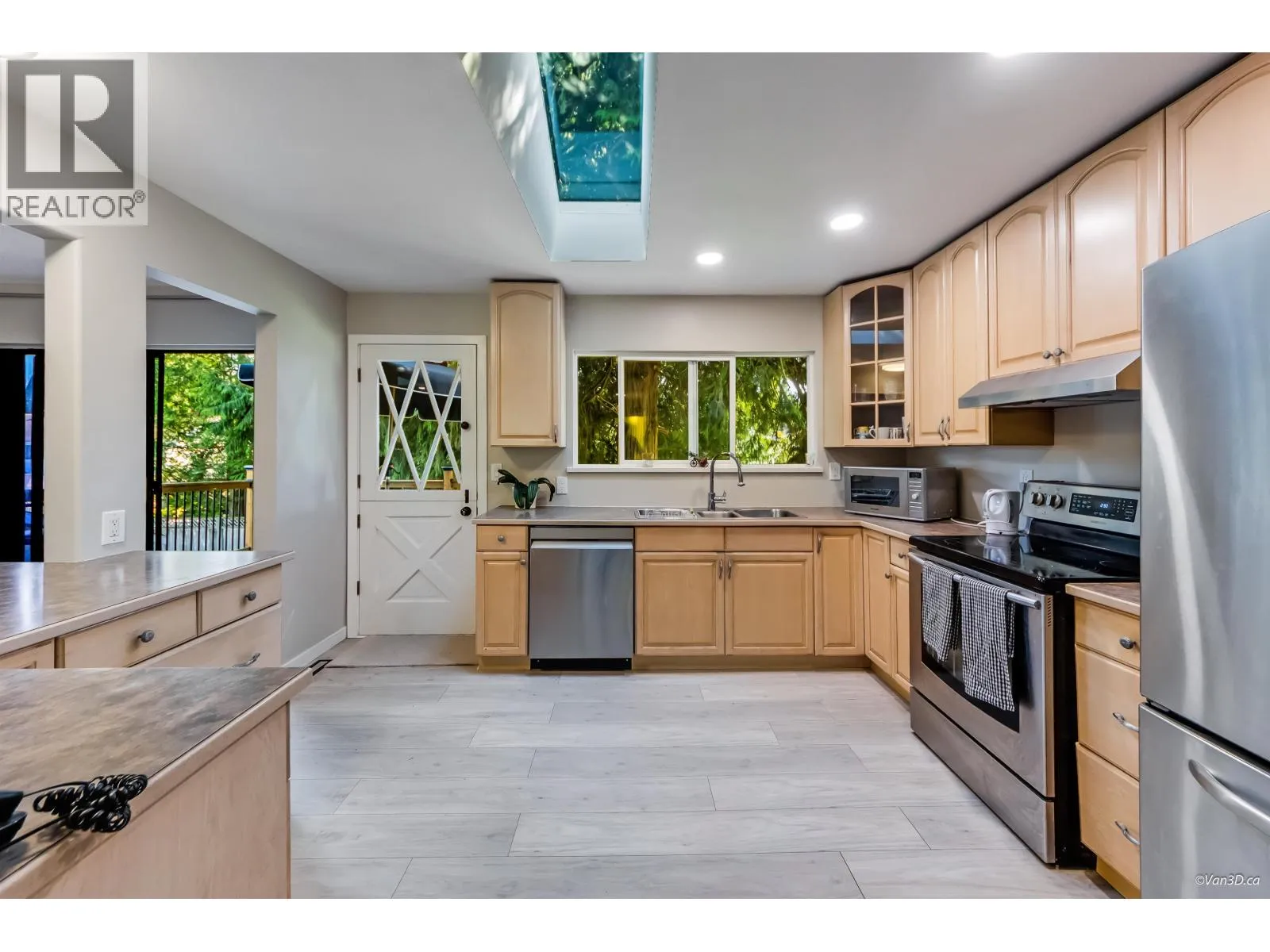 Quite BIRCHLAND MANOR updated home featuring: 5 bedrooms, 3 baths, 6018 sq. ft lot, 2 kitchens, basement with separate entrance and ample space for parking. Updates include: new flooring, paint, decks, roof (4 years),hot water tank (2 years), furnace (4 years), garage door opener, pot lights, appliances, fireplaces, bathrooms, plus much more. This home features 3 bedrooms up with 2 baths and 2 decks, downstairs has 2 bedrooms in-law suite. Loads of parking space plus room for your RV, the backyard is fully fenced and private. Perfect family home with a mortgage helper, great location being close to all amenities including all levels of schools / shopping / transit. Quick possession possible. (id:27476)