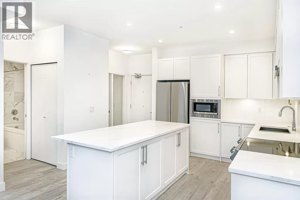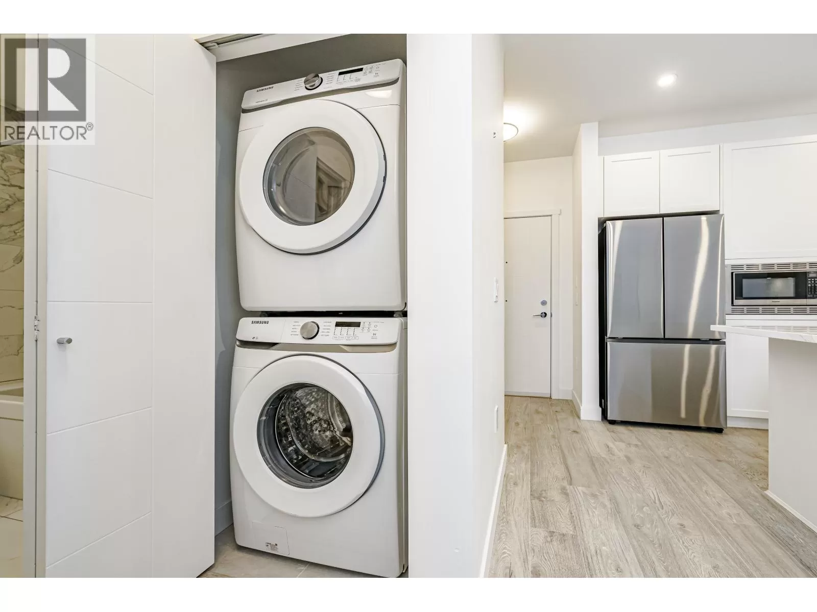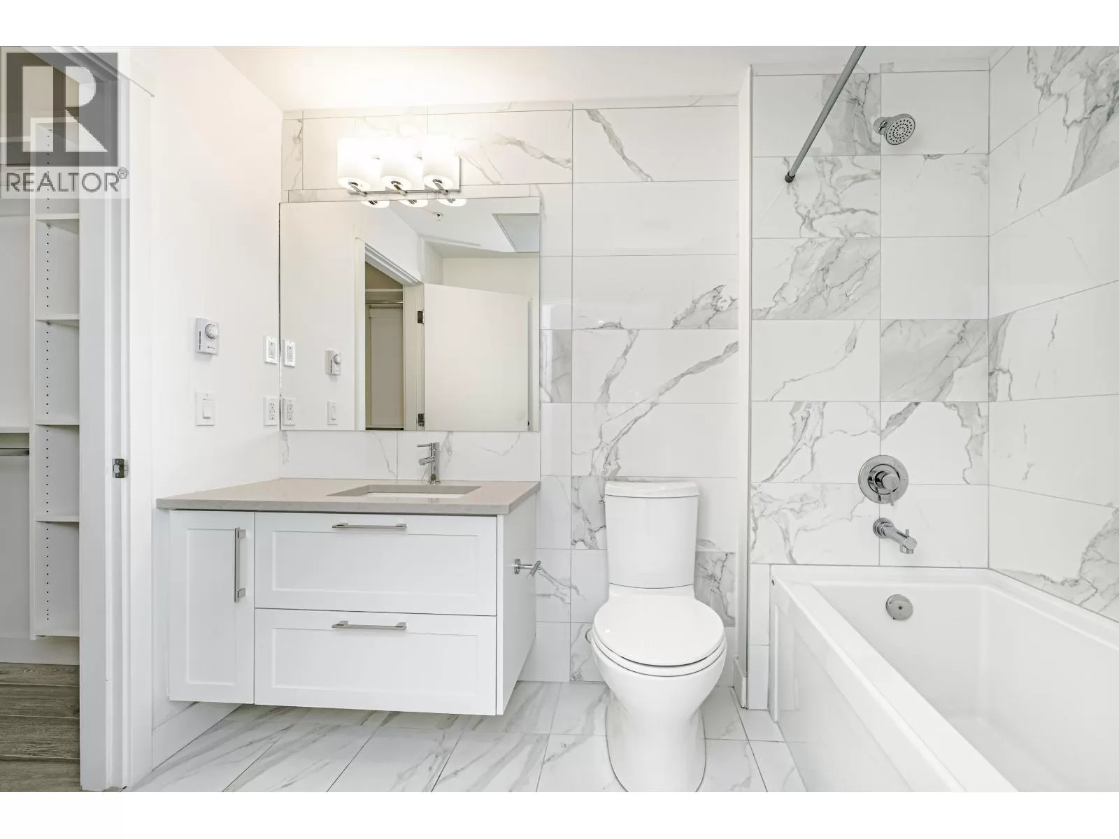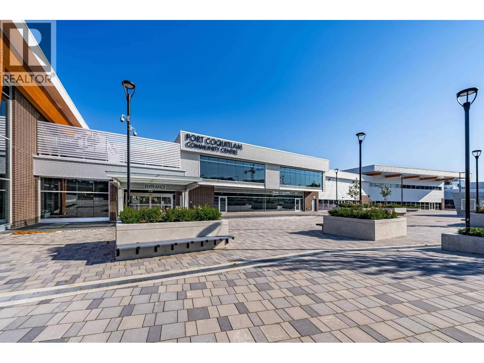 Welcome to this spacious 1 bedroom + den home at THE BLOC by Maclean Homes. Tucked away in a quiet setting, this bright south-facing home offers 9ft ceilings, laminate flooring throughout, and an open, airy feel. The modern kitchen features a large island with abundant storage, while the functional layout includes a cheater ensuite, a king-sized primary bedroom with a walk-through closet, and a versatile den that can be a small bedroom. Enjoy low maintenance fees (including hot water), plus convenient building amenities such as a secured bike room and a party/function room. Unbeatable location: Walk to schools, parks, shopping, transit, and dining. Minutes to Coquitlam Centre, the Evergreen Line, West Coast Express, PoCo Trail, and more. Flexible possession - move in anytime! (id:27476)