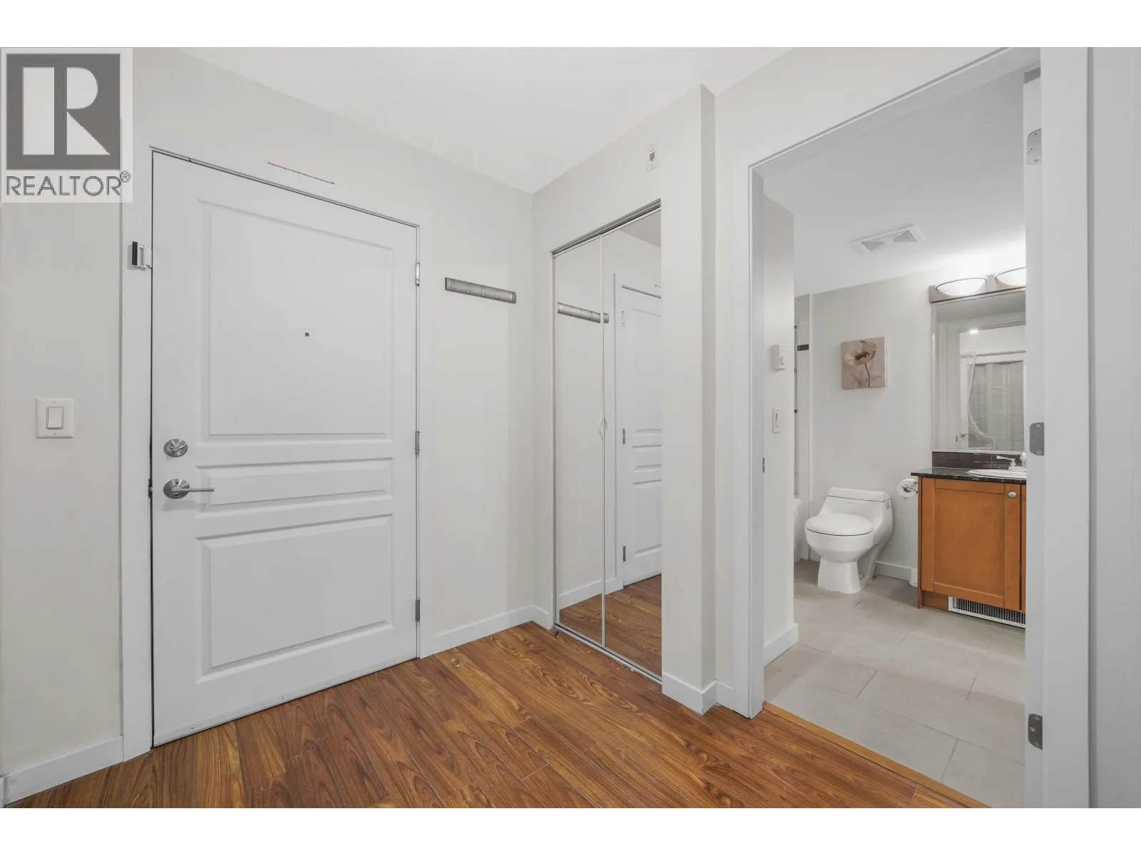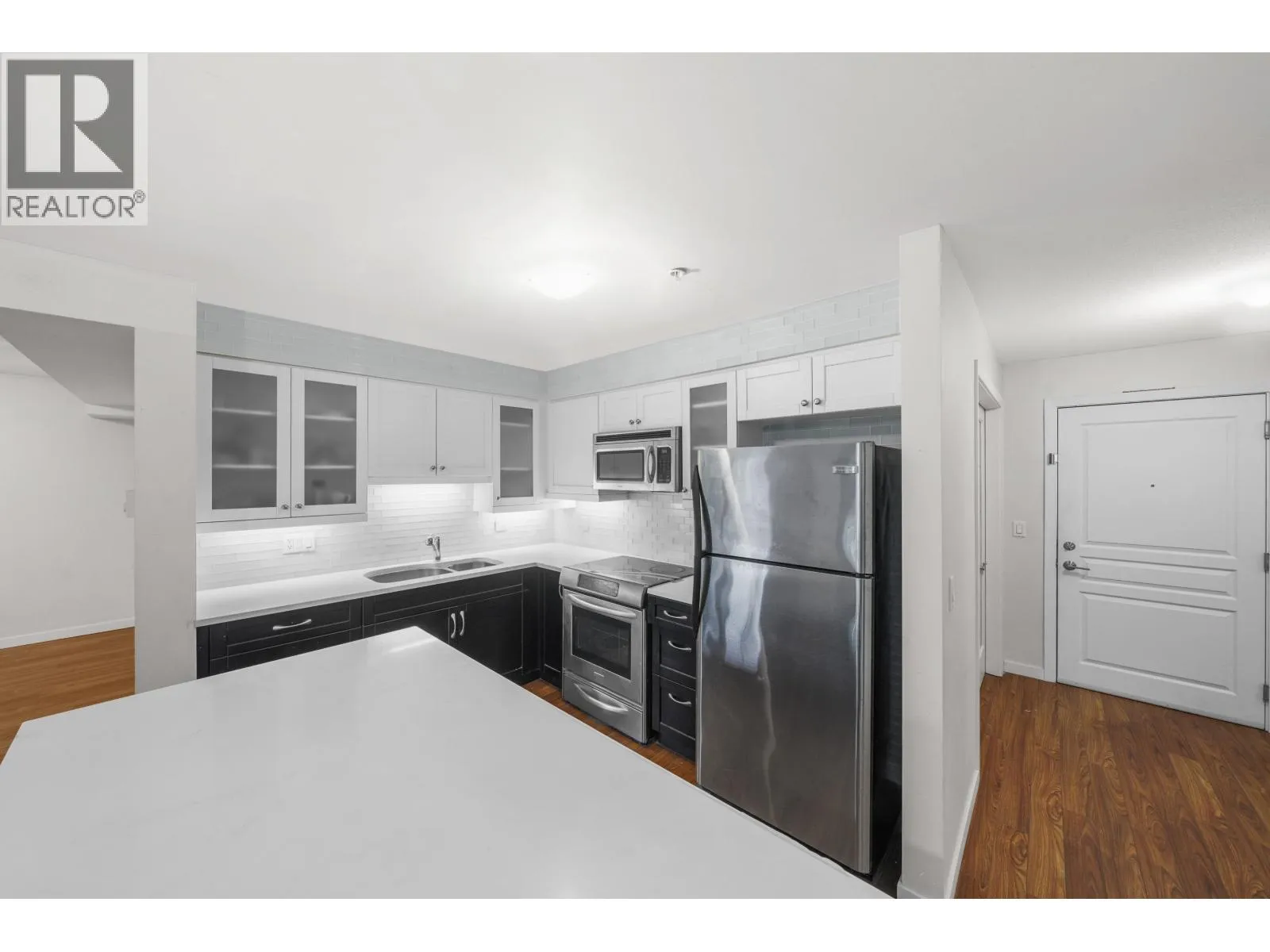Well laid out, this bright corner unit features an open concept kitchen/living/dining. Chef's kiss to the large kitchen island with seating for 3 and to prep amazing meals from. Modern finishes include California shutters, quartz counter tops and laminate flooring. The large primary can host a king bed with walk in closet through to cheater ensuite. Second bedroom does not have closets/windows. Enjoy your private tree'd view with peek a boo mountain views. Transit access and shopping on the same block, this centrally located condo also offers 2 roof top decks for entertaining. 1 parking, 1 locker included, quick completion and occupancy options. BONUS: amenity room on first floor, bike storage, hot water included in strata fees. (id:27476)