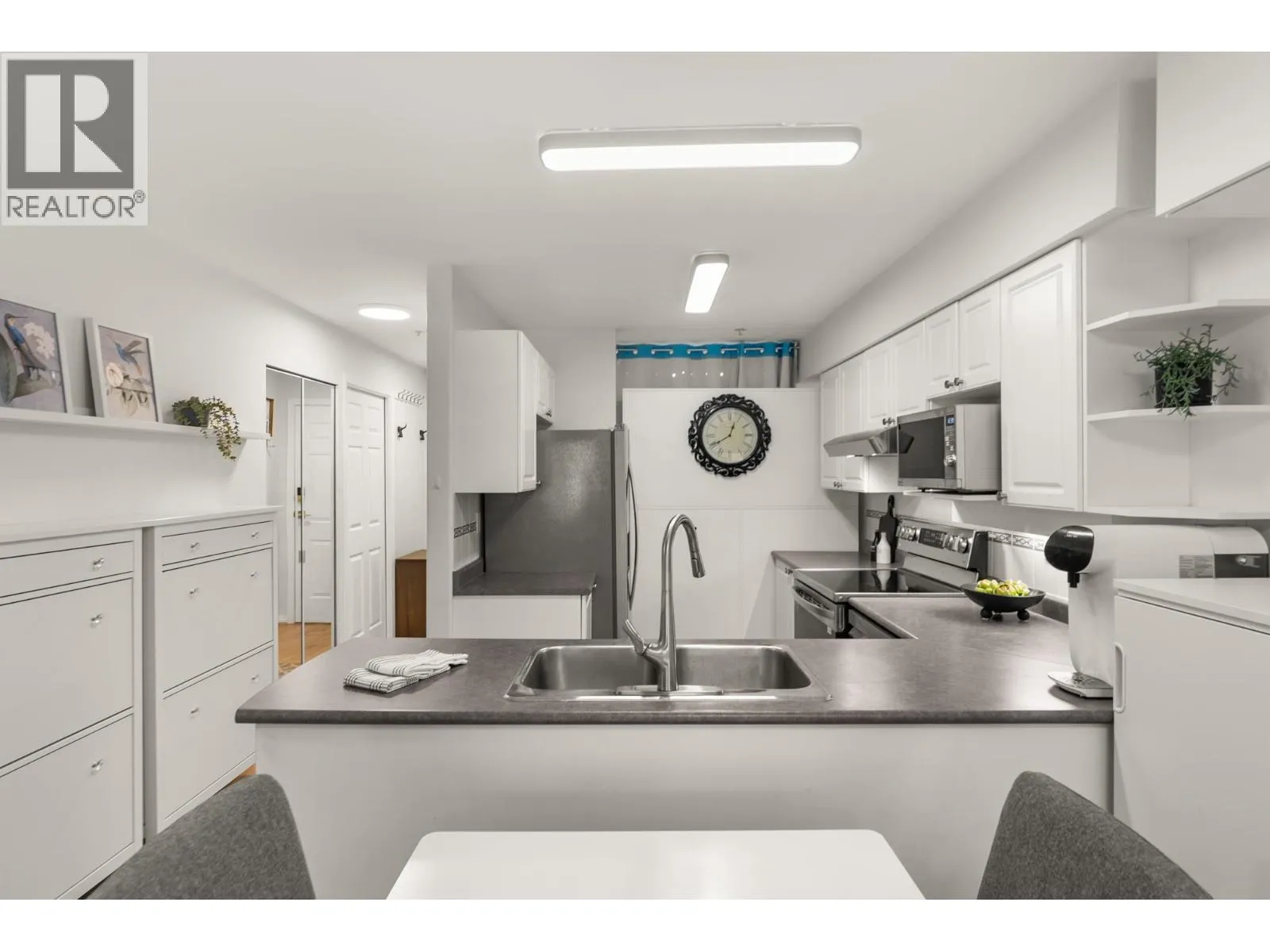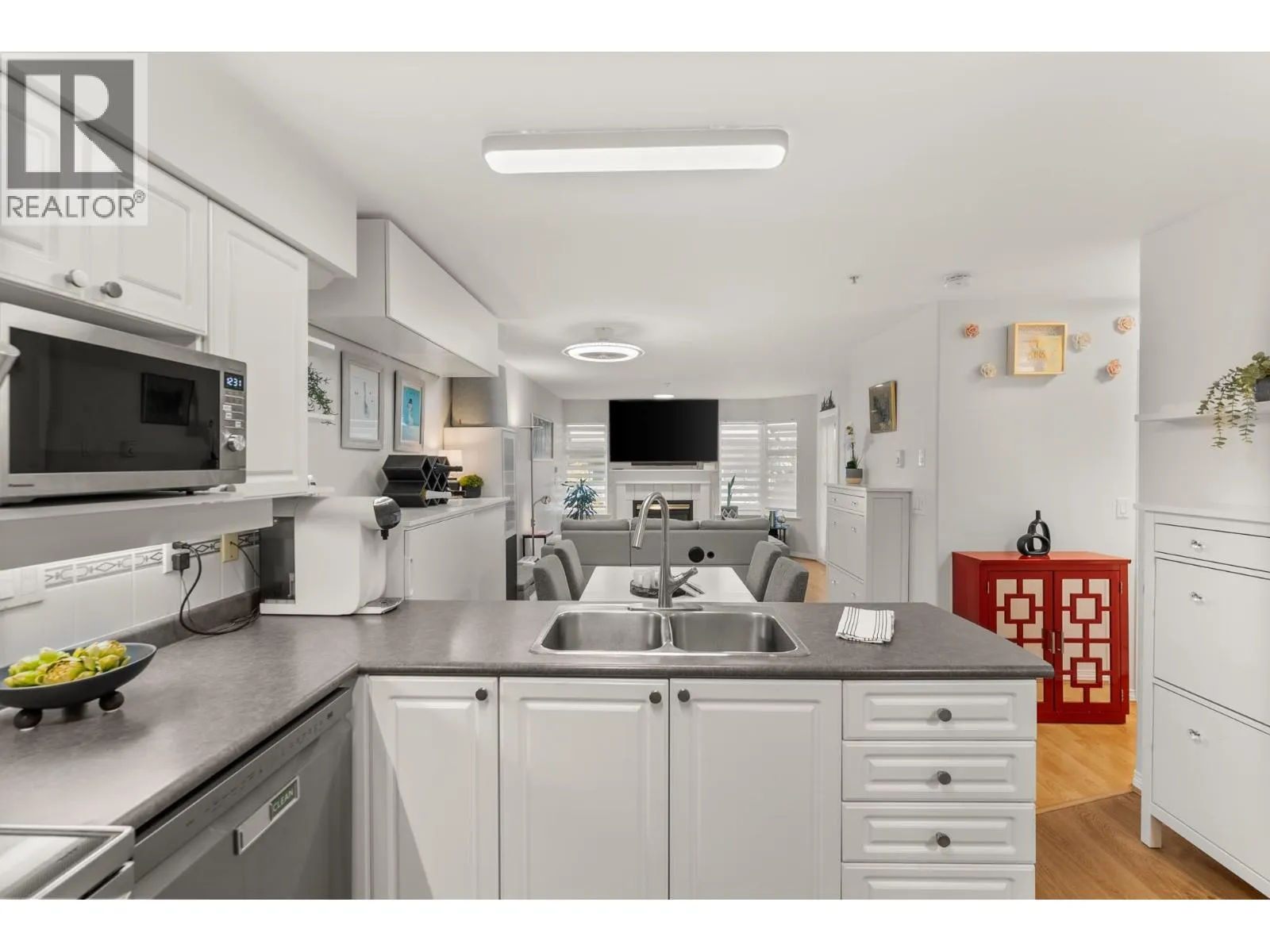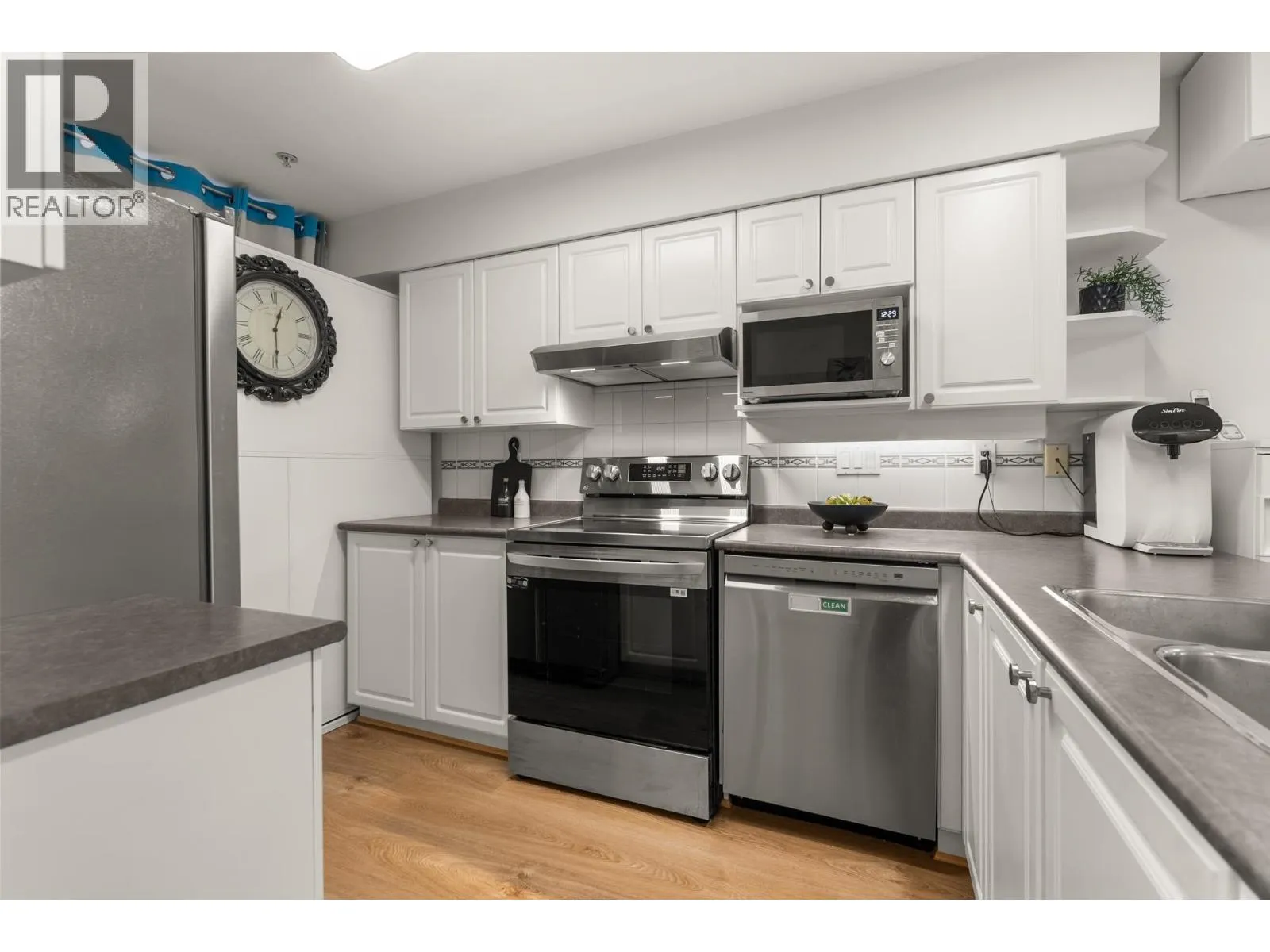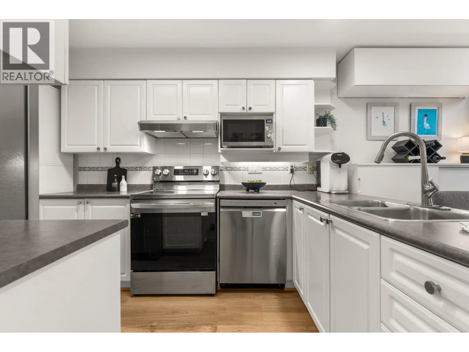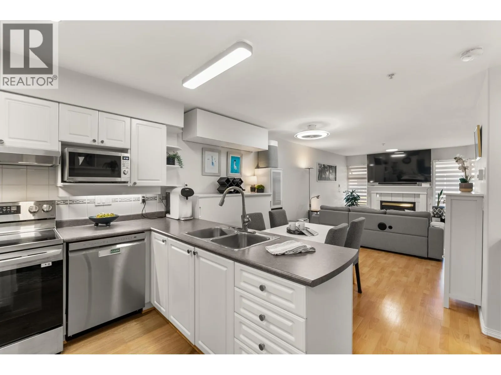 Spacious and well-kept, this bright 2 BD, 2 BA corner unit offers 1,032 SF of comfortable living in a quiet, welcoming setting. The open layout includes a kitchen with new S/S appls, and a large eating area. The living room features a cozy gas fireplace and opens to a large 188 SF L-shaped balcony-perfect for relaxing or entertaining. The primary BD has a walk-in closet, updated ensuite, and balcony access, while the second BD is well sized. A large laundry/storage room adds convenience. Recent upgrades include reno´d BAs, new lighting, zebra blinds, and updated kitchen & laundry appls. Complete with 2x2 parking stalls and storage locker. Key West is a well-managed building on a quiet street, close to shops, transit, and everything Port Coquitlam has to offer. (id:27476)
