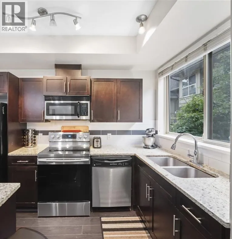 Spacious 3 bed + den, 2.5 bath townhome, Partially Reno´d at Aviva with over 1,500 square ft of stylish living! Top-floor primary suite features vaulted ceilings, walk-in closet, 5-piece ensuite & private rooftop deck with beautiful mountain views. Bright main level with 9 ft ceilings, open-concept layout, and a gourmet kitchen with granite counters, stainless steel appliances, large island & convenient powder room. Full-size den is perfect for a home office or nursery. includes 2 rare side-by-side parking stalls. Well-managed, pet-friendly building with gym, party room & bike storage. Unbeatable location, steps to schools, Gates Park, Coquitlam River trails, shopping, transit, and West Coast Express. A rare find in the heart of Port Coquitlam! Open House Sun Nov 16th 11am-1pm (id:27476)