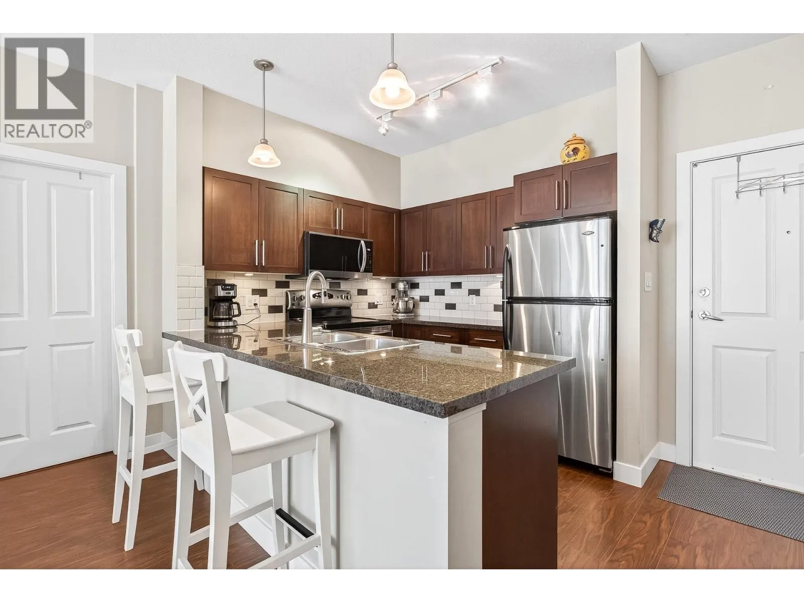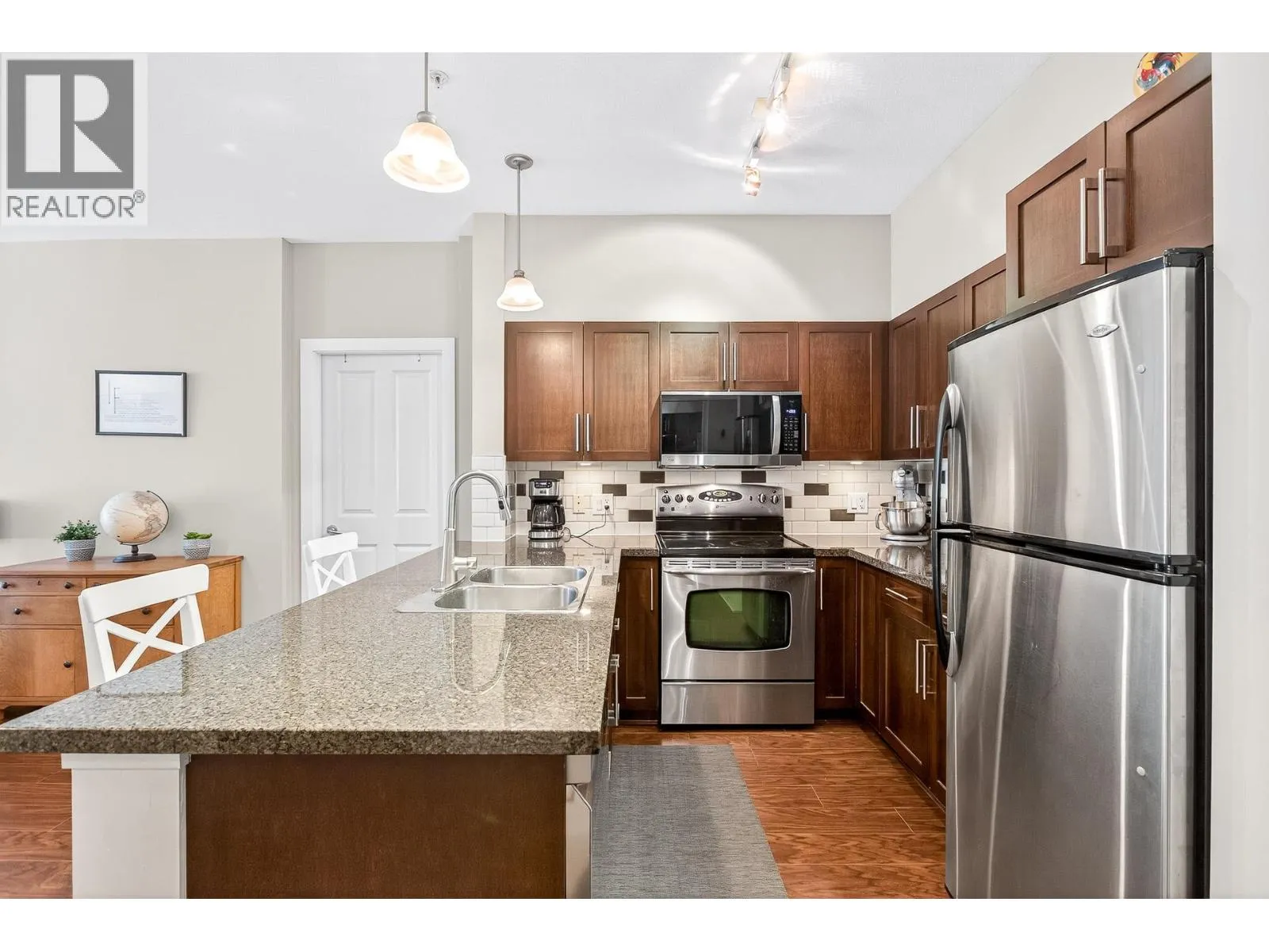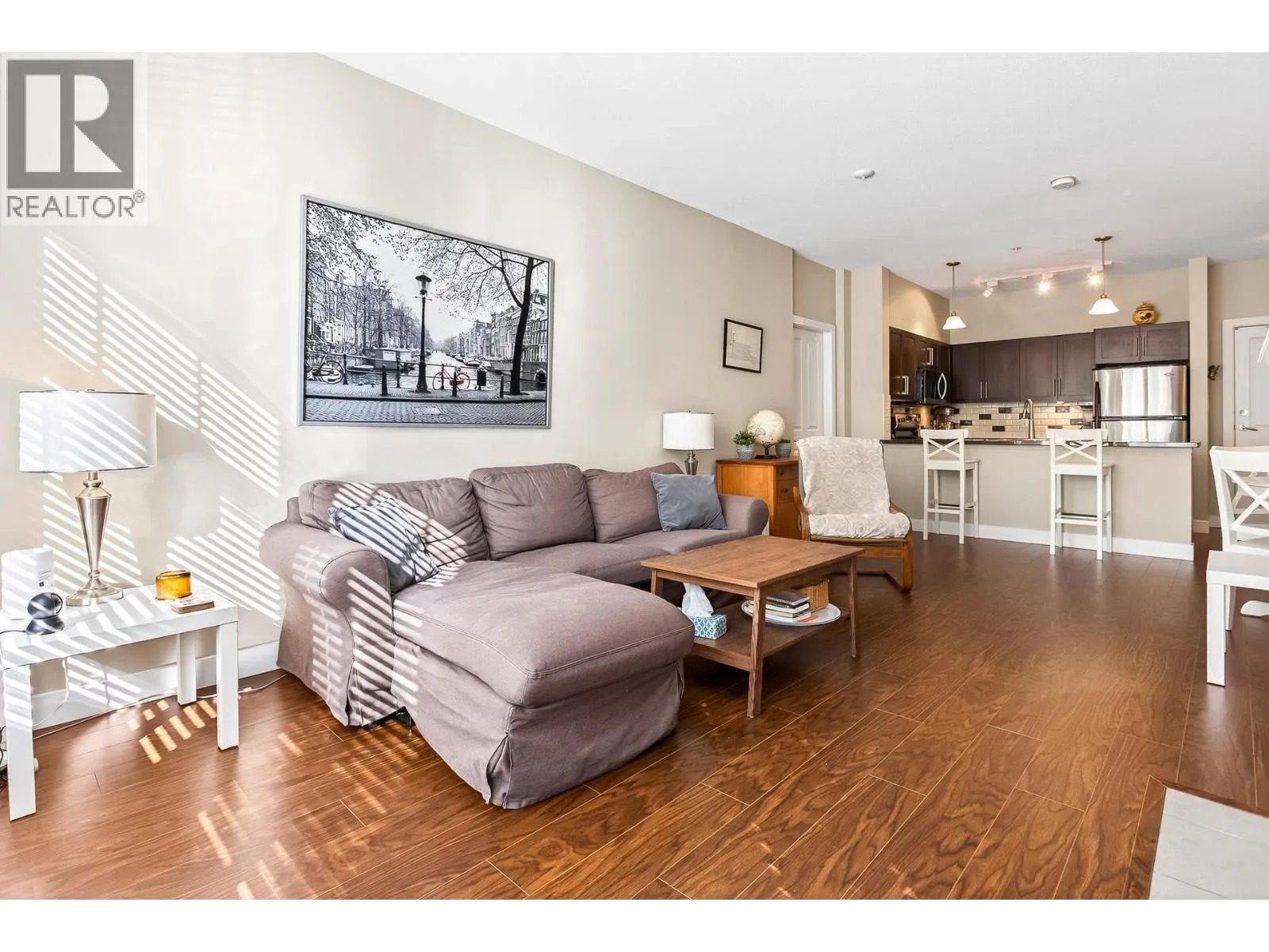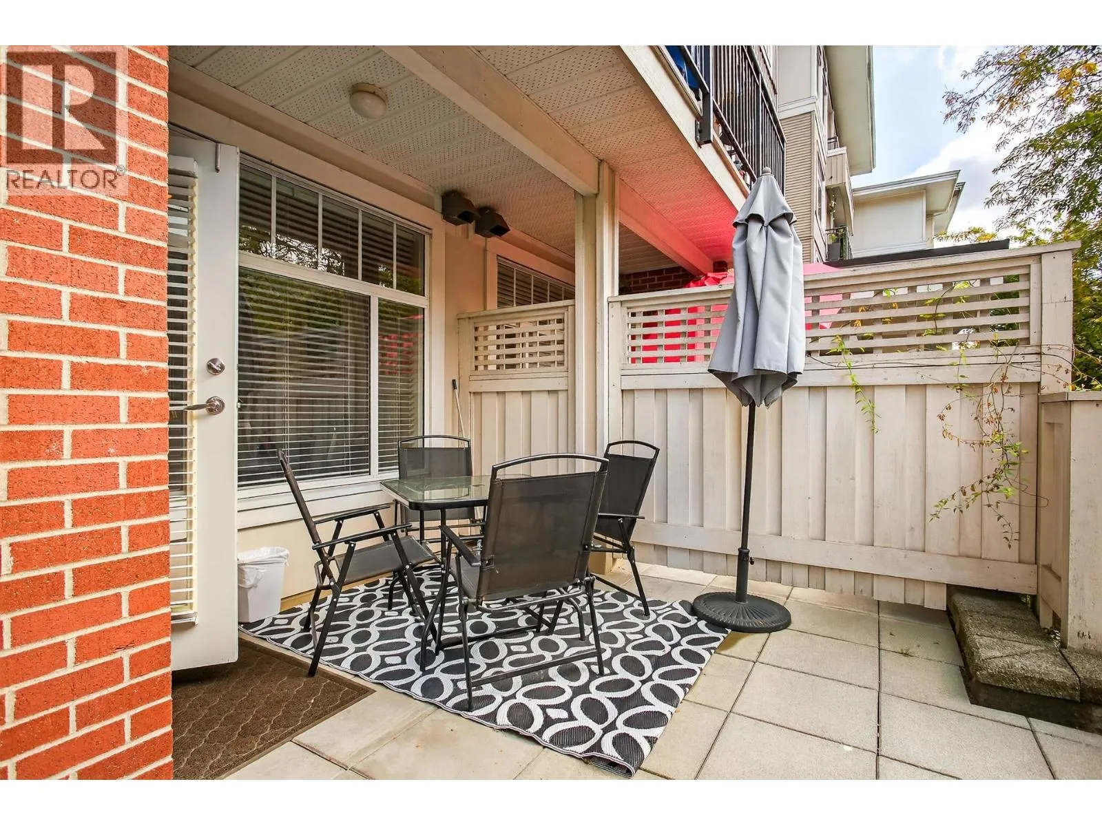 Charming ground-floor two-bedroom, two-bathroom home with its own private entrance and expansive patio - perfect for morning coffee or evening relaxation! Enjoy the open-concept layout featuring a spacious kitchen with a large island and generous overhang for casual dining. The dedicated eating area flows seamlessly into the cozy living room, complete with a fireplace & bright south-facing windows that fill the space with natural light. The primary bedroom offers a walk-in closet and full ensuite bath, while 9-foot ceilings throughout add a sense of airiness and comfort. Includes one parking stall and a storage locker. (Extra parking available through strata.) Just steps from shopping, PoCo Trail, rec. centre, and transit - this home offers convenience & comfort in one ideal package! (id:27476)