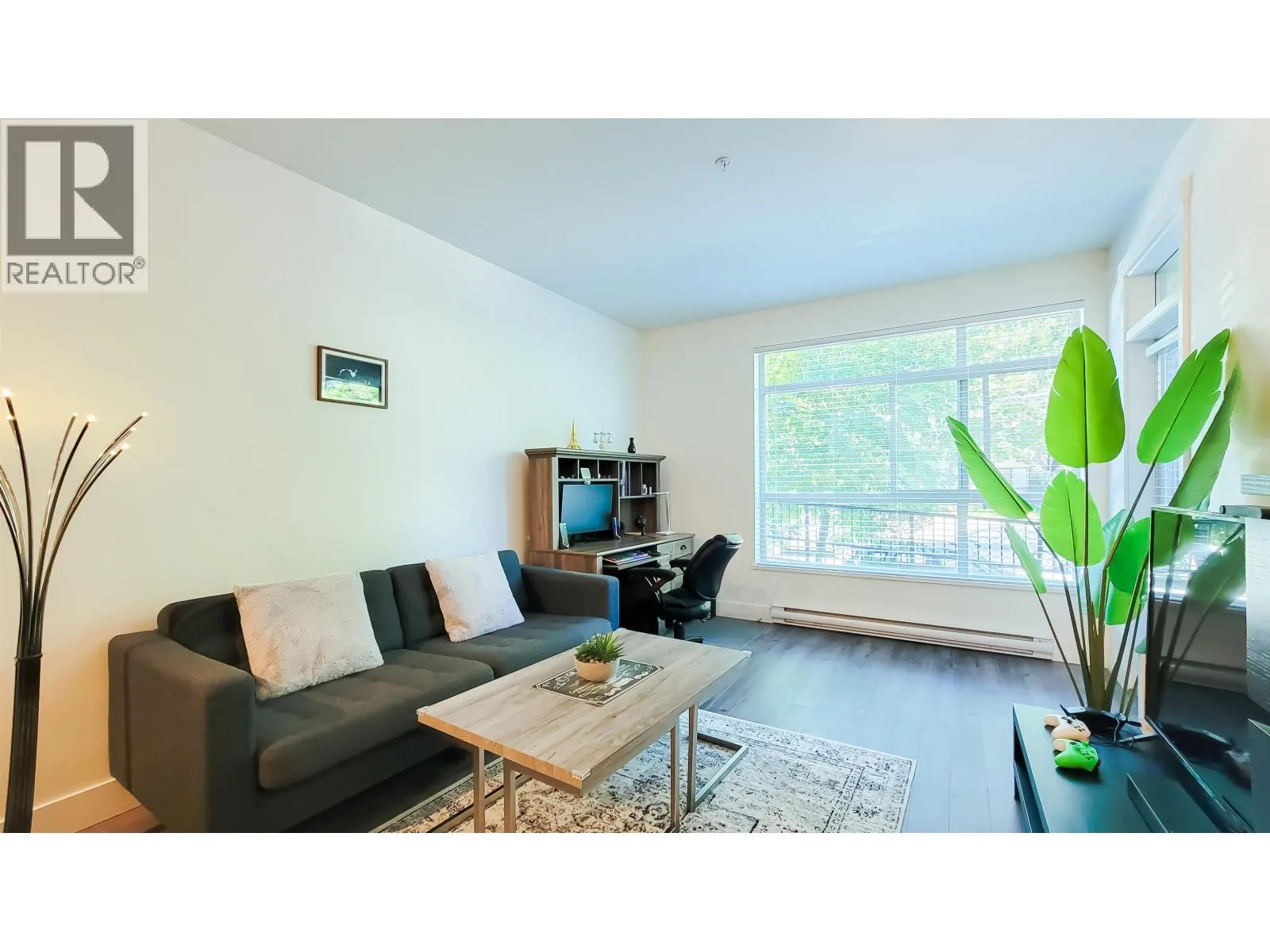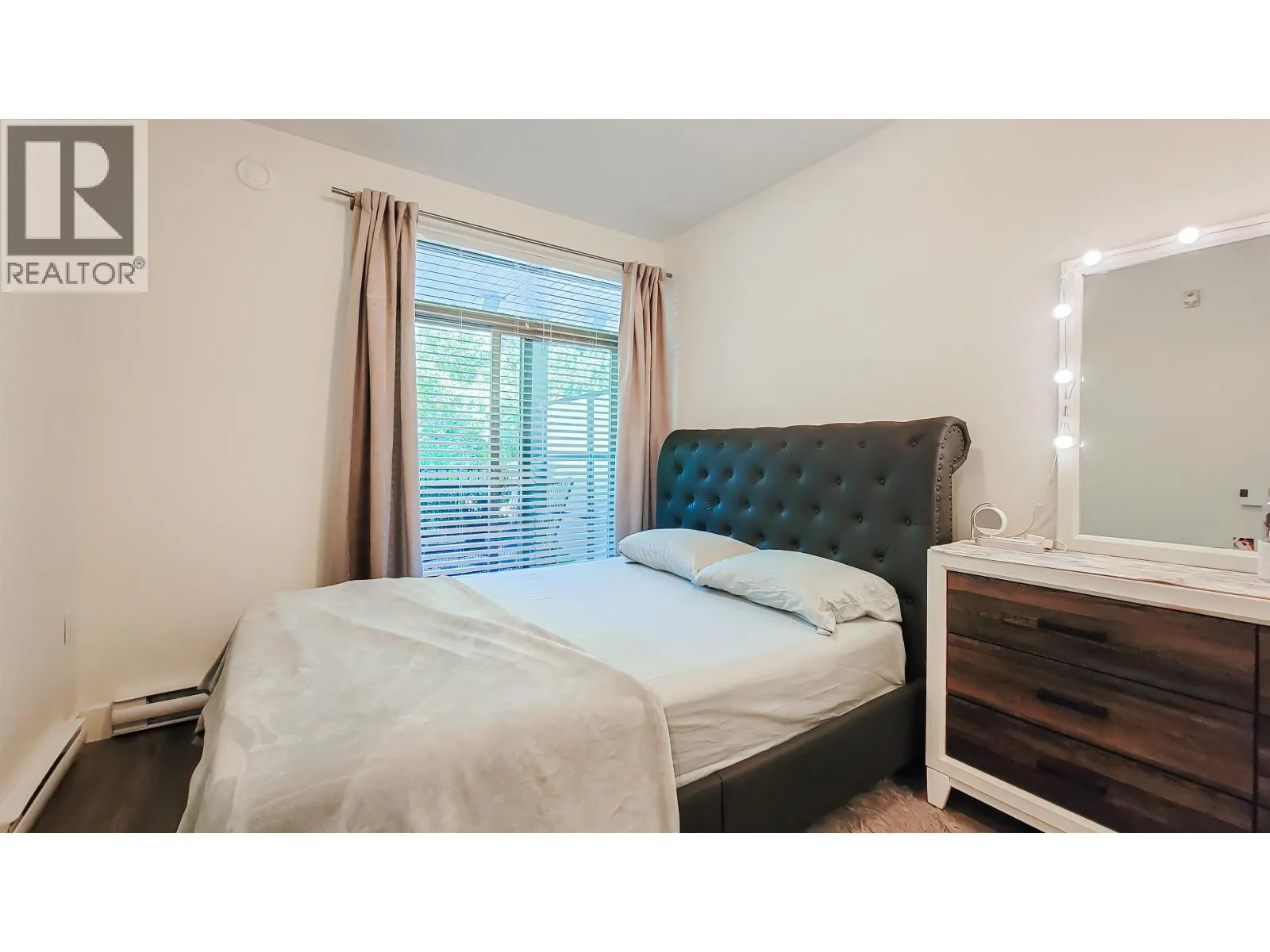Welcome to LUMIERE, a NEWER DEVELOPMENT in the heart of Downtown Port Coquitlam!! Well laid out open concept 1 bedroom & den & 1 bathroom GROUND LEVEL unit!! Kitchen has quartz countertops, breakfast bar, stainless steel appliances & white shaker cabinetry w/under mounted lighting. Beautiful 12mm laminate flooring throughout with TJI silent floor system. 9' ceilings throughout for an open & airy feeling. Roughed In Central Vacuum, Smart Thermostat. Large 96sf covered PATIO for your entertaining. Close to transit, schools & Westcoast Express with Gates Park just a block away!! Walk to the new PoCo Recreation Centre!! Pet & rental friendly building. 2 Recreation Rooms for entertaining!! Wheelchair friendly. 1 parking stall included w/several bike rooms. 4 EV Charging Stations in building!! (id:27476)