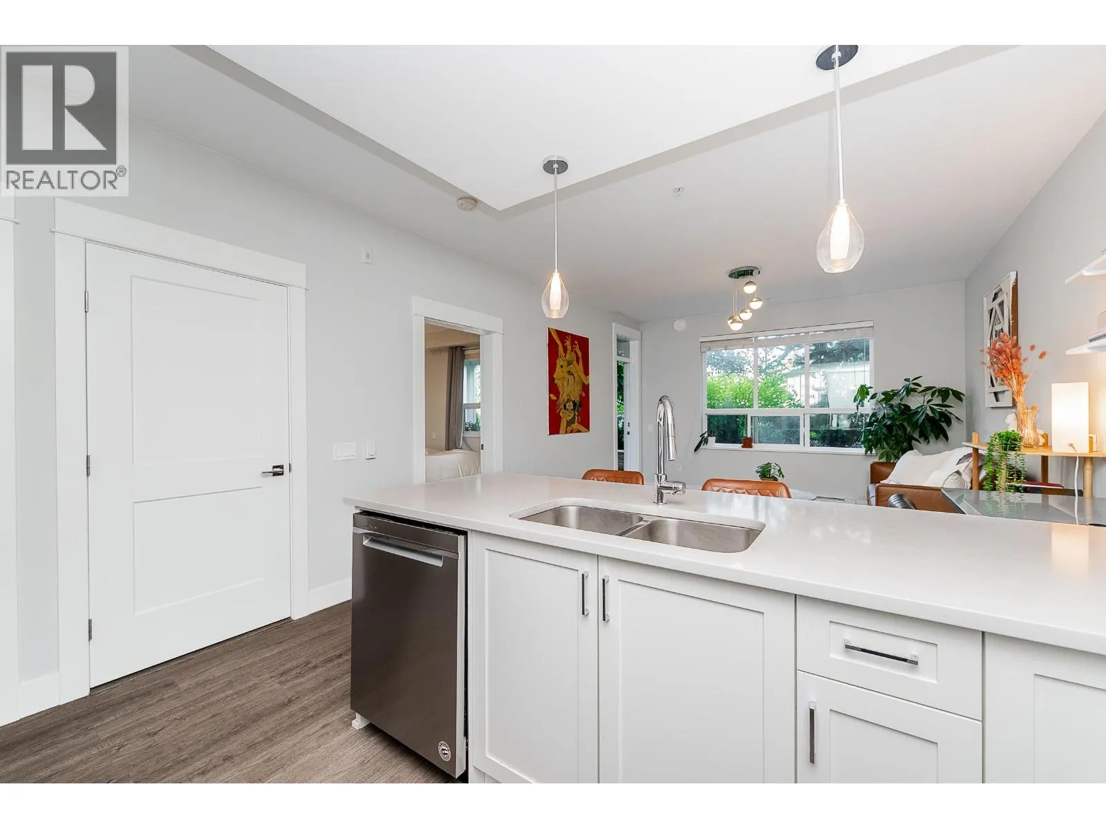 Welcome to Montrose Square by Quantum Properties in the heart of Port Coquitlam. Perfectly situated with direct access to the serene courtyard, this 2 bed 2 bath, south-east facing CORNER home features 835 square feet of boutique living space, and a bright and spacious open floor plan. With in-suite laundry and an EXTRA LARGE 238 square foot wrap-around covered patio - this is the ideal home for seamless indoor-outdoor living. Gourmet kitchen features quartz counters, stainless steel appliances, and modern cabinetry. Plus, one parking spot, one bike storage locker and great amenities. Close to shopping, the incredible Poco Recreation Centre, parks, transit and schools. A great home in a fantastic location! (id:27476)