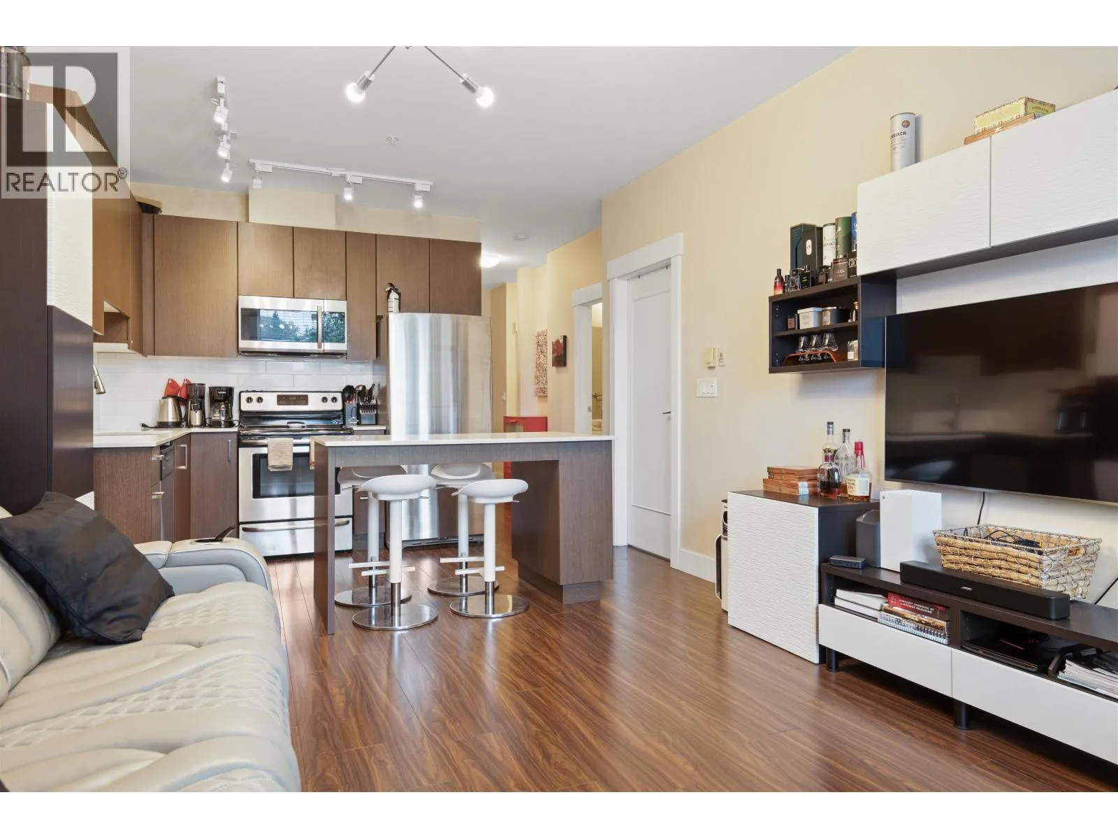 Welcome to the La Via complex in beautiful Port Coquitlam! This bright and open 1 bedroom plus den, 2 bath condo is perfect for first-time buyers or anyone looking to downsize. You´ll love the modern kitchen with stainless steel appliances and a moveable island, 9ft ceilings that make the space feel even brighter, and a private balcony. Great location-just steps to Gates Park, Coquitlam River trails, shops, restaurants, and transit. A cozy place to call home in a friendly, walkable neighborhood! And it´s pet friendly too! (id:27476)