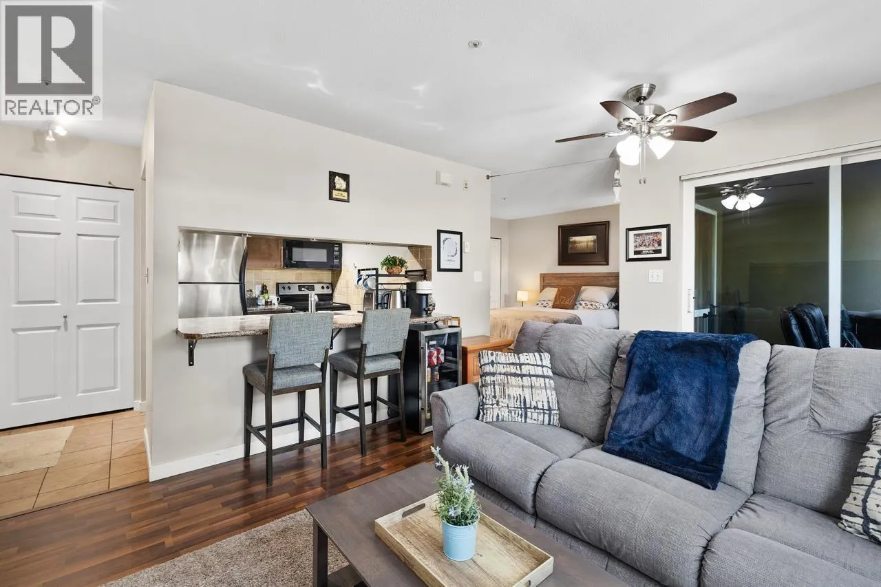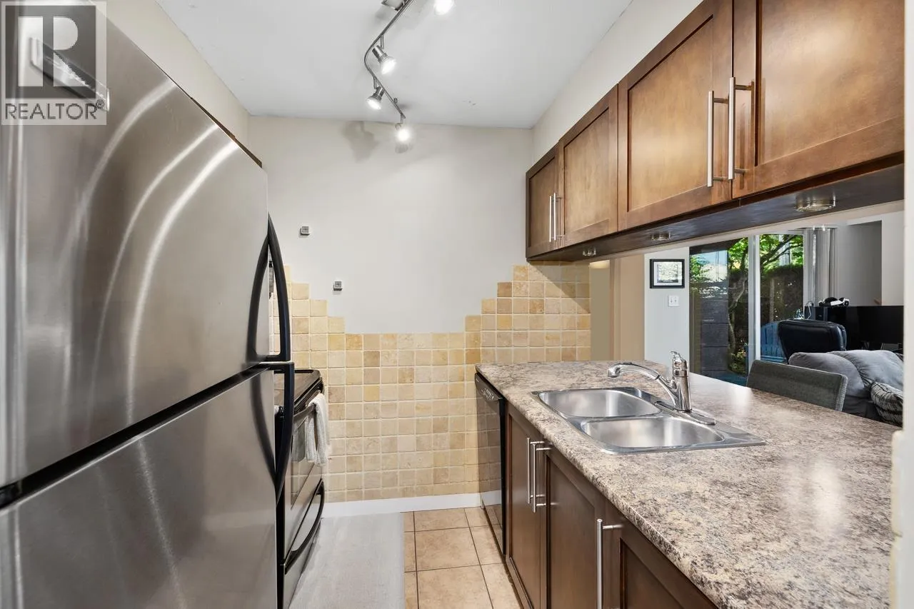 Welcome to this updated junior 1-bedroom, 1-bathroom condo in the heart of Port Coquitlam! This home features laminate flooring and a galley-style kitchen with stainless steel appliances and a breakfast bar. The large living room windows allow for plenty of natural light, and there's a bonus private patio to enjoy. Conveniently located just steps from the WESTCOAST EXPRESS station, this condo also includes shared laundry facilities and one underground parking spot. Nearby amenities include the PoCo Community Centre & Pool, cafes, shops, and various businesses. Enjoy easy access to Coquitlam Centre, T&T, Costco, and Carnoustie Golf Club. Please note that utilities and cable/internet are not included with rent. This is an unfurnished suite and pictures are not recent. (id:27476)