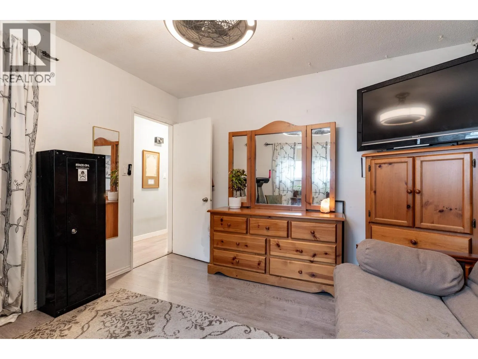 Discover this charming & unique 2-bedroom rancher-style ½ duplex tucked away in a quiet, family-friendly neighbourhood! The bright living room features a large picture window that fills the home with natural light. Enjoy the stunning white kitchen with a granite island & built-in wine rack, elegant pendant lighting, S/S appliances, and a beautiful backsplash. The updated spa-like bathroom impresses with marble counters & a gorgeous glass shower. Step out to your spacious covered deck with hot tub, perfect for relaxing or entertaining. The fully fenced 4,057 sq. ft. yard includes a powered shed, 200 amp service, and 30 amp RV hookup. A true blend of comfort, luxury & functionality-welcome home! (id:27476)