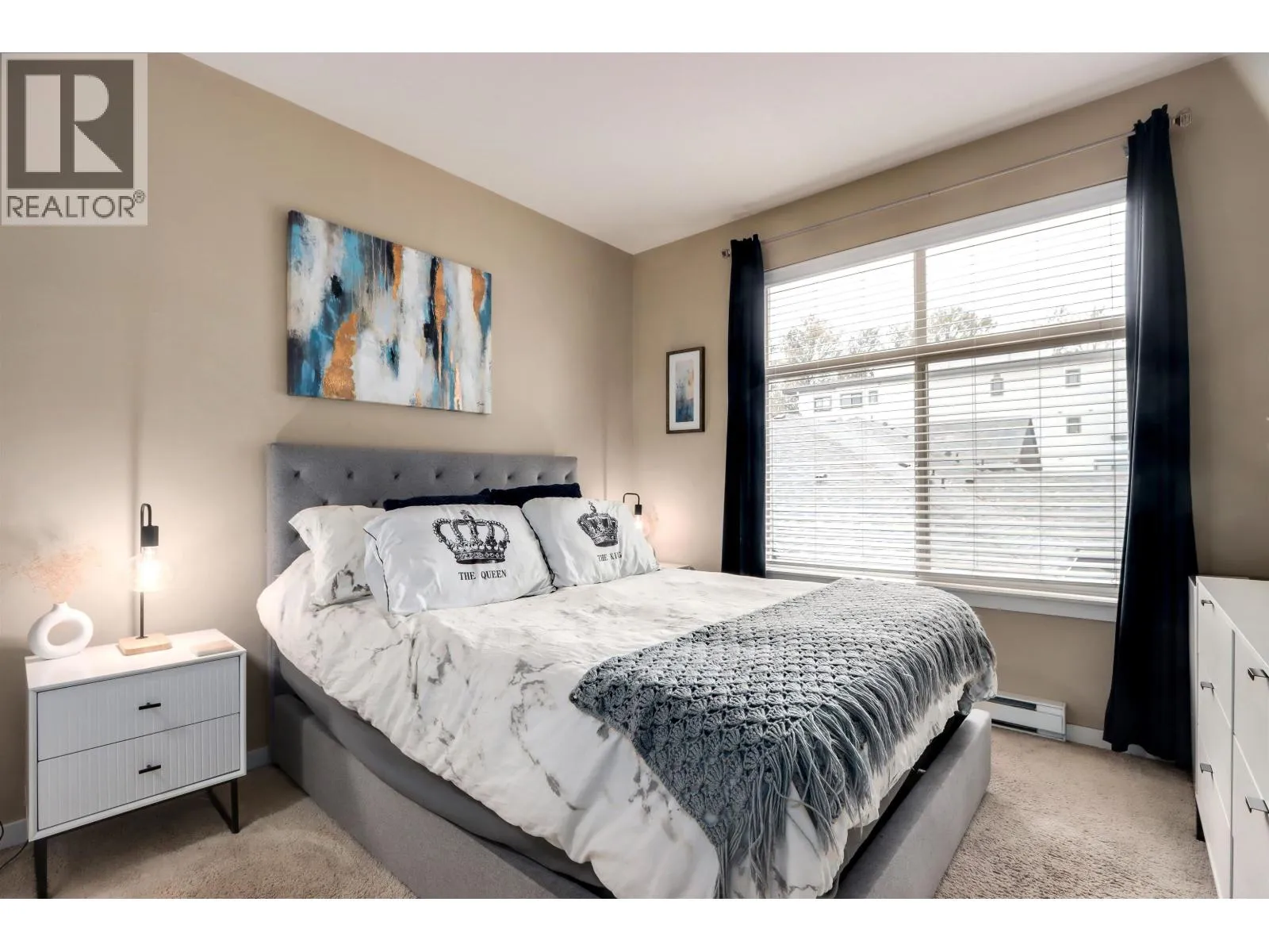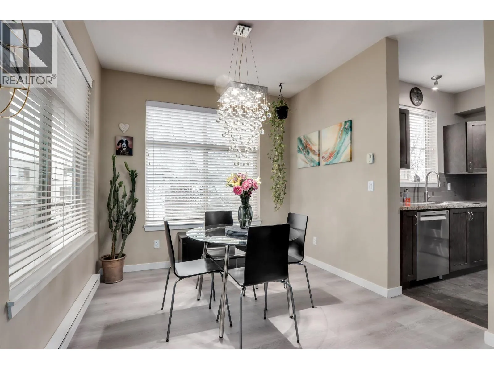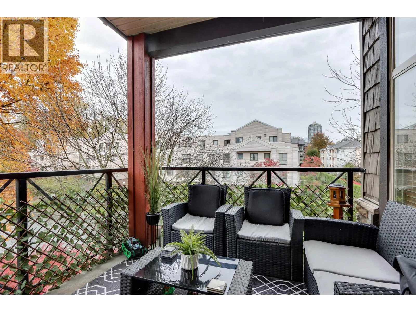 Largest home in the building! Stunning 1,214 sq.ft. NW corner condo surrounded by greenery and natural light. 9' ceilings and an open, modern layout create a bright, airy feel. Stylish kitchen with large island flows into spacious living & dining areas-perfect for entertaining. 2 bedrooms plus den offer ideal space for living, working & relaxing. Updated with vinyl flooring, fresh paint, lighting, washer/dryer, fridge, dishwasher & microwave. 1 parking, insuite storage, guest suite, proactive strata. 2 pets ok (dogs under 20kg, no bully breeds). Prime downtown Port Coquitlam location-steps to shops, cafes, and trails along Coquitlam River. A rare find when nature & convenience meet! (id:27476)