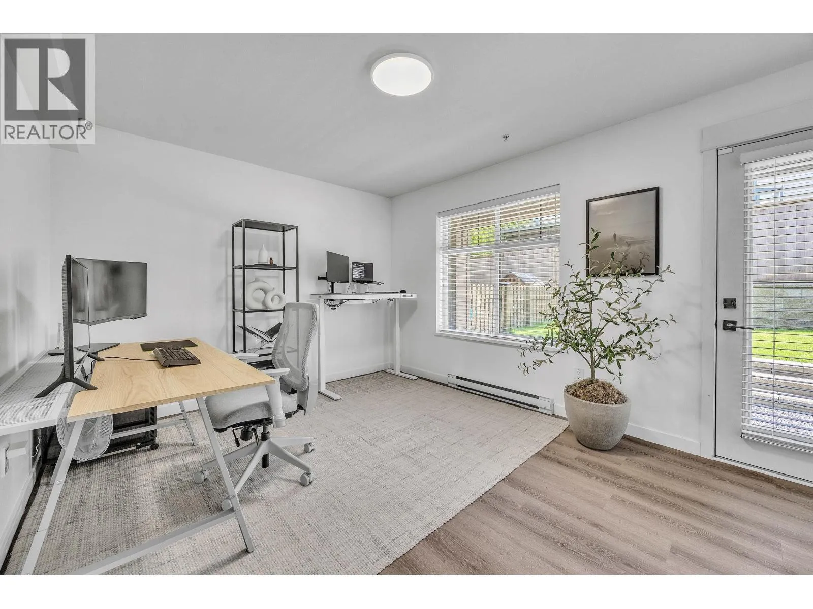 Gorgeous end-unit townhouse at Trellis by Quantum Properties. Three bedrooms up plus a flex/bedroom below with its own entrance to a private fenced garden-perfect for kids or pets. Over 400 square ft of outdoor space west facing grass yard and upper balcony off the living room. Main floor offers open living/dining, a bright kitchen with nook, and large windows. Upstairs features two full baths, including an ensuite and walk-in closet in the primary. Well-maintained home in a family-friendly complex with easy access to parks, schools, transit, lookout beach and major routes.Call your trusted Realtor. Don't miss out! Come to view the home at this weekends Open house Nov 15, 16,9 Sat 2-4pm & Sun 2-4pm (id:27476)