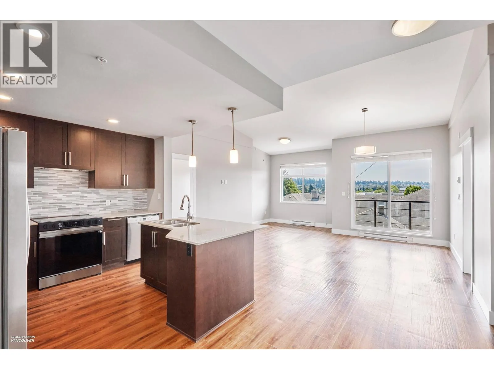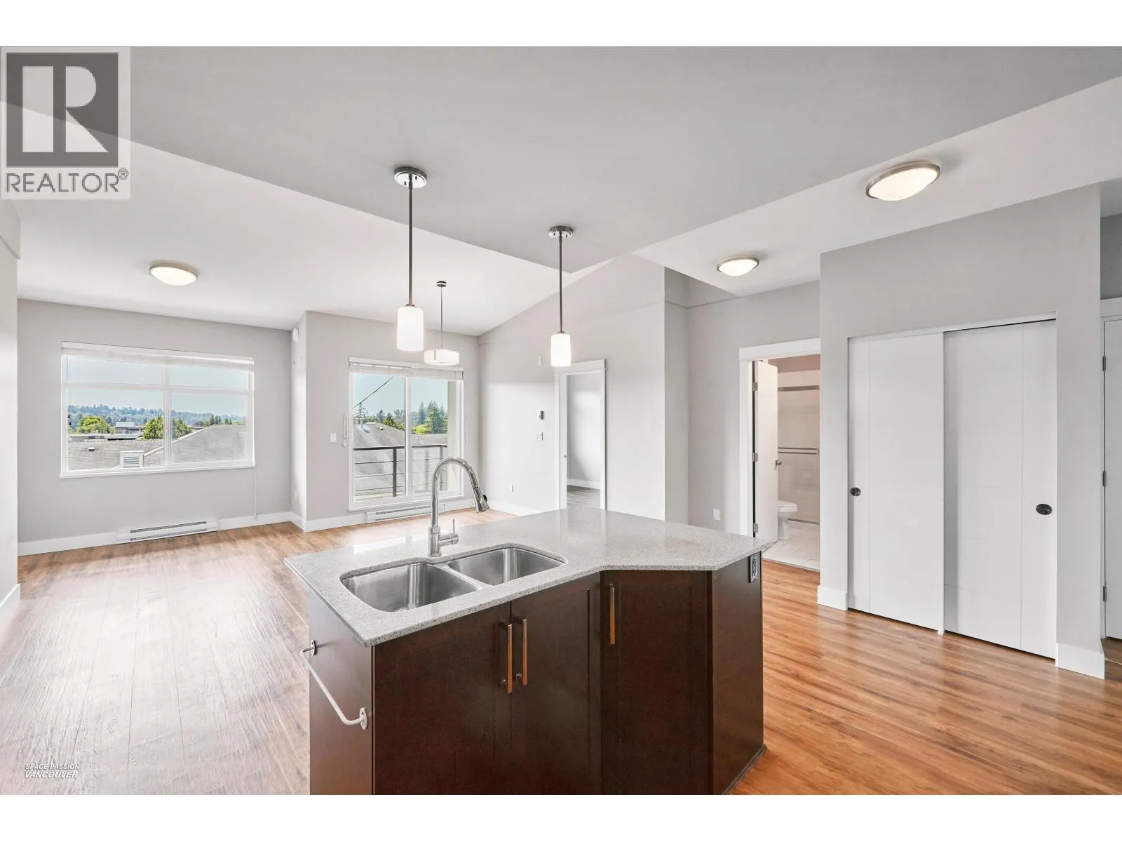 Penthouse Living at Orchid Riverside! Rarely available and on the market for the first time, this bright south-facing 2-bed, 2-bath penthouse features two balconies, soaring 13´ ceilings, and mountain views. Bedrooms are positioned on opposite sides for maximum privacy. The home offers a walk-in closet, a modern kitchen with granite counters and stainless steel appliances, plus a spacious laundry room with extra storage. Amenities include two gyms, sauna, library, guest suite, games room, and onsite gardens. Steps to Gates Park, Traboulay Trail, shops, breweries, the new Rec Centre, and West Coast Express. Includes 2 parking stalls, a large private concrete locker, and 1 bike storage space. (id:27476)