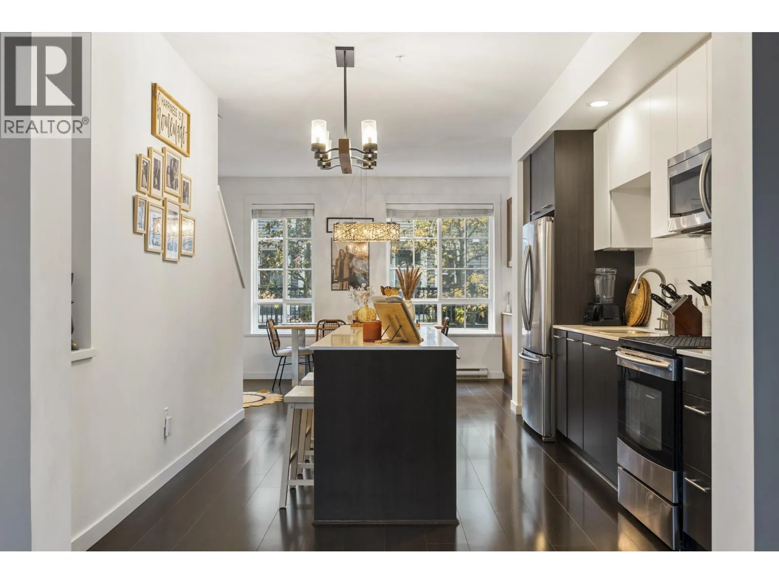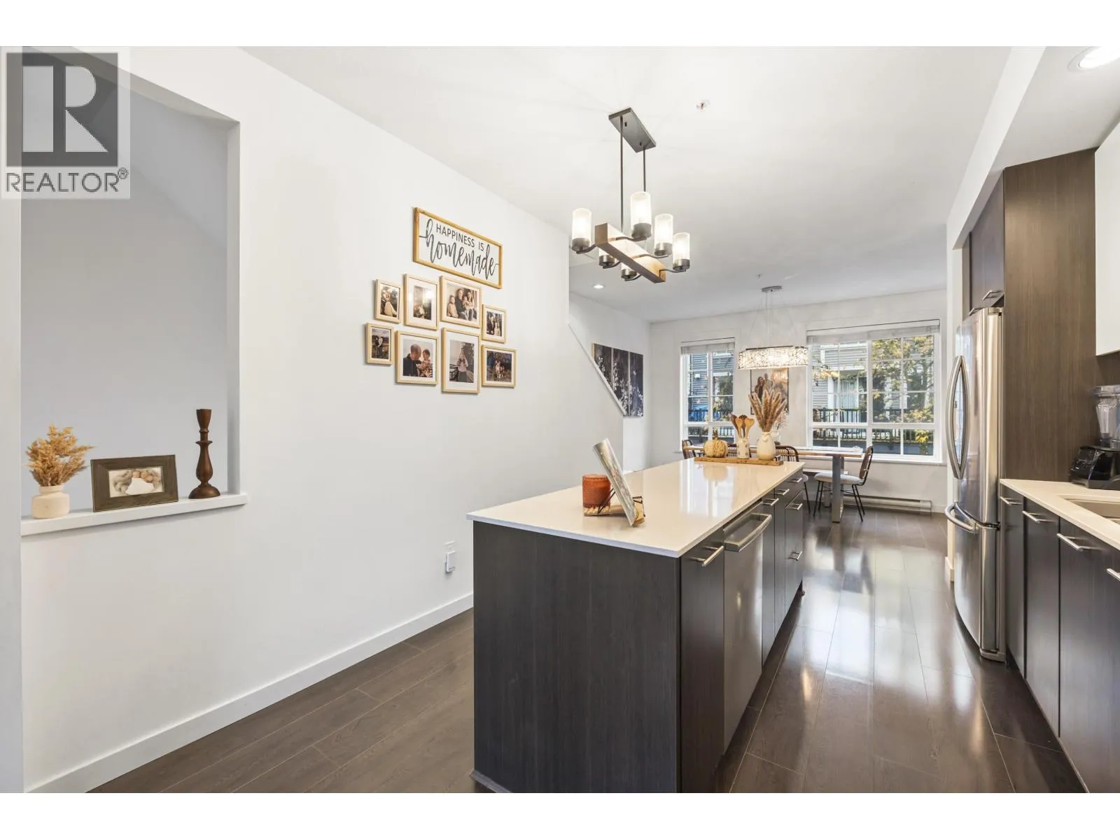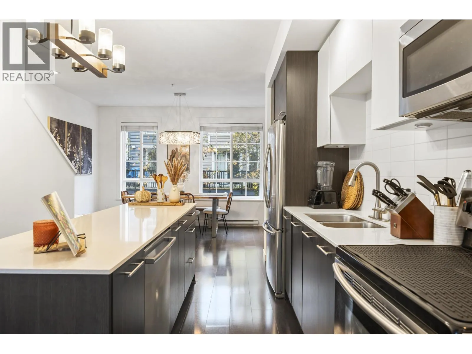 GOLF COURSE VIEWS & MODERN DESIGN! Stylish 2 bed townhome at Dominion North on the quiet side, backing directly onto Carnoustie Golf Course. Bright open main level with high ceilings, wide plank flooring and a sunken living room that flows to a private deck and fenced yard with fairway views. Sleek kitchen with white quartz counters, large island & great storage, plus a custom built-in hutch in the dining area. Upstairs, two generous sized bedrooms including a primary suite with serene golf course vistas, a custom closet and spa-like ensuite. Double tandem garage for parking & storage. Dominion North offers a gym, clubhouse, playground & visitor parking in a family friendly community close to Fremont Village, schools, parks & commuter routes. OPEN SUN NOV 16, 1-3P (id:27476)