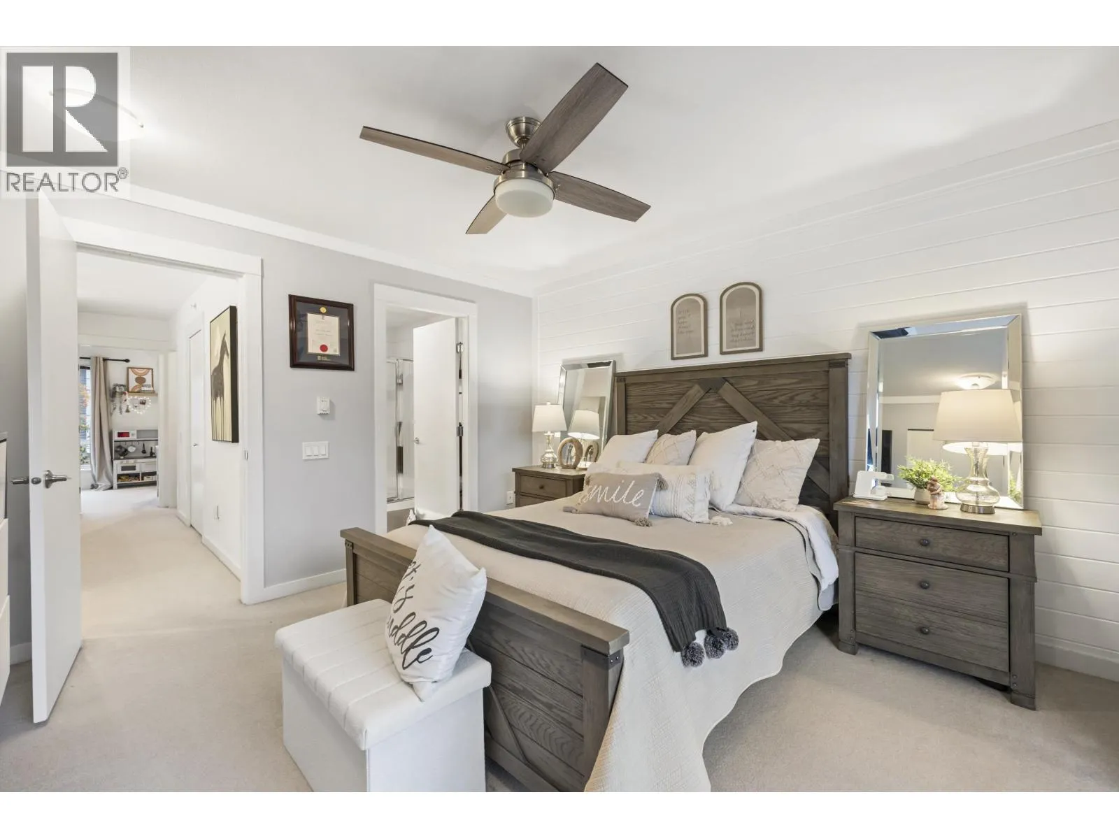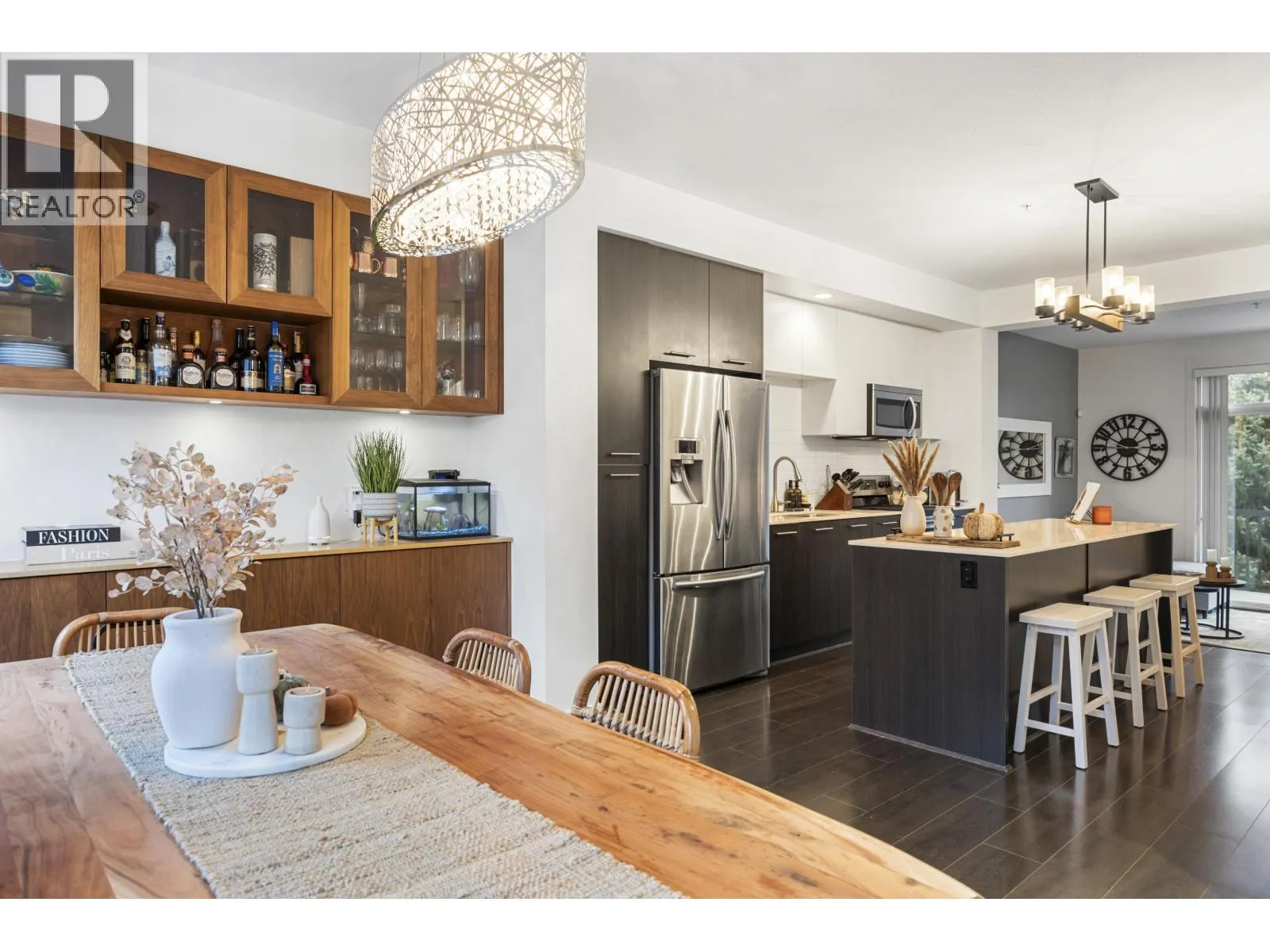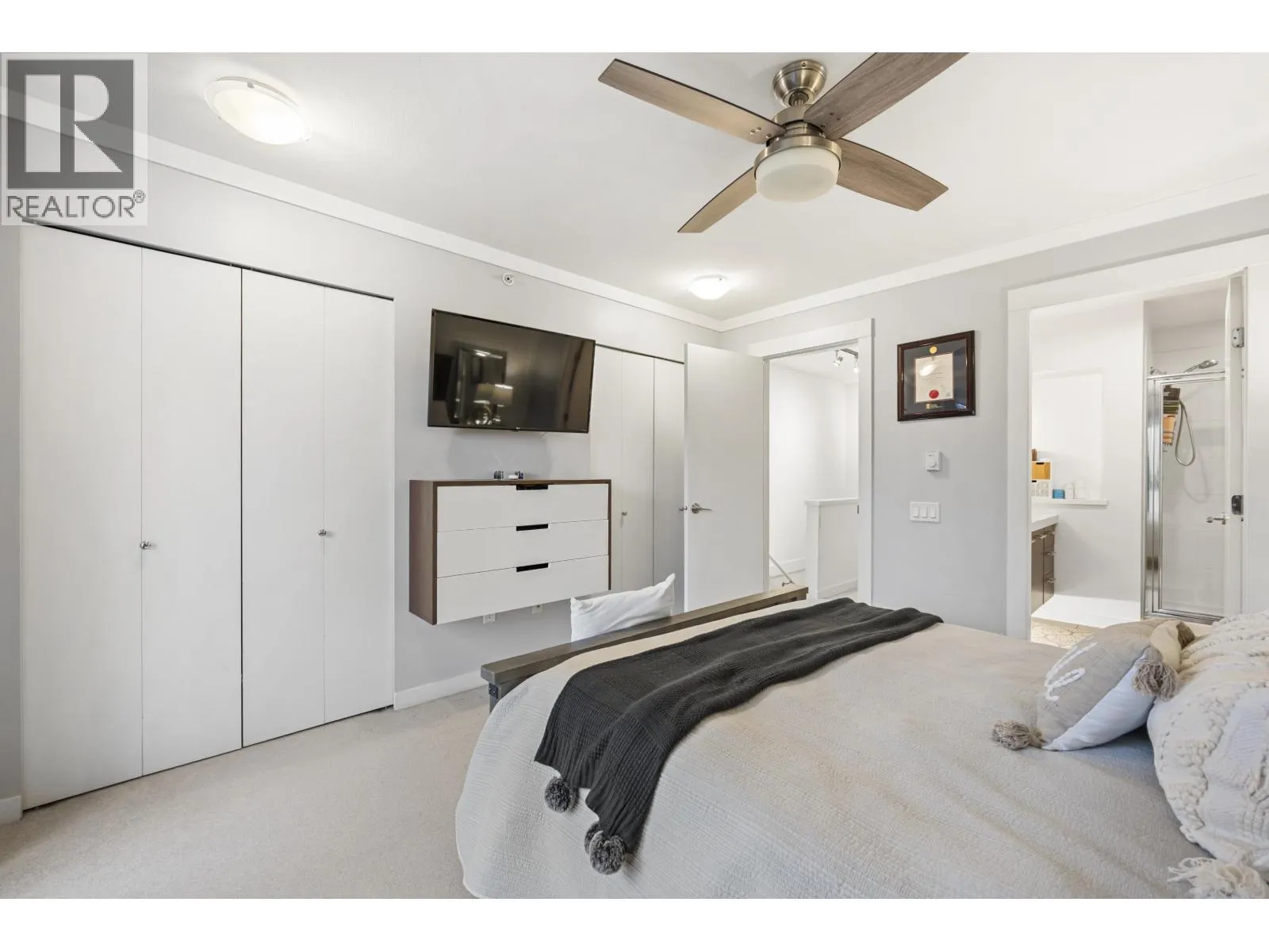 GOLF COURSE VIEWS & MODERN DESIGN! Stylish 2 bed townhome at Dominion North on the quiet side, backing directly onto Carnoustie Golf Course. Bright open main level with high ceilings, wide plank flooring and a sunken living room that flows to a private deck and fenced yard with fairway views. Sleek kitchen with white quartz counters, large island & great storage, plus a custom built-in hutch in the dining area. Upstairs, two generous sized bedrooms including a primary suite with serene golf course vistas, a custom closet and spa-like ensuite. Double tandem garage for parking & storage. Dominion North offers a gym, clubhouse, playground & visitor parking in a family friendly community close to Fremont Village, schools, parks & commuter routes. OPEN SUN NOV 16, 1-3P (id:27476)