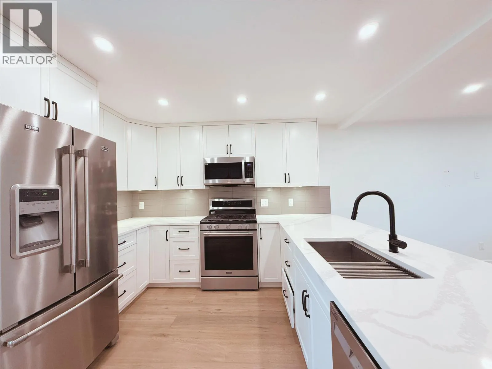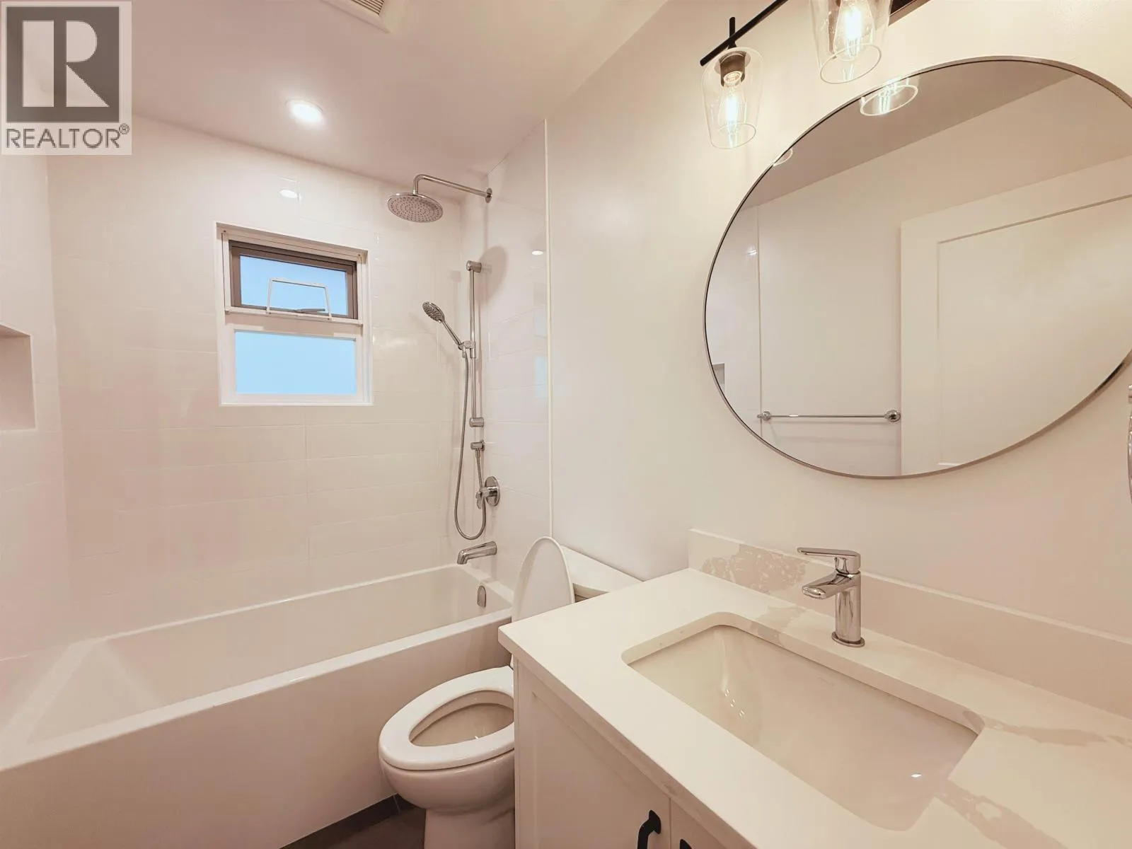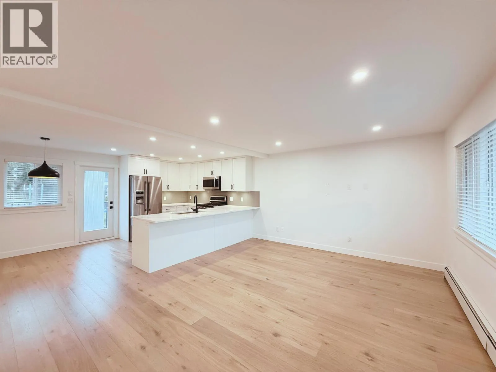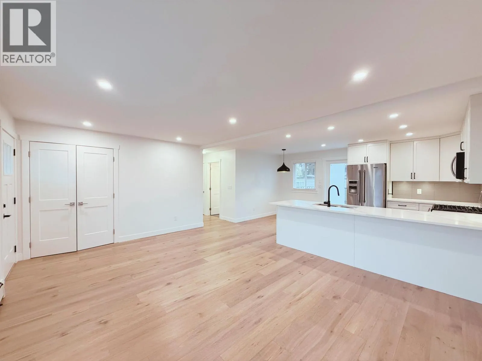 TOP-floor 3-bedroom, 1-bath suite in a PRIME location, beautifully updated with high-end renovations throughout. This bright home features an open living space, modern kitchen with quality cabinetry, newer appliances, gas stove, and a large island perfect for everyday living and entertaining. Enjoy access to a spacious sundeck and a flat, fully fenced yard with peek-a-boo mountain views. The suite includes heated bathroom floors, closet organizers and upgraded windows for comfort. Tons of parking available on the property. Conveniently located close to schools, recreation and shopping. Utilities shared with the downstairs tenant 60/40. A rare opportunity for anyone seeking a stylish, move-in-ready home in an excellent neighborhood. (id:27476)