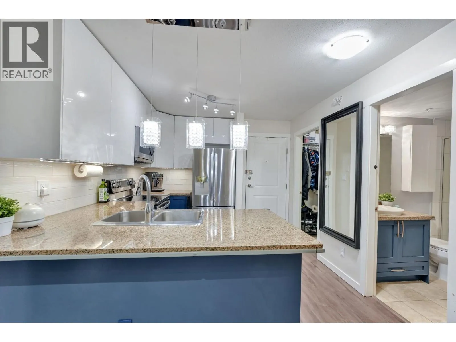 Move-in ready and beautifully updated 2 bedrooms and 2 baths top-floor condo in the heart of Port Coquitlam. Updated kitchen features modern cabinets, breakfast bar, granite counters and SS appliances. The dining and living areas open onto 2 covered balconies - perfect for year-round enjoyment. Bedrooms are thoughtfully situated on opposite sides of the living room for privacy, with the primary offering a walk-in closet and a nook for a home office. Enjoy updated laminate flooring throughout and a large laundry room with ample storage. The well-managed strata allows 2 pets and the building has a new roof. Ideally located on a quiet street, just steps from schools, Gates Park with its multiple sport fields & scenic Traboulay Trail, recreation center, shops, restaurants & West Coast Express. (id:27476)