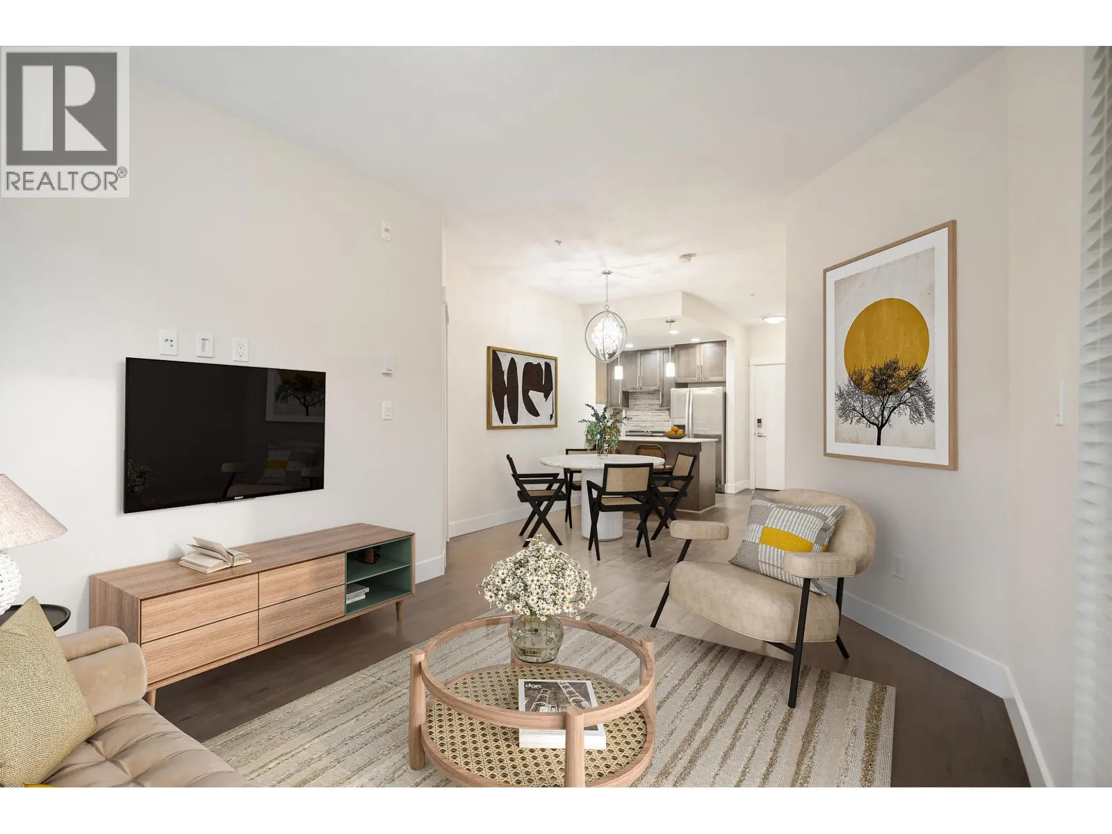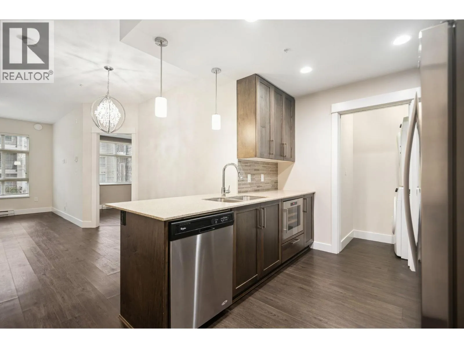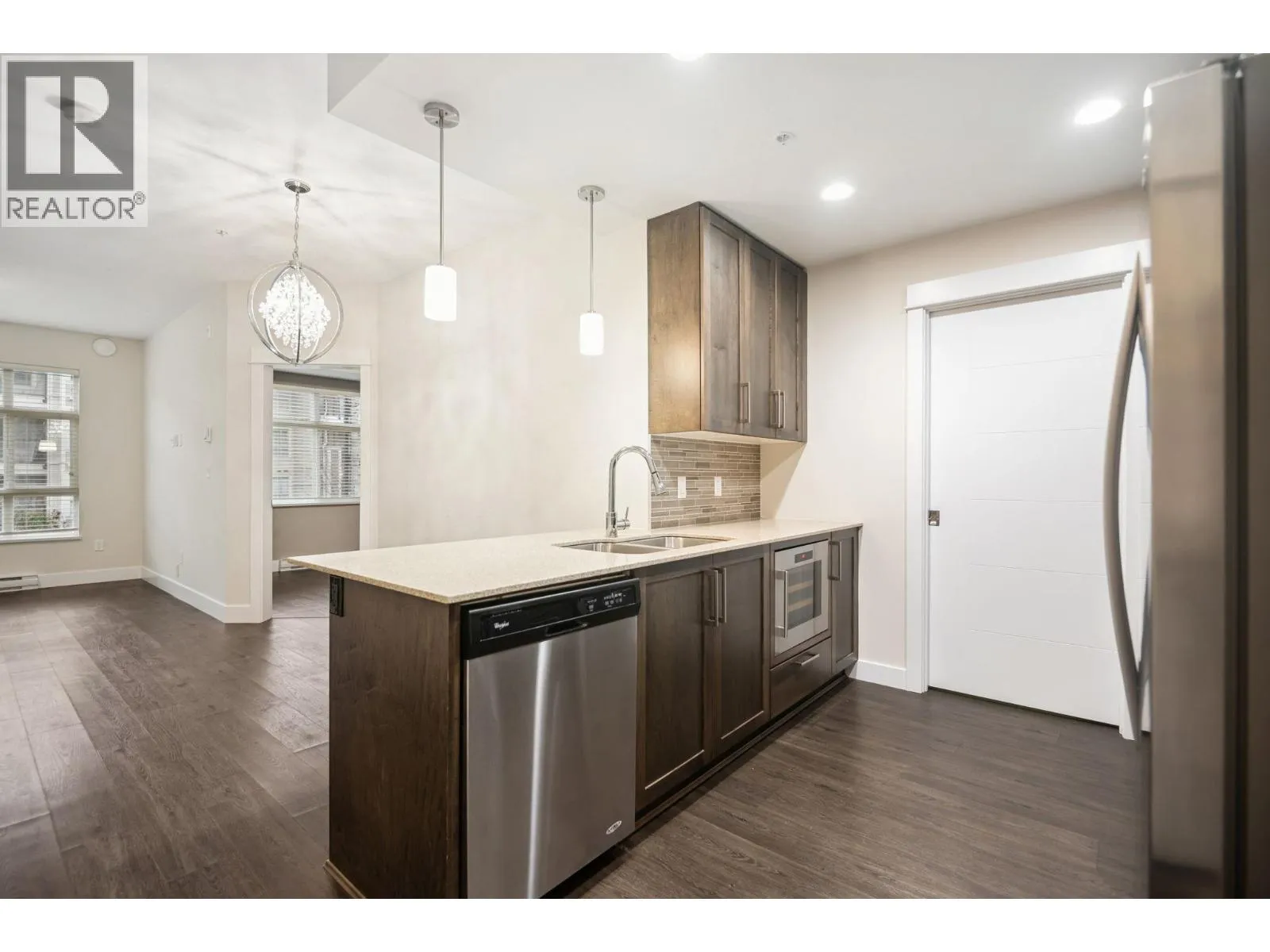 Welcome to this bright 2 Bed + 2 Bath home in the sought-after Orchid community. This home offers an open kitchen with quartz countertops, S/S appliances & a full dining area that flows naturally into a spacious living room. Bedrooms are thoughtfully separated for comfort and privacy with both featuring custom built-in closets. Both bathrooms include radiant floor heating as well. The primary bedroom includes a WIC and a modern ensuite. Enjoy 9' ceilings, vinyl flooring & a large covered balcony perfect for relaxing or year-round BBQs. The building is known for its convenient location-just steps to the West Coast Express, Gates Park, Coquitlam River trails, shopping, restaurants, transit, and recreation. Comes with 2 parking + 1 locker. Pet- and rental-friendly building. (id:27476)